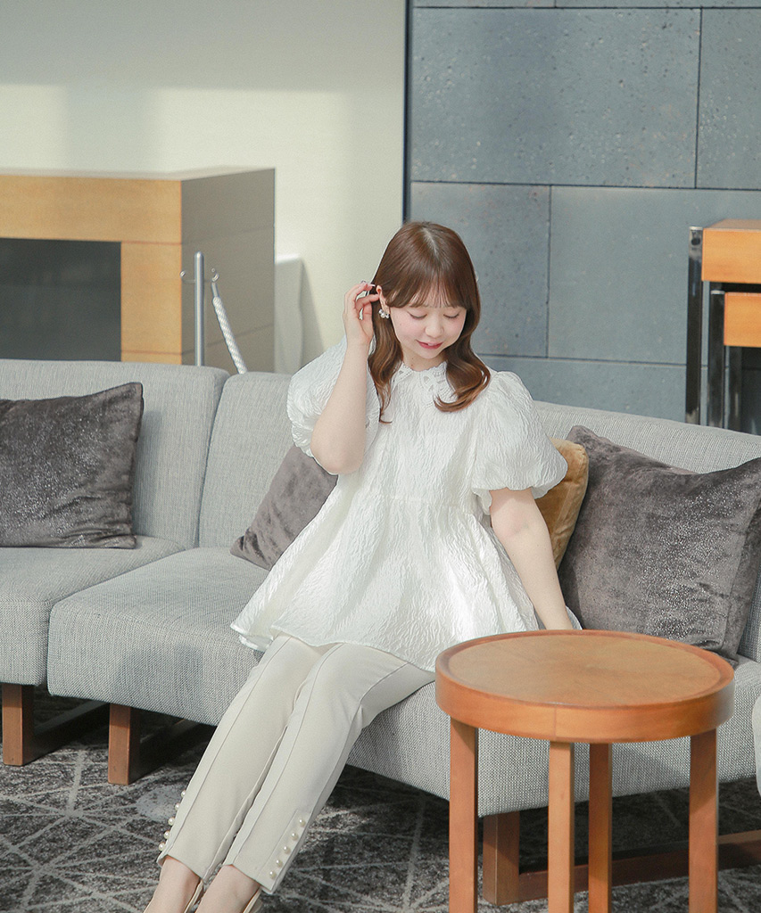 RIEコラボ!フラワーモチーフバルーンショート丈トップス