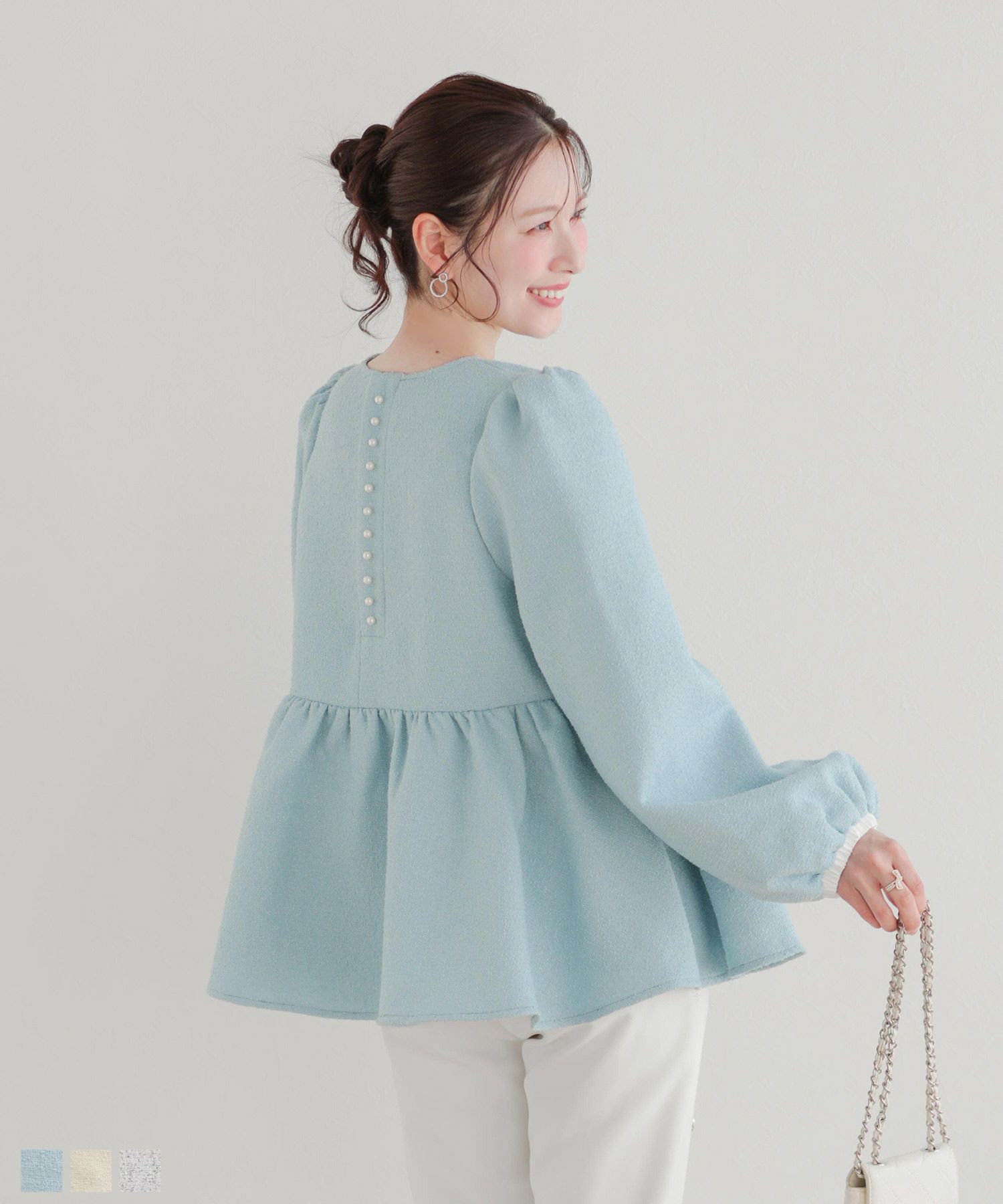 NEW 予約 11月4日12:30発売 他の画像を見る お気に入りに登録する 2025aw ツイード ペプラム ギャザー パール トップス バックパールツイードトップス【予約12/12~順次発送】【宅配便】 価格 ¥ 12,900 税込