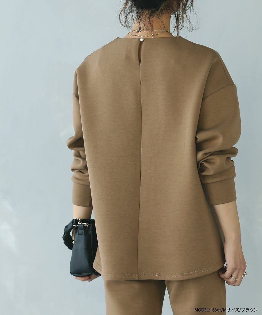 バックのループボタンがカジュアルになりすぎず上品に着ていただけます。