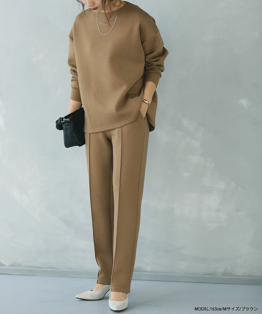 ダンボールニットプルオーバー&タックパンツセットアップ