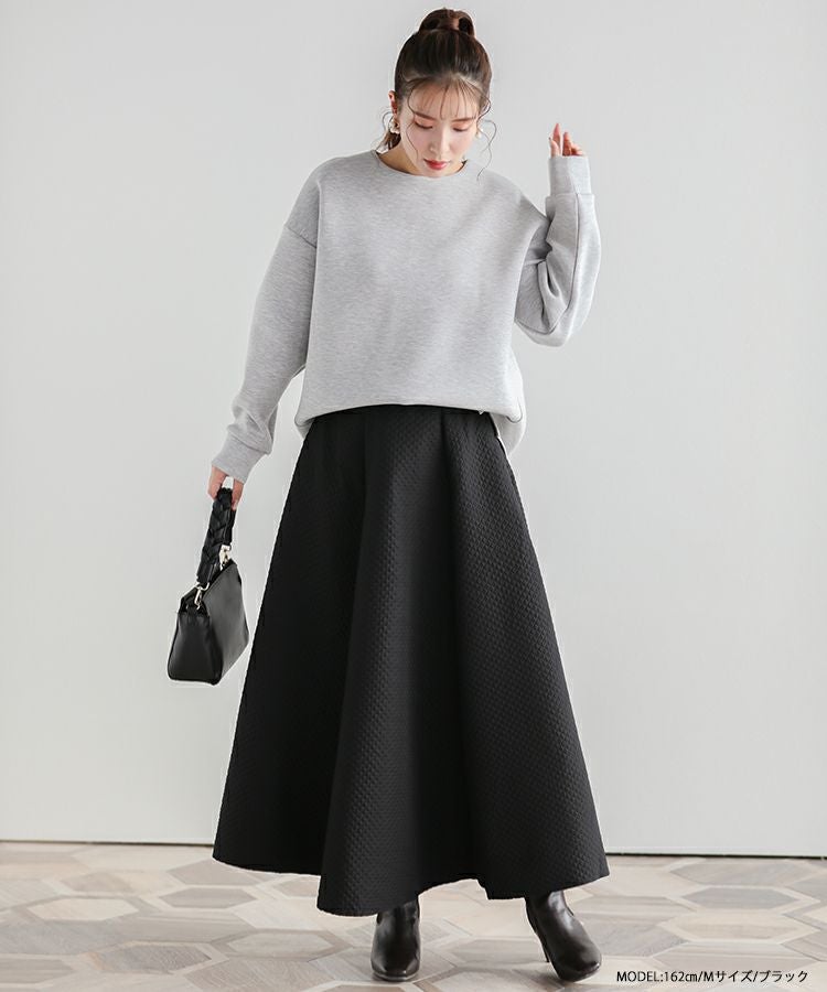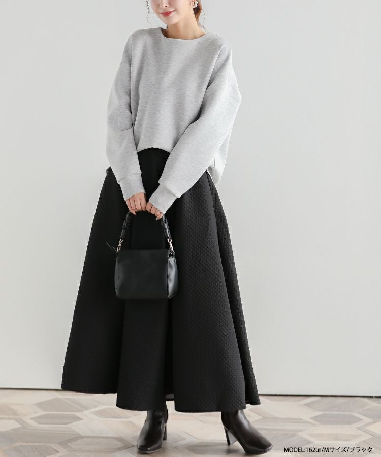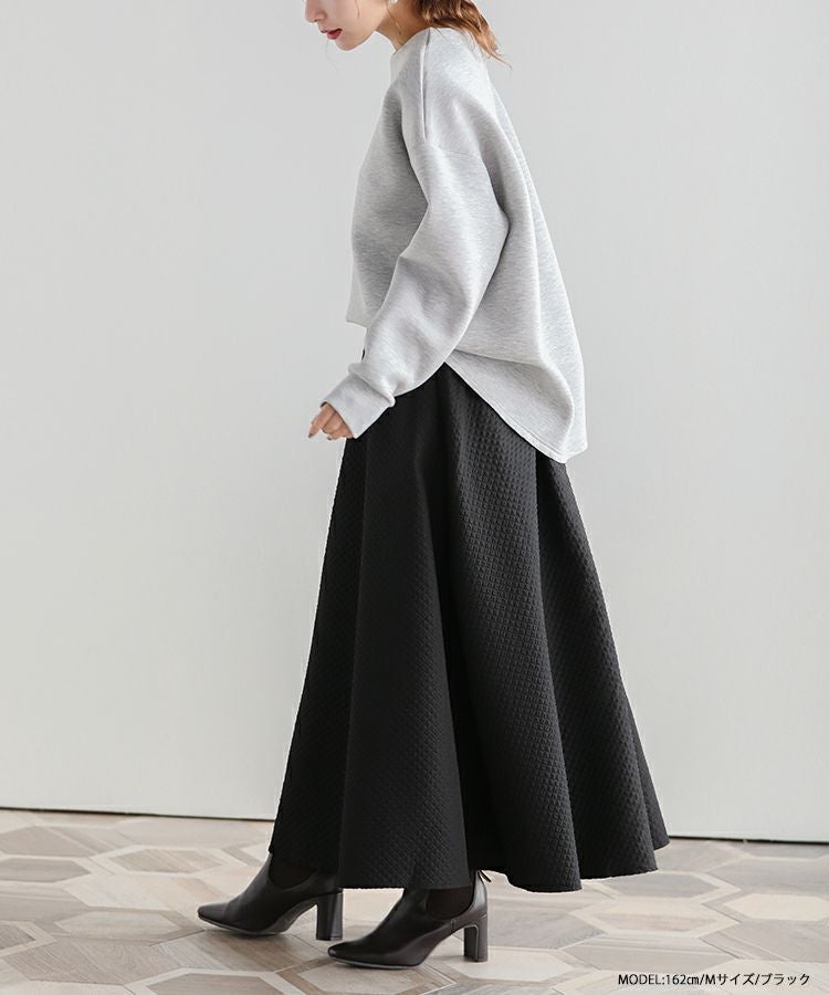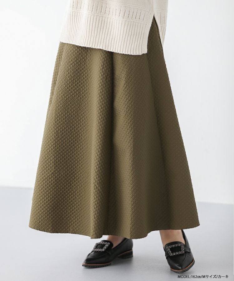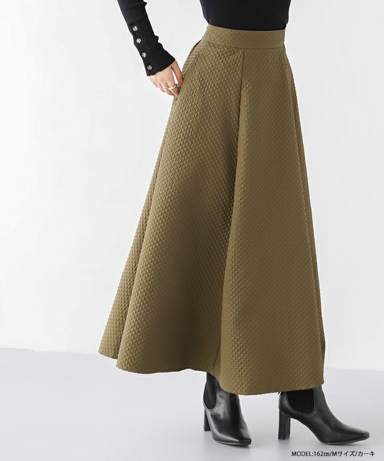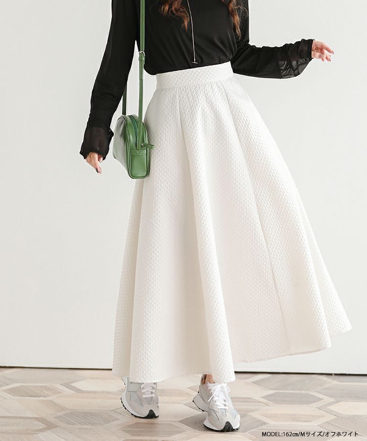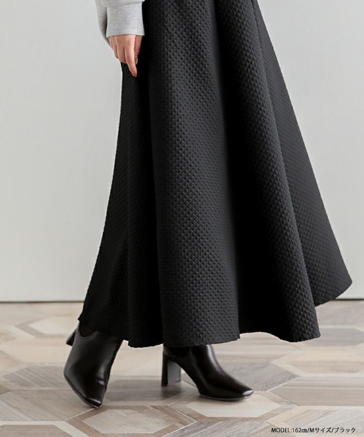ストンと落ち感のある美シルエットのジャガードフレアロングスカート。