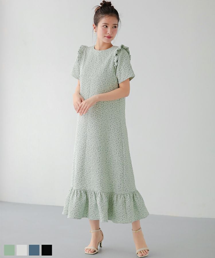 2024ss 夏新作 フラワージャガード 花柄 ワンピース 【ZOZO限定商品】フラワージャガードロングワンピース【宅配便】