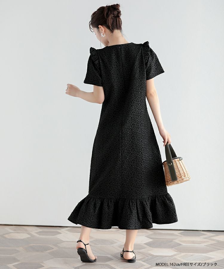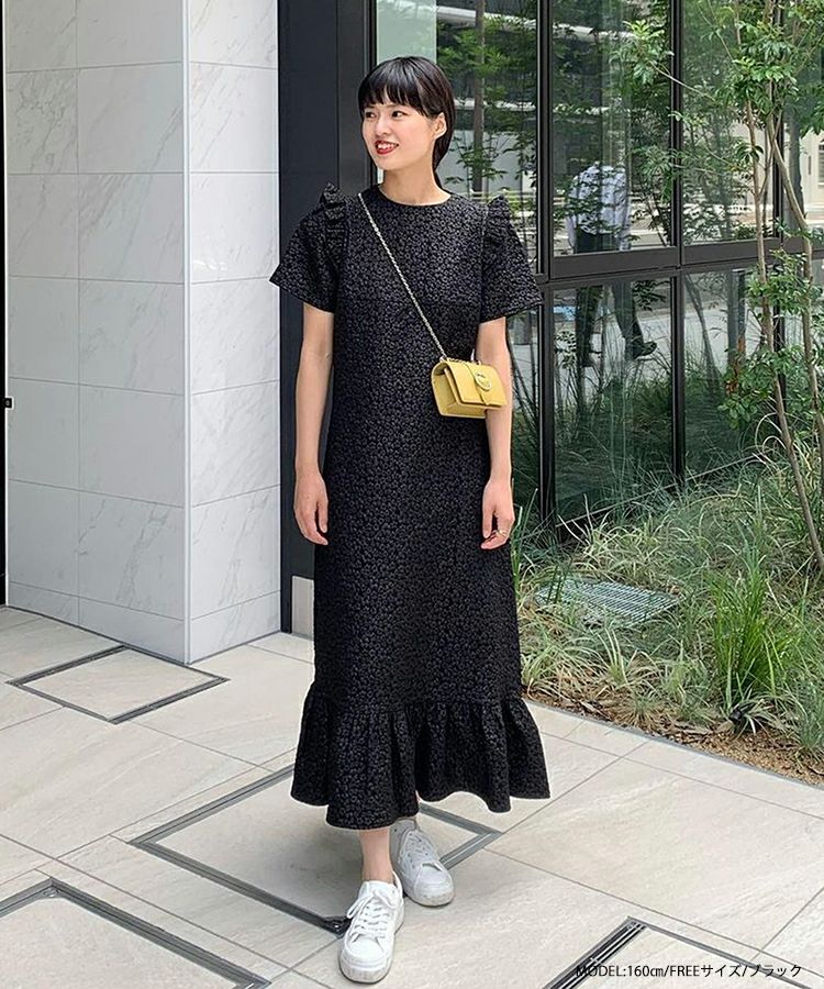 大人気のフラワージャガードティアードトップスがワンピースになって登場。