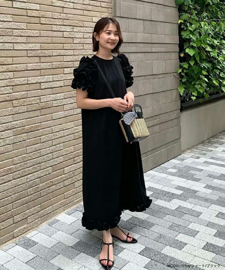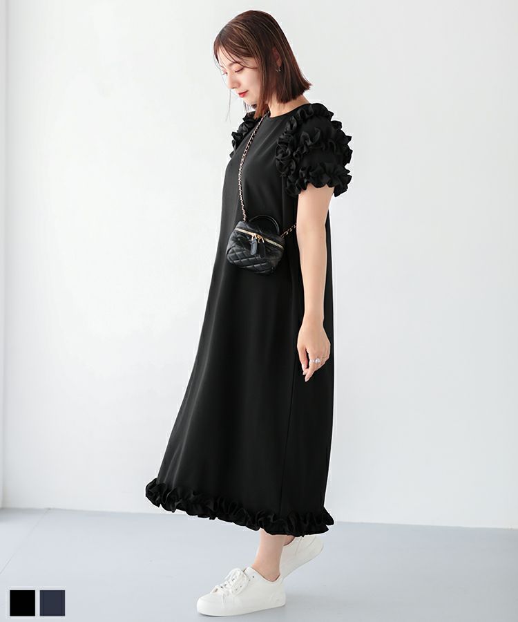 1枚で華やかに着用できるフリルたっぷりのロングワンピースが登場。