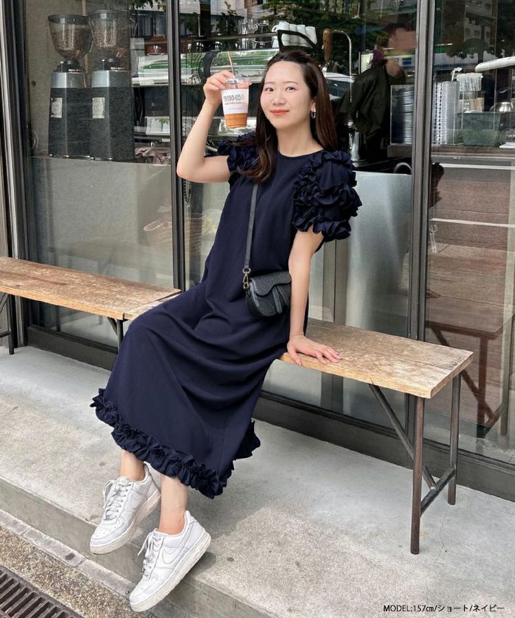 フリルがとっても可愛いです! シワにならず、暑い日に着てもサラッとして本当にオススメです。 153cmでショート丈を購入しました。 裾のフリル部分の生地は伸びないので、車の乗り降りの時に気を付けないと、糸がブチブチと切れてしまいます。