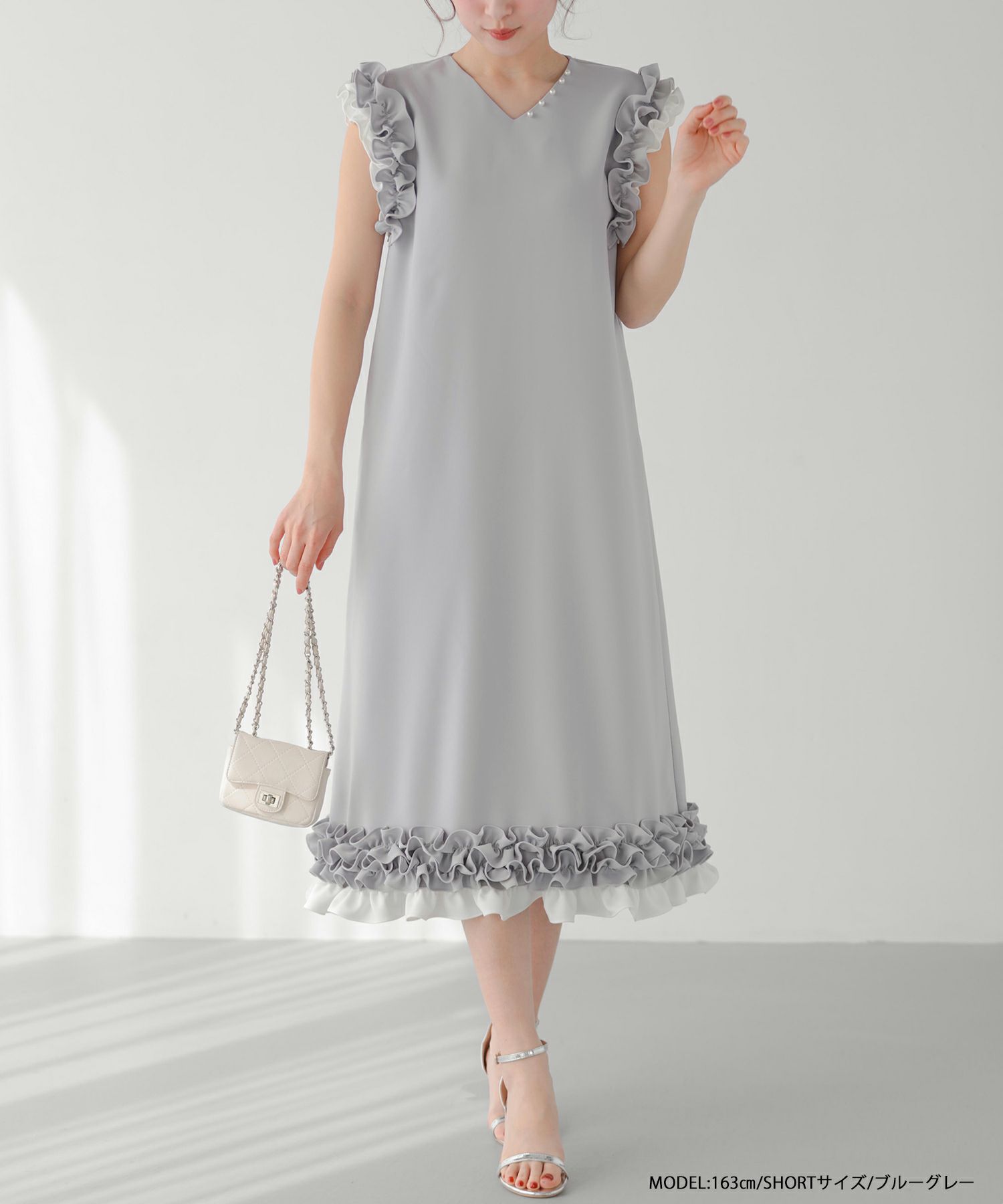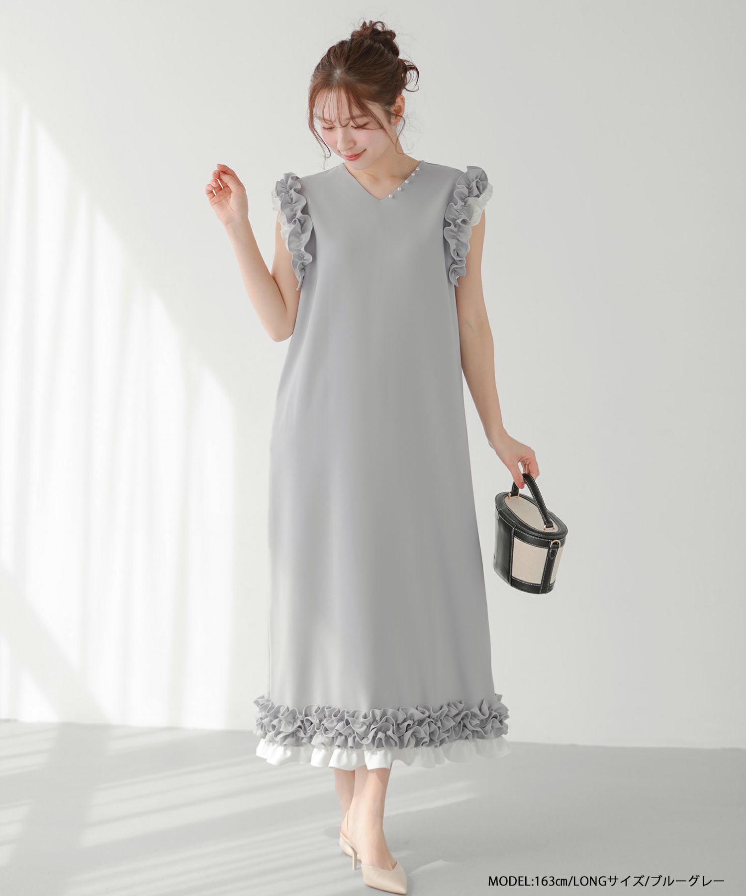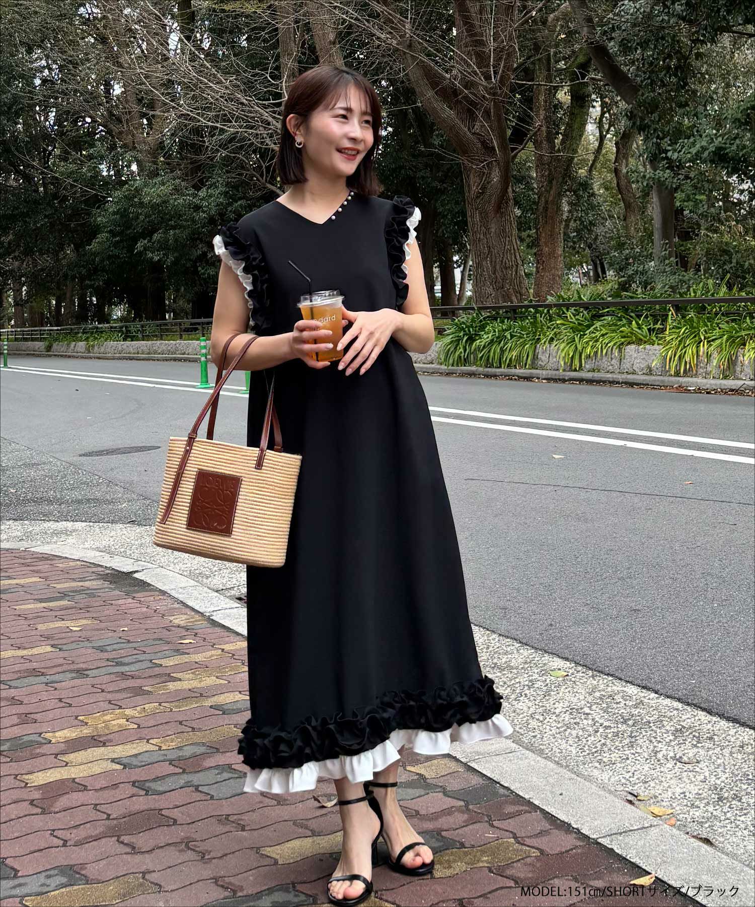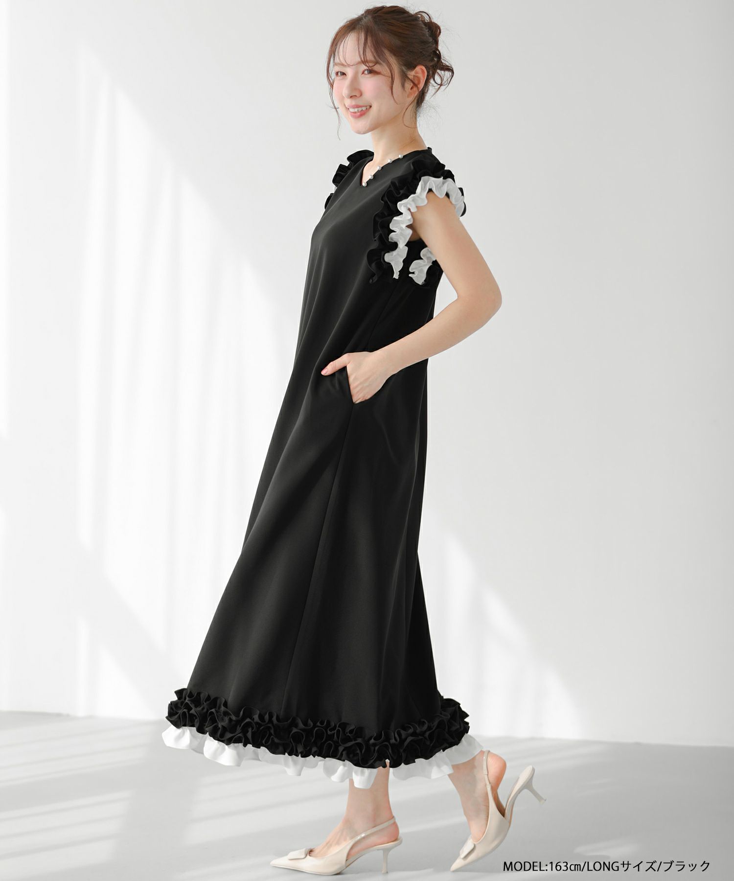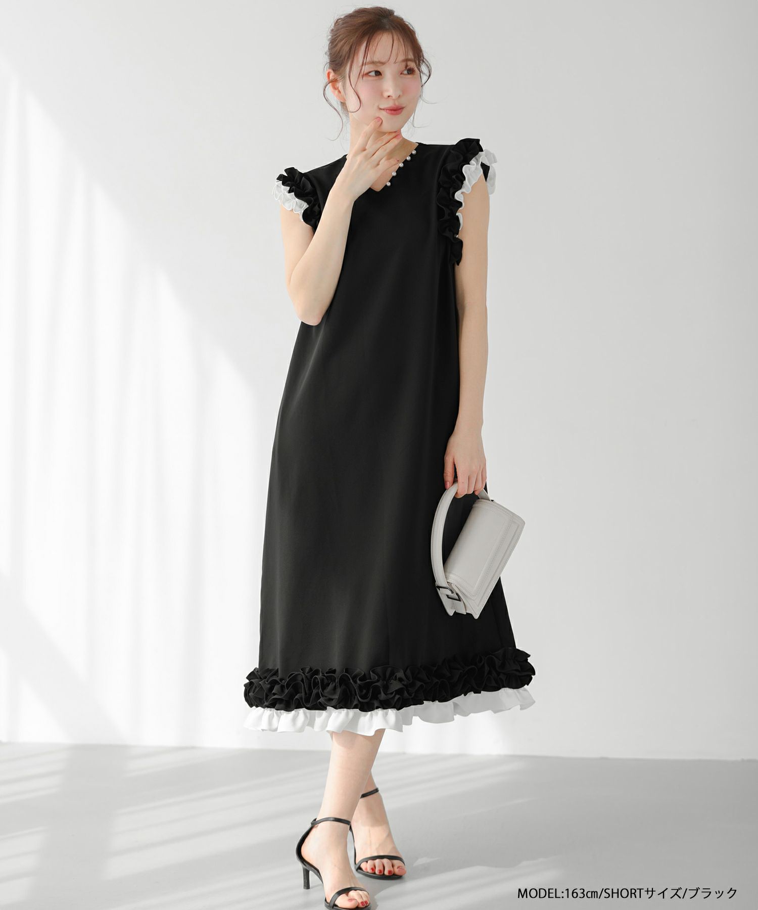 2025ss ワンピース フリル バイカラー ホイップフリルスリーブワンピース【宅配便】