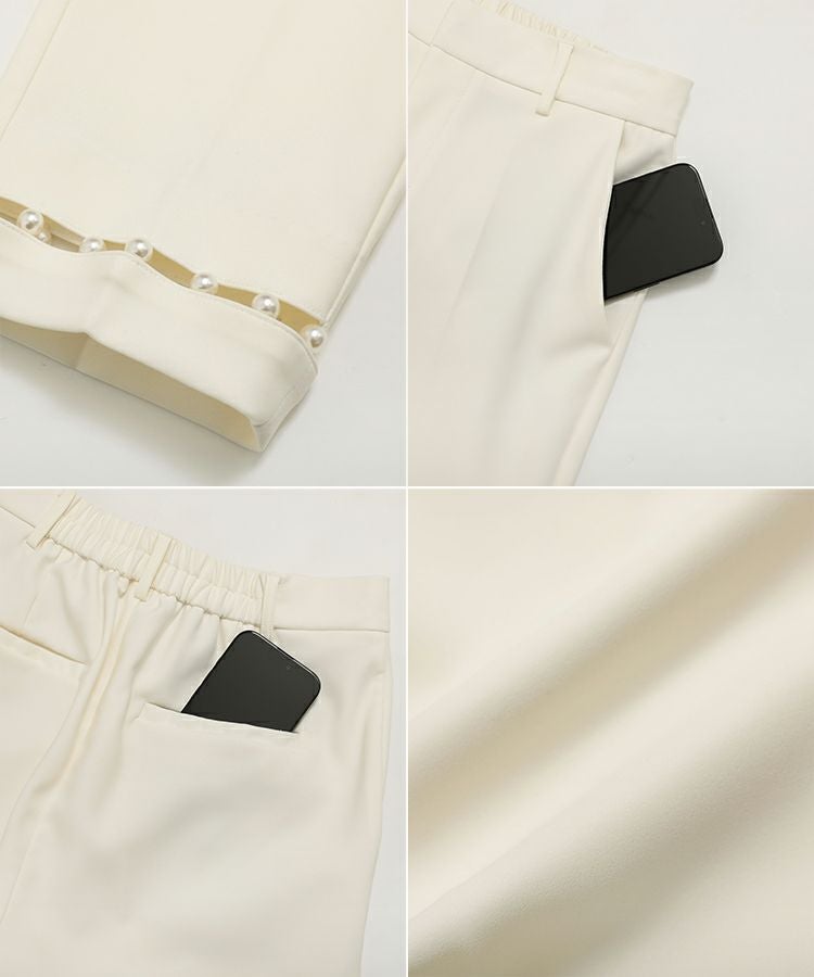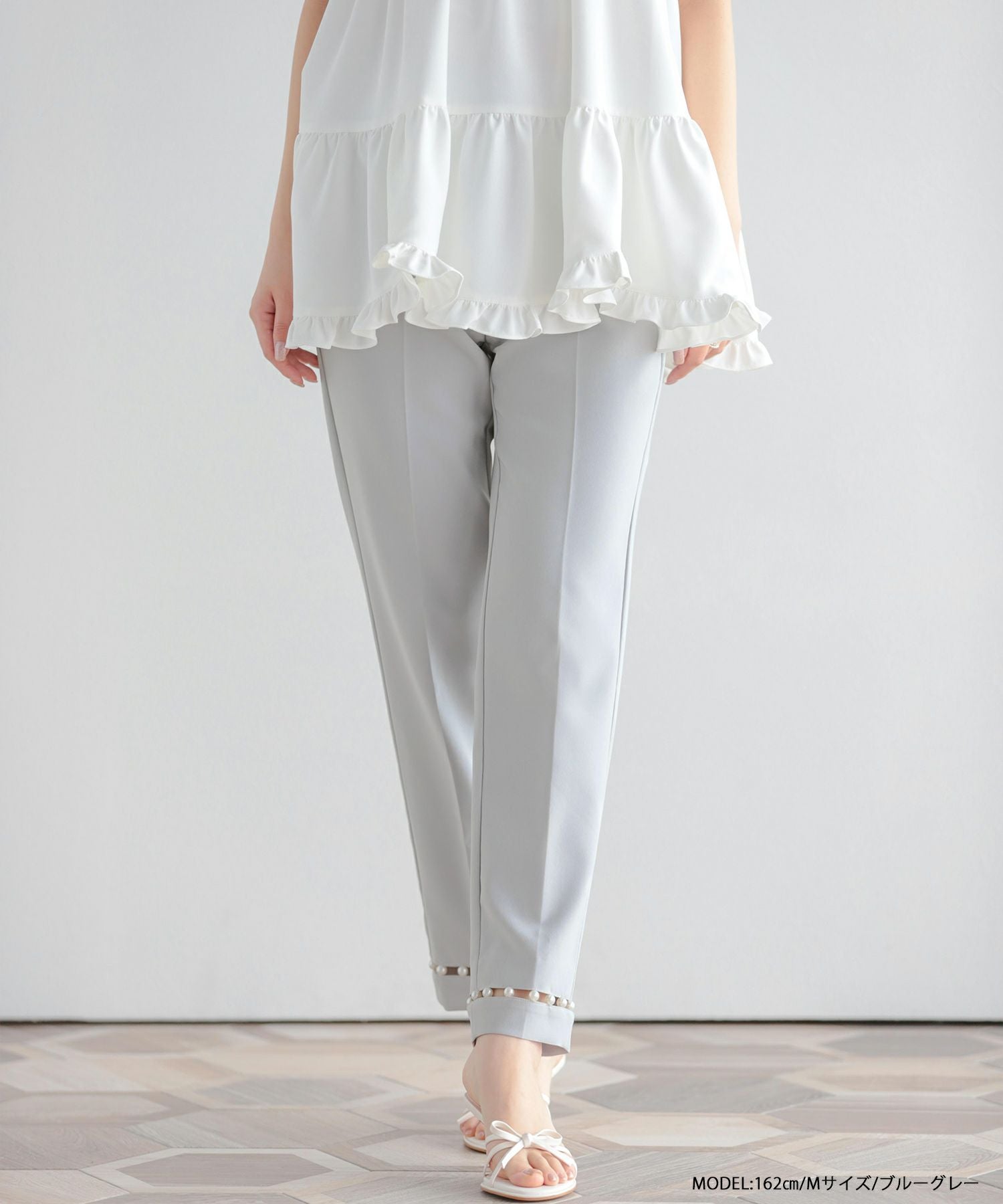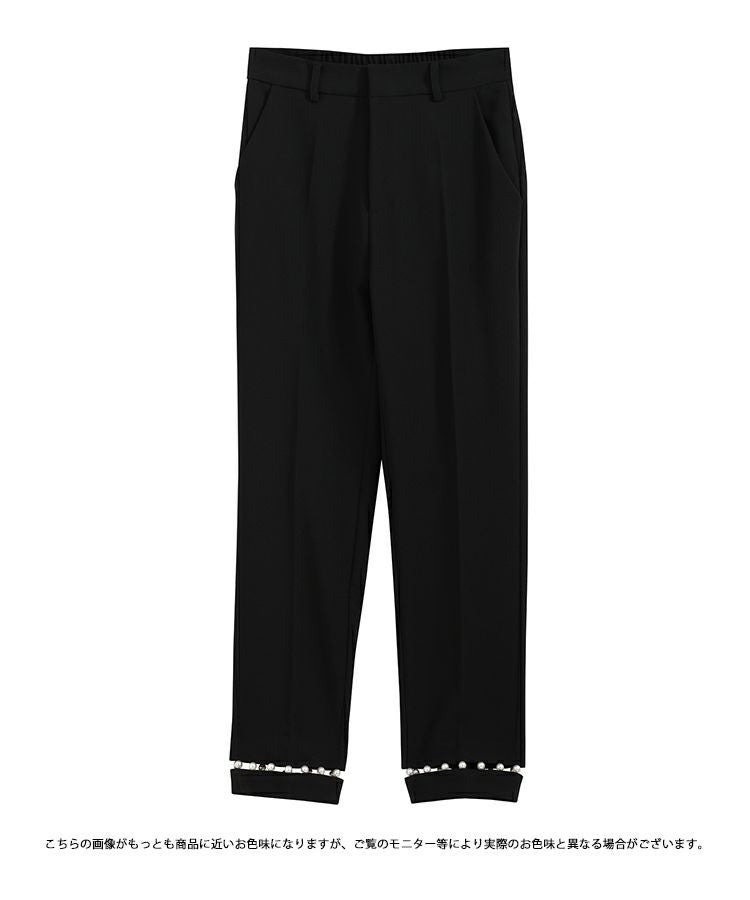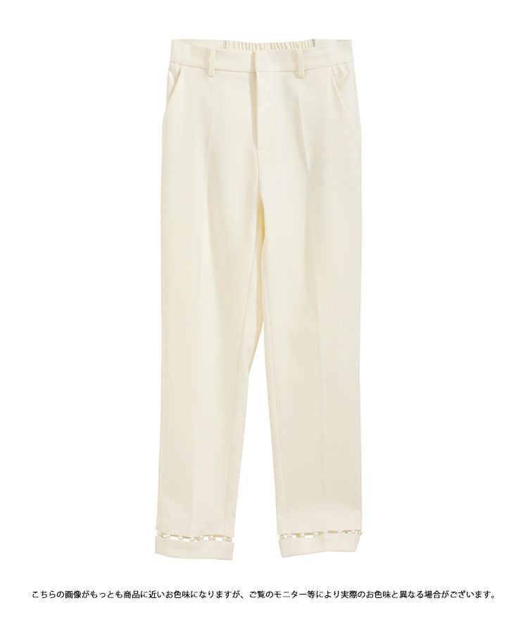 パールが高見えするし、綺麗めコーデにぴったりです。 脚もすらっと綺麗に見せてくれるパンツだと思います。 オケージョンとしても着れそうです。