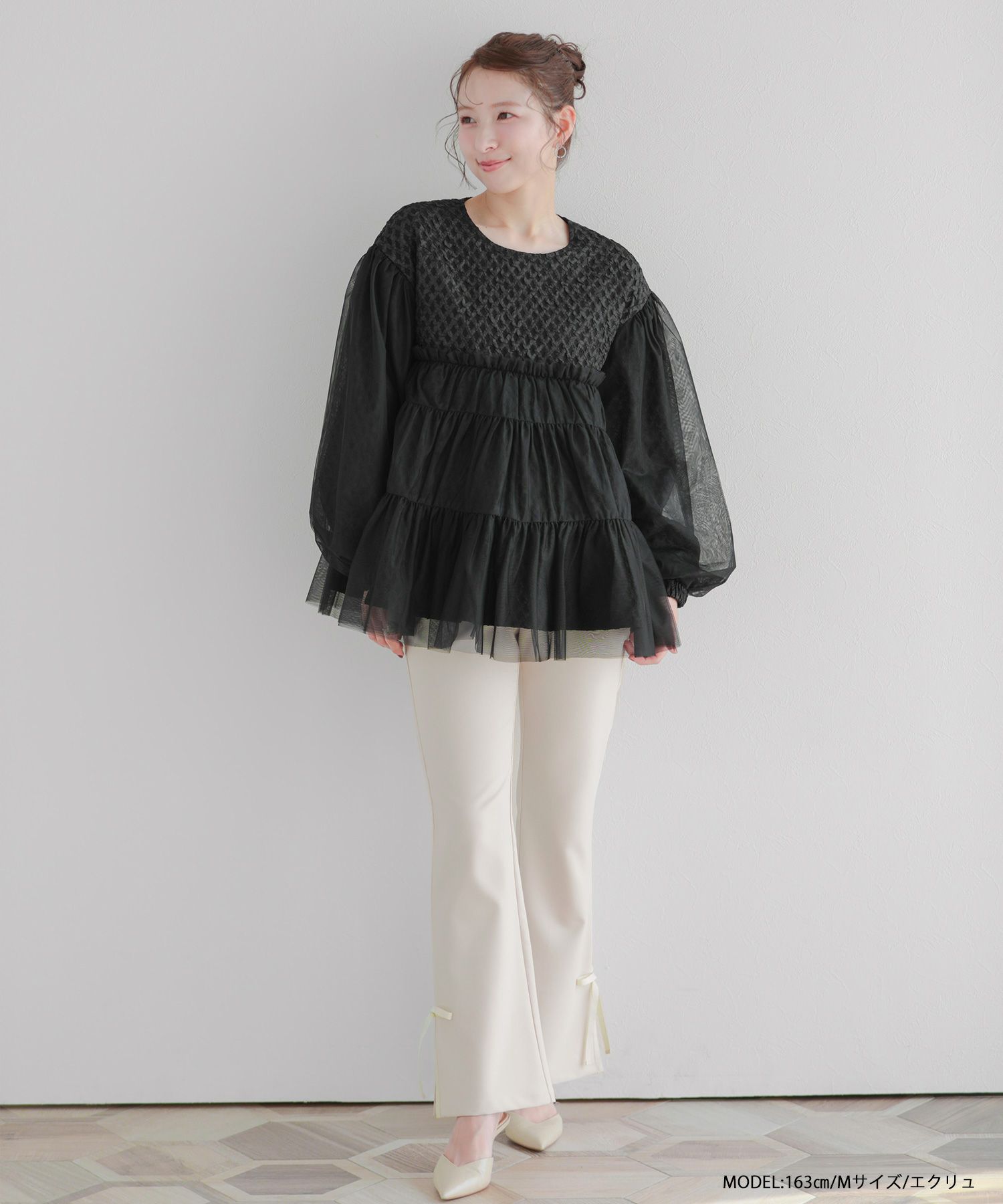 2025aw リボン フレア スリット パンツ サイドスリットリボンフレアパンツ【メール便】