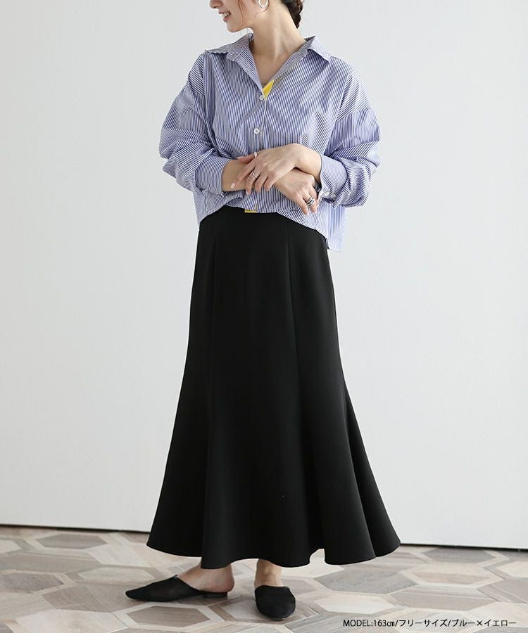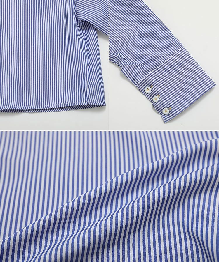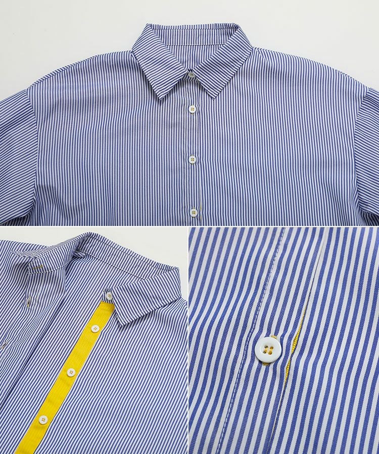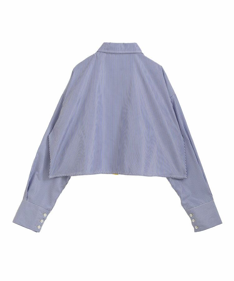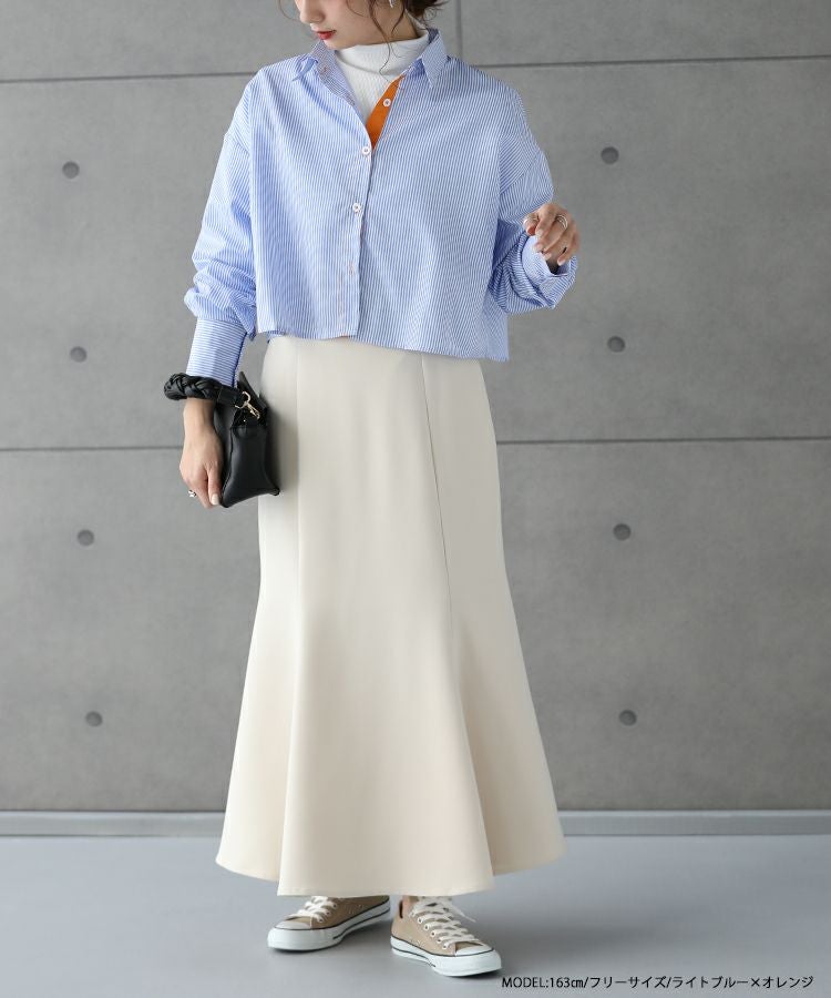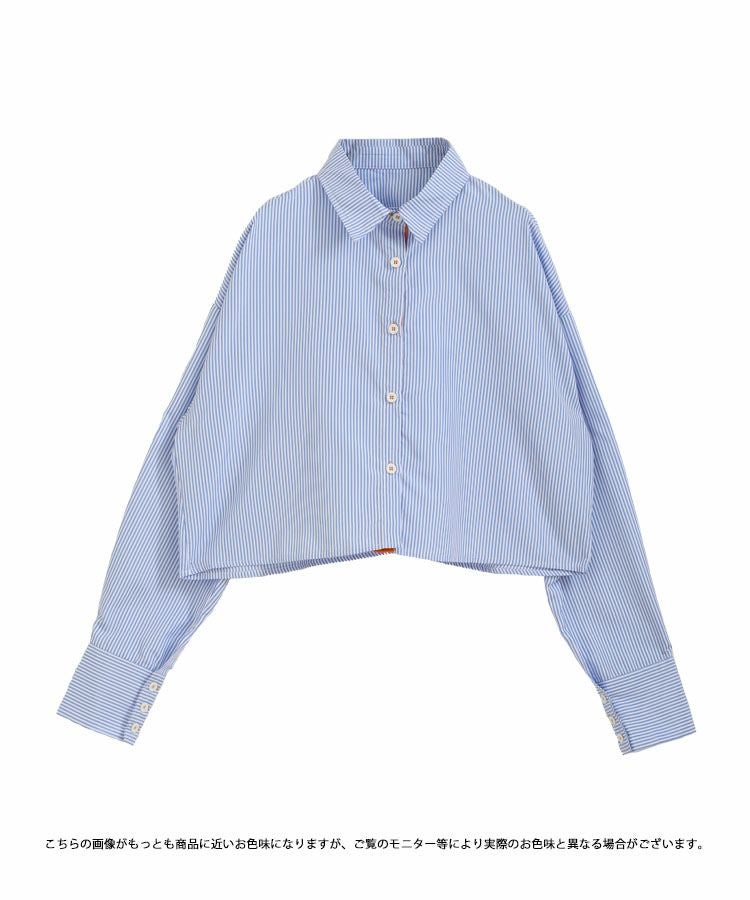 春コレクション 2022春 2022ss 春新作 春秋 春物  シャツ ストライプ ストライプシャツ クロップド丈 バイカラー クロップド丈バイカラーストライプシャツ【メール便】