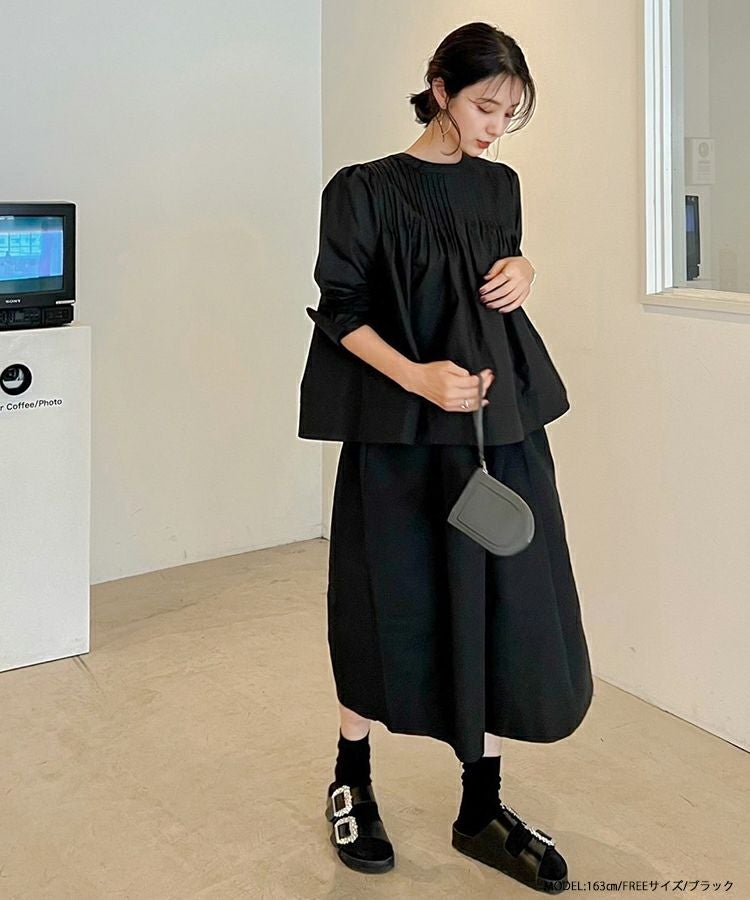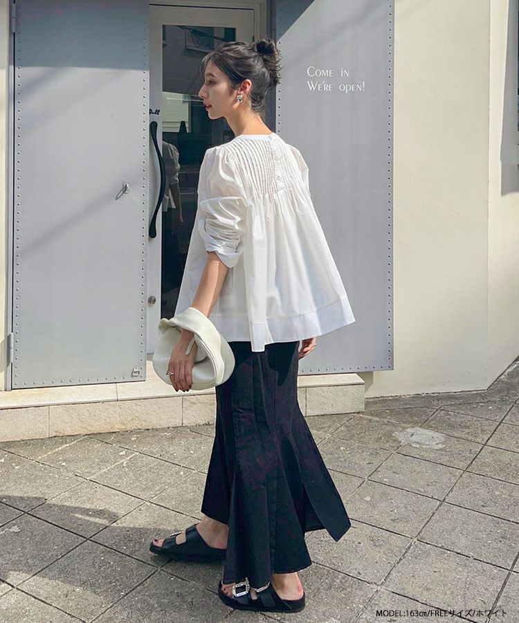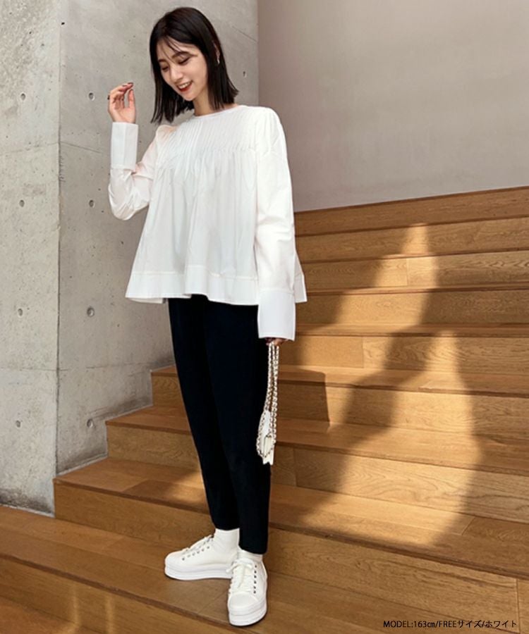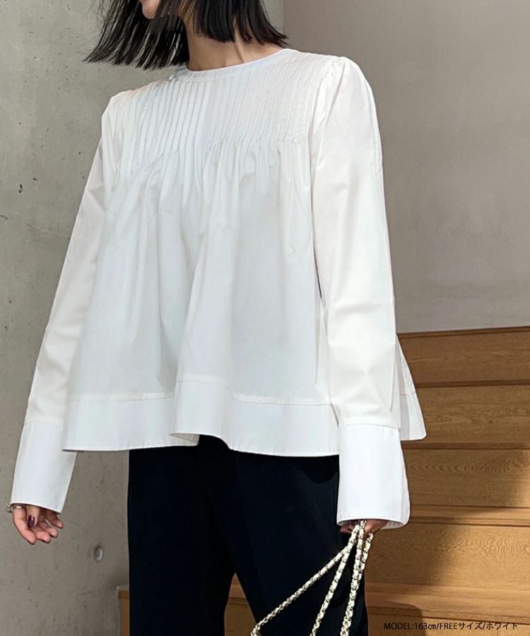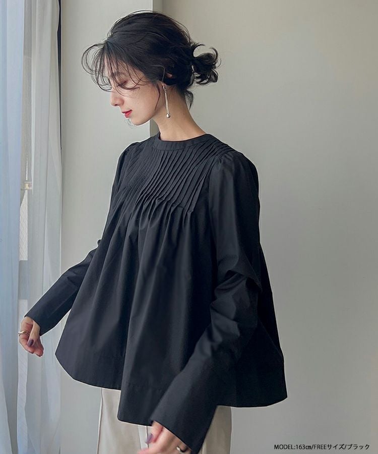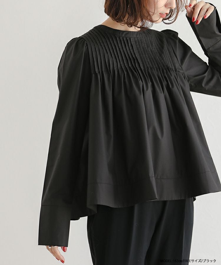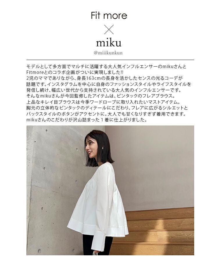 2022 秋新作  トップス ブラウス  シャツ ブラウス ピンタック 大人気インスタグラマーmikuコラボ!ピンタックフレアブラウス【メール便】