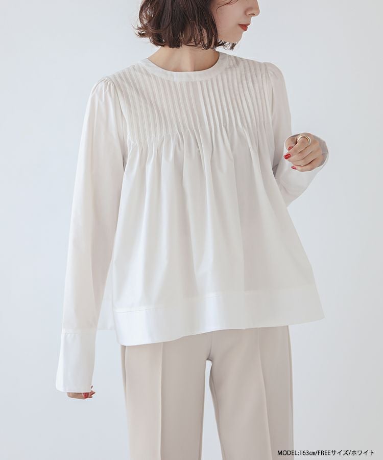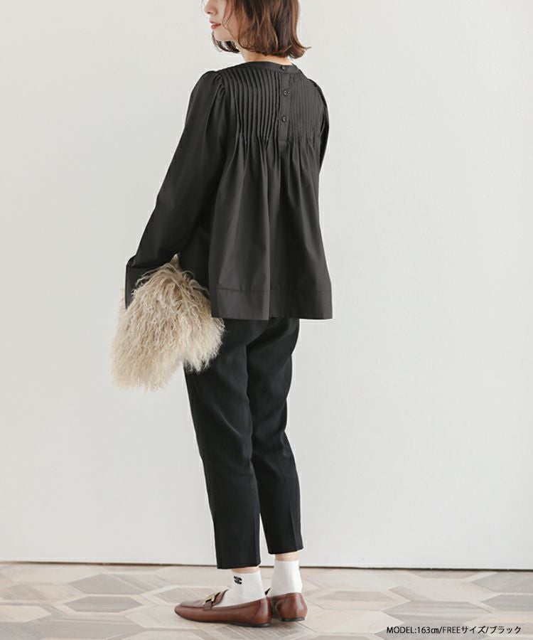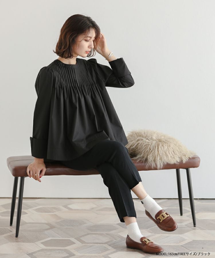レディムード漂う大人のピンタックブラウス。