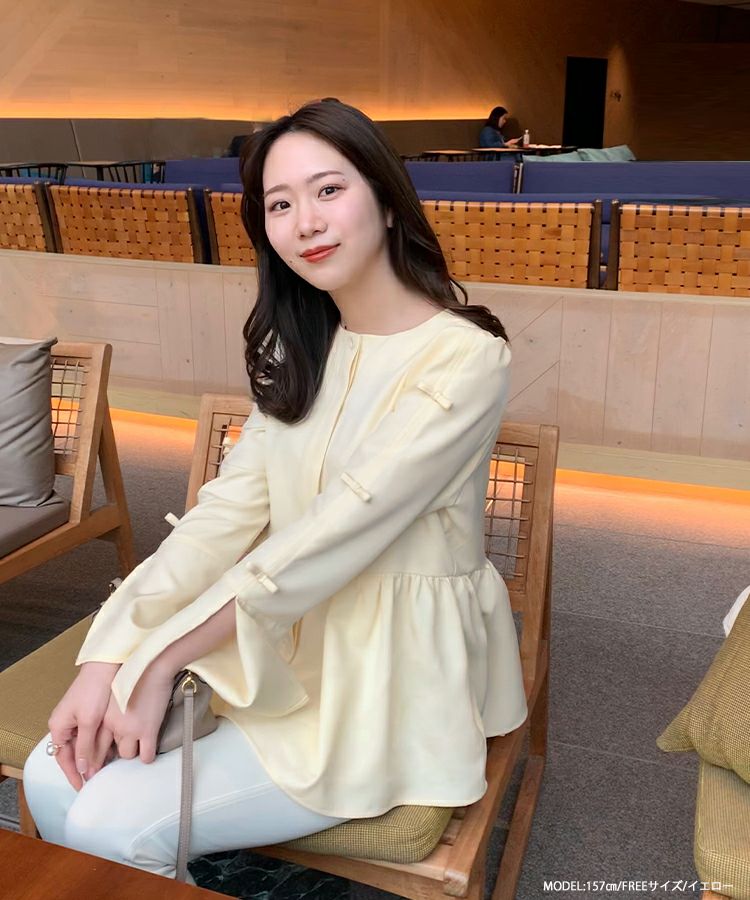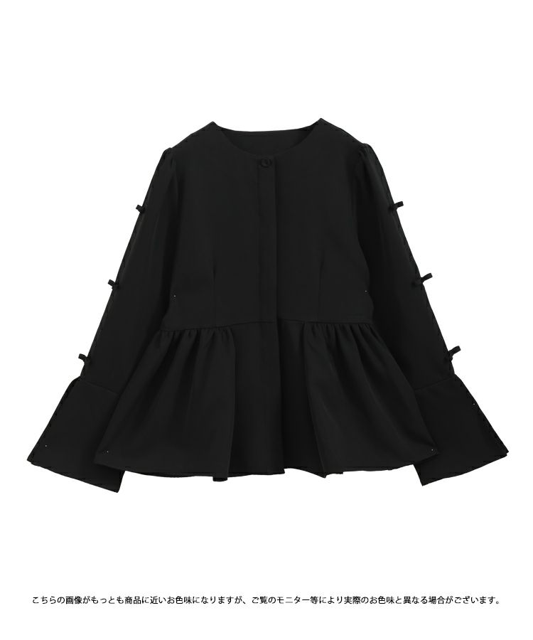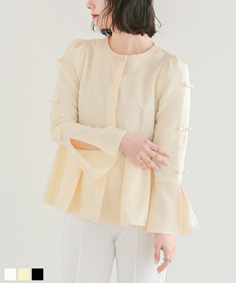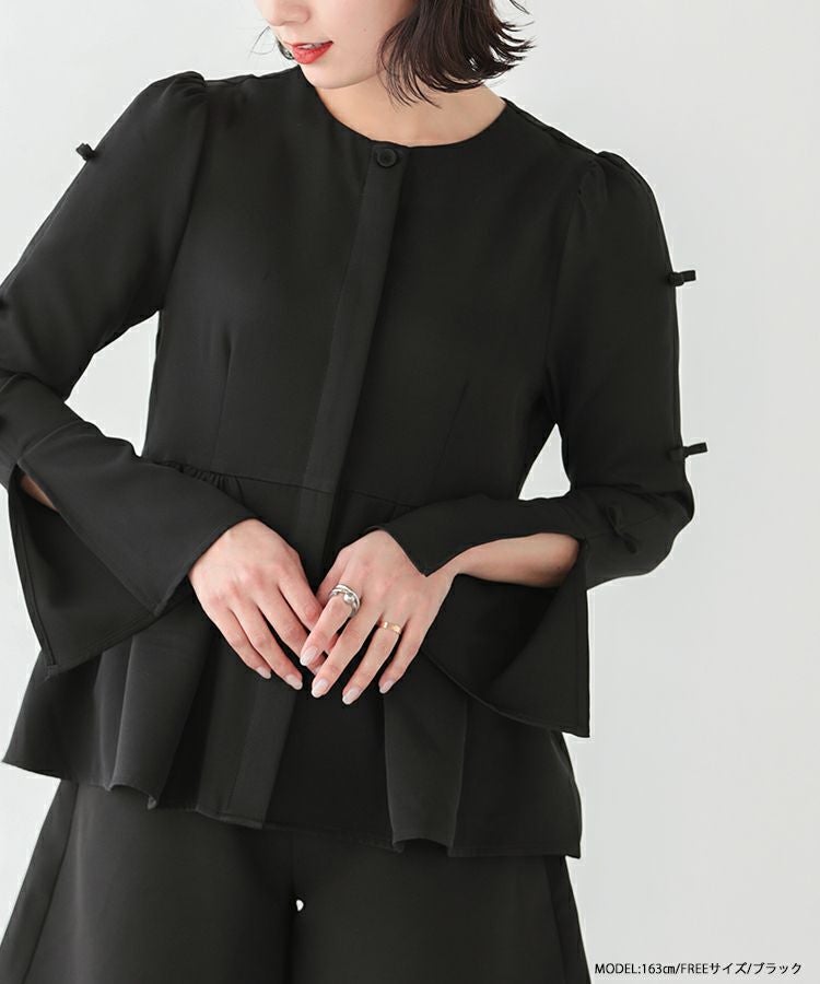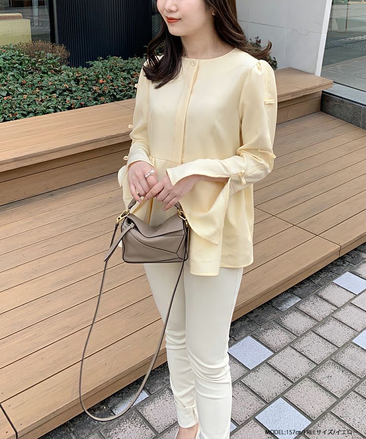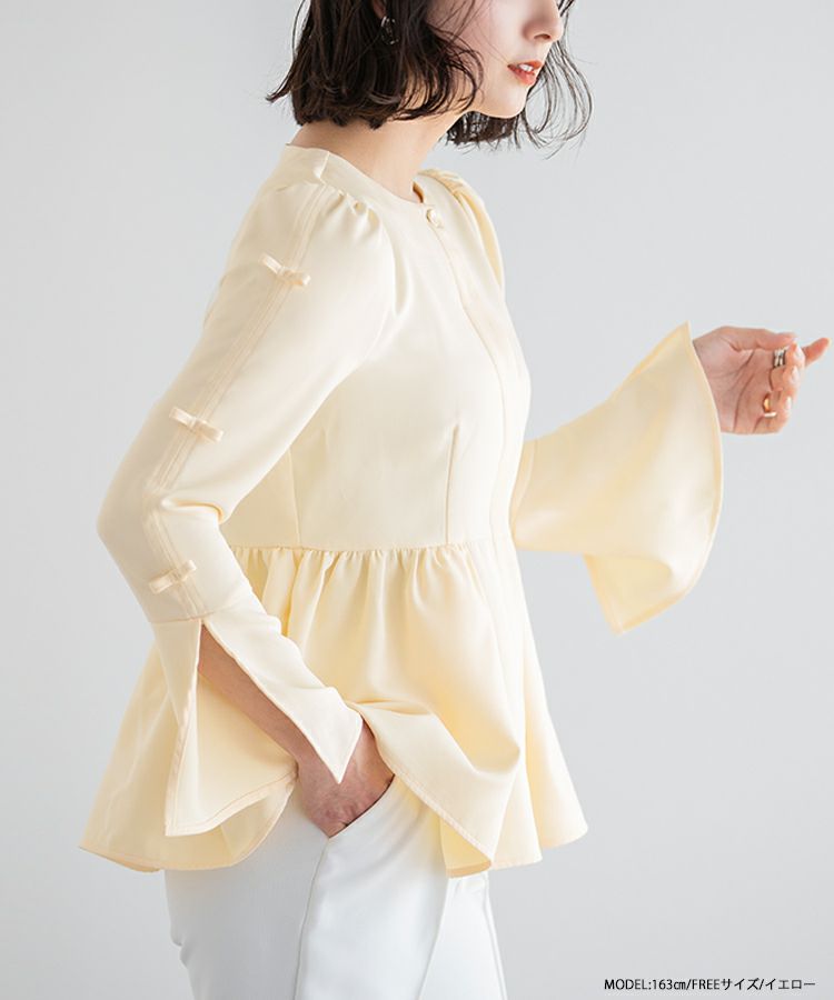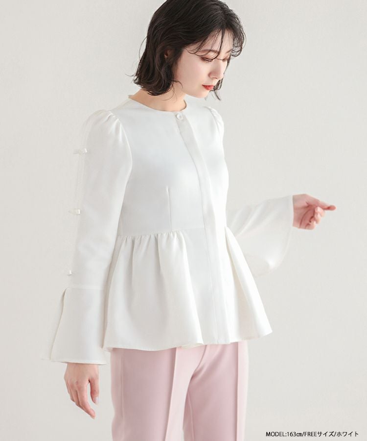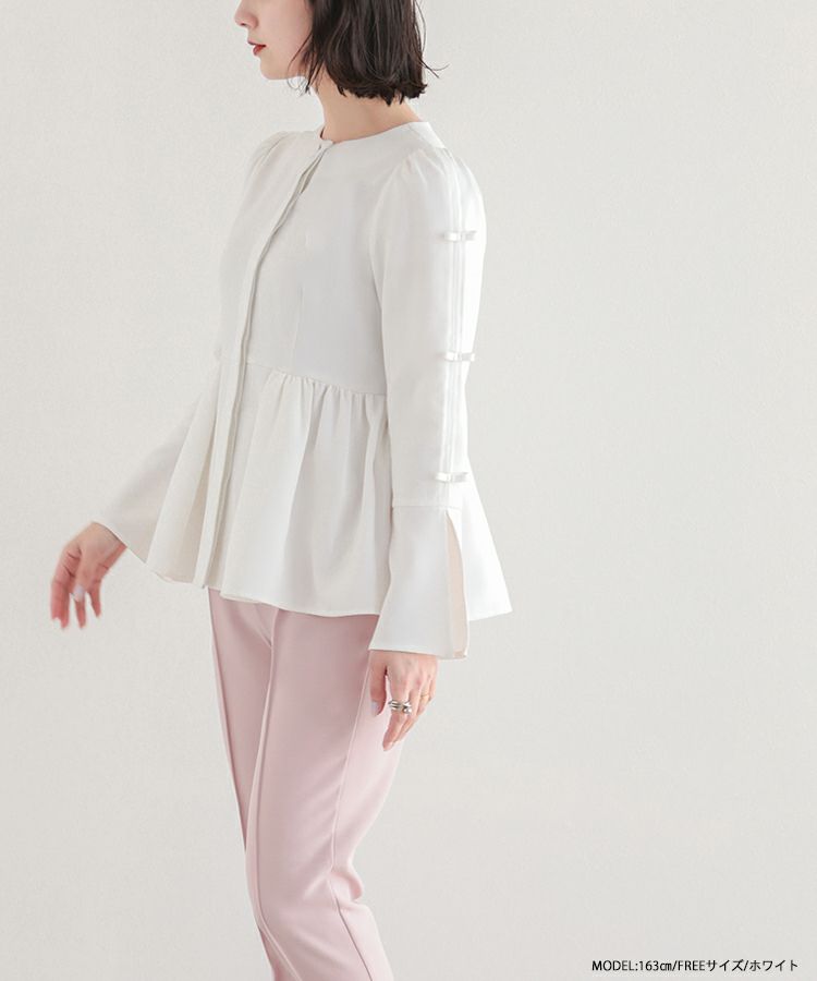 2023ss 春新作 ブラウス カットソー ペプラム リボン スリットスリーブ リボンスリーブペプラムブラウス【宅配便】