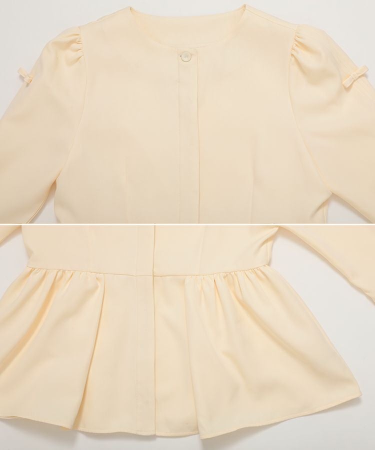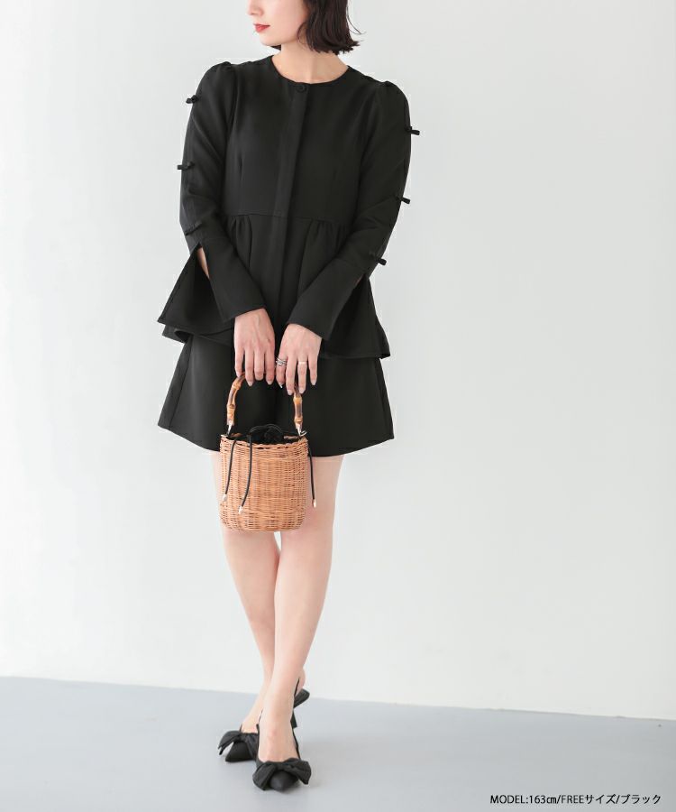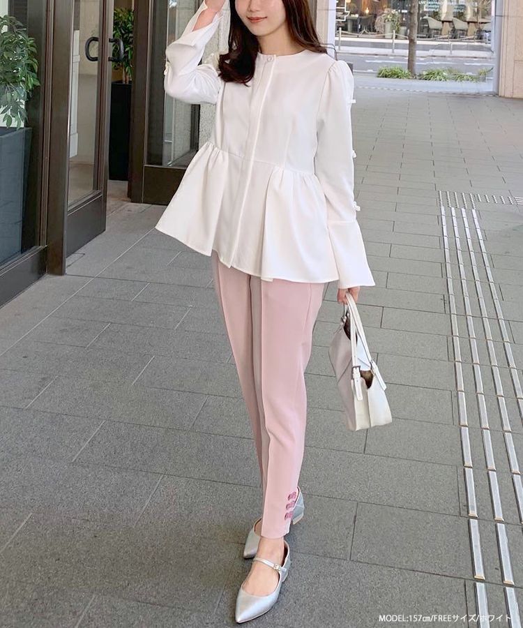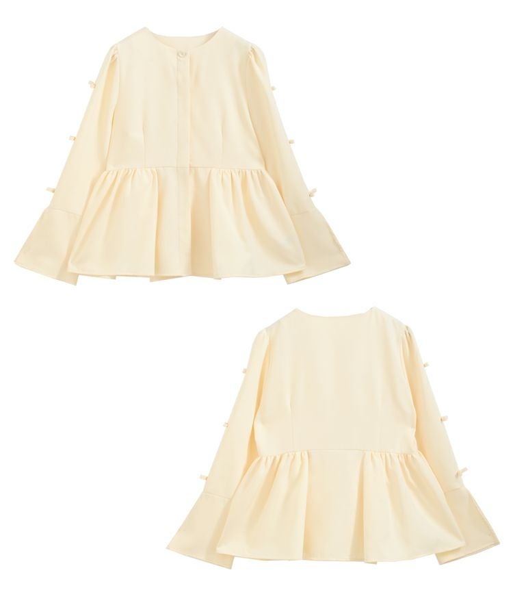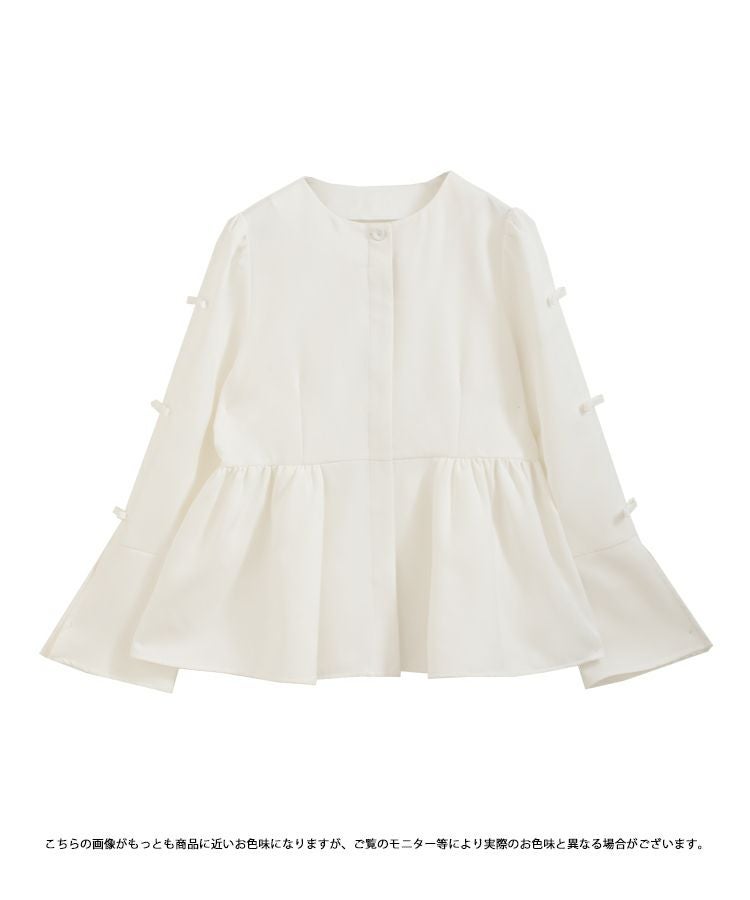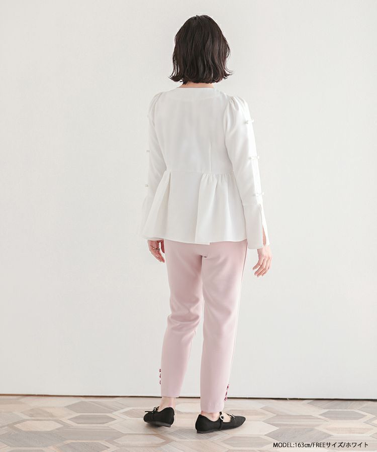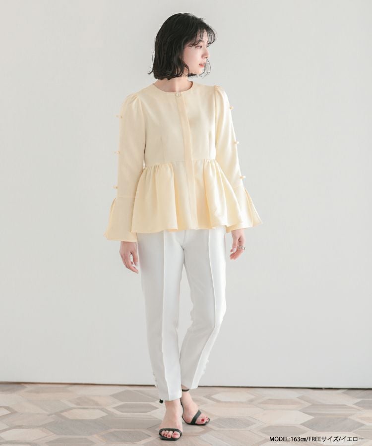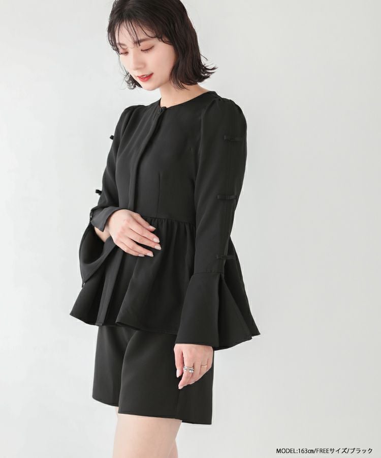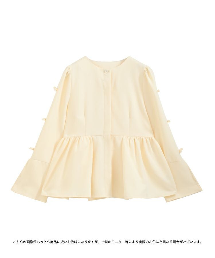 2023ss 春新作 ブラウス カットソー ペプラム リボン スリットスリーブ リボンスリーブペプラムブラウス【宅配便】