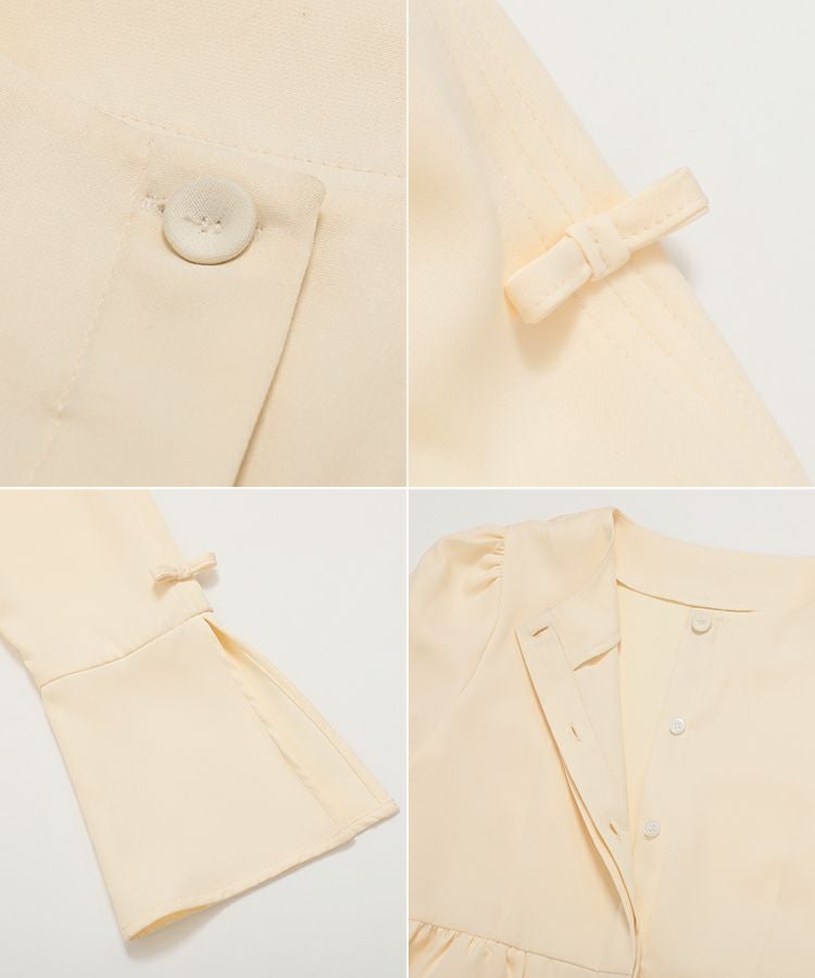 ふんわりパフスリーブと袖のリボンが女性らしく