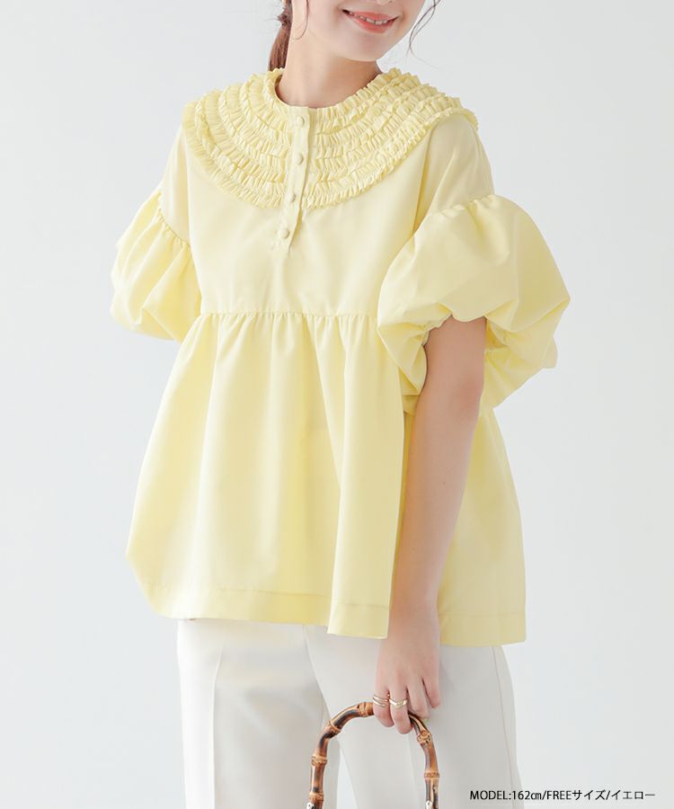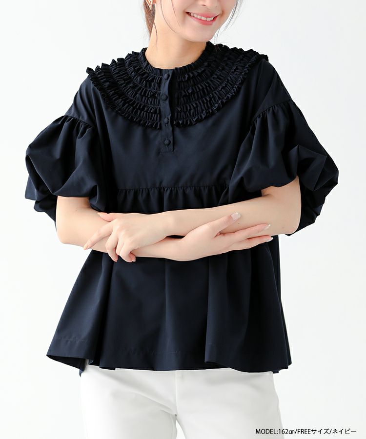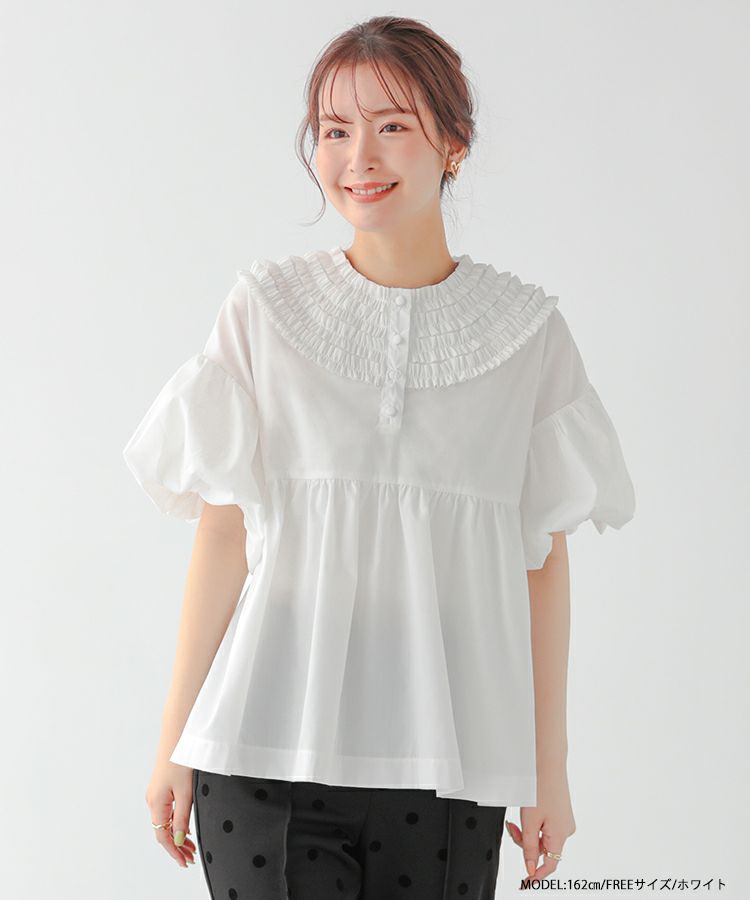 2024ss ブラウス バルーンスリーブ パフスリーブ ミニフリル フリルブラウス シャツ 【ZOZO限定商品】バルーンスリーブミニフリルブラウス【メール便】