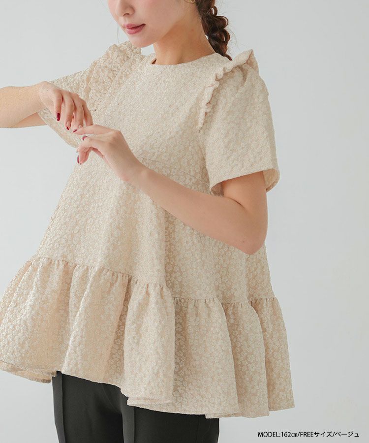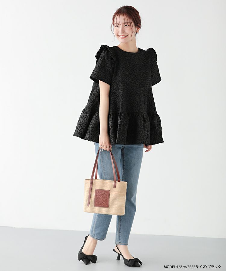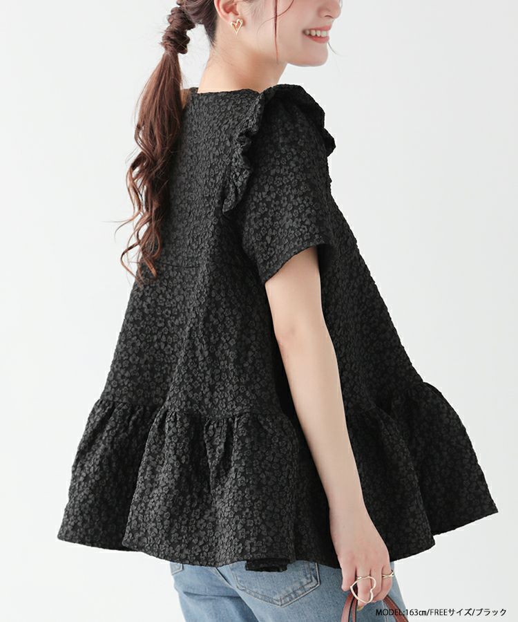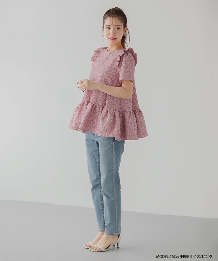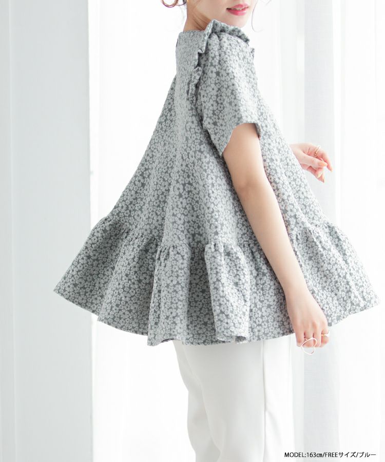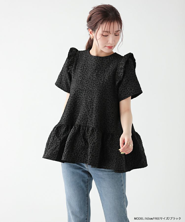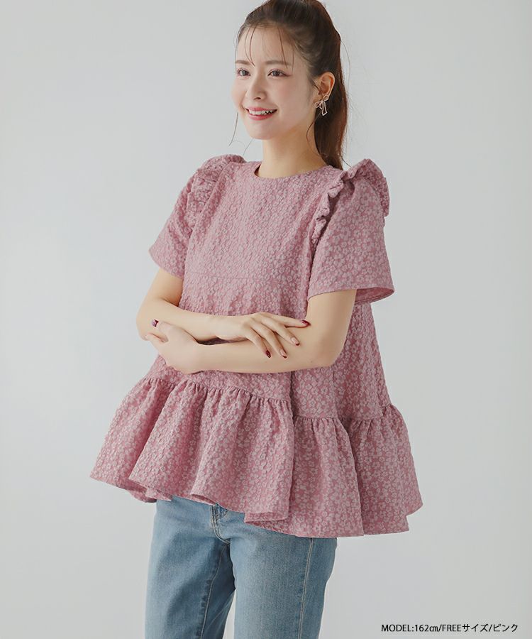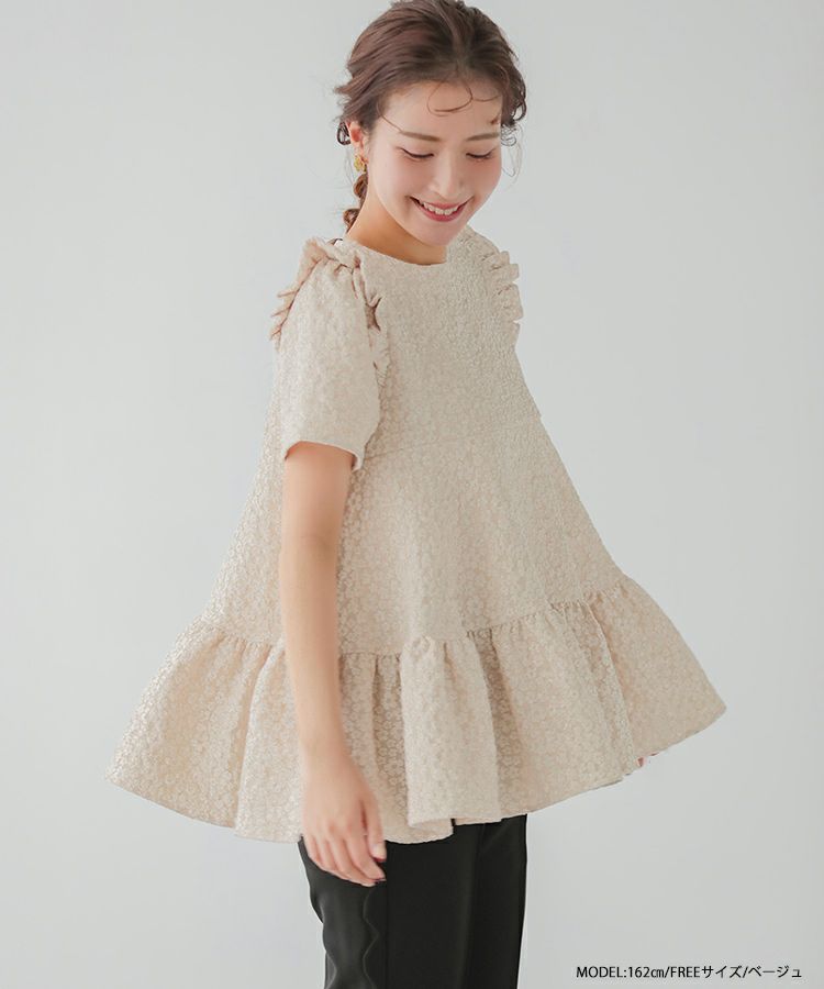 2023ss 春新作 ティアード レアトップス ジャガード 花柄 フリル 【ZOZO限定商品】フラワージャガードティアードトップス【宅配便】