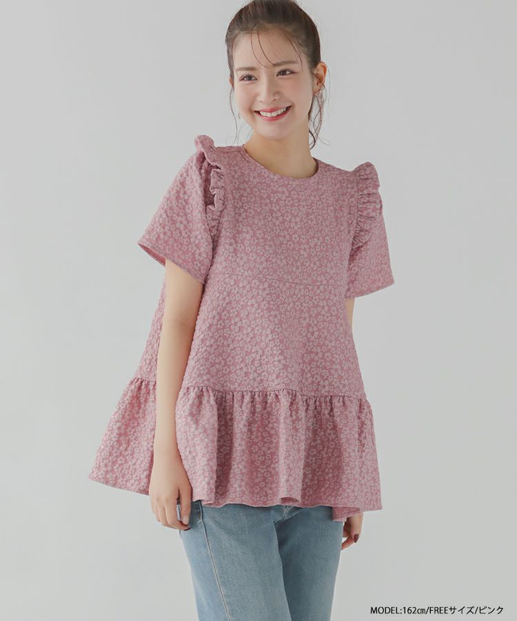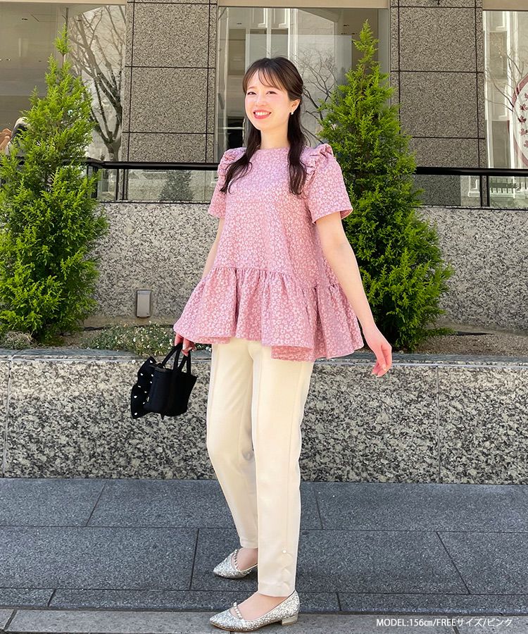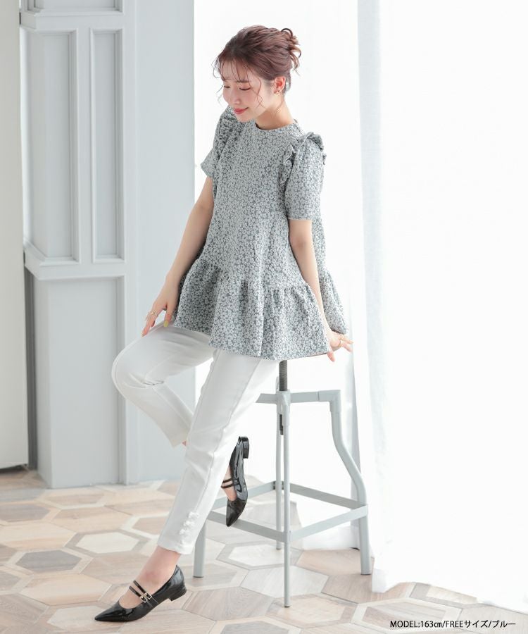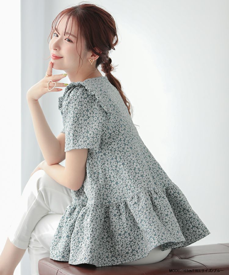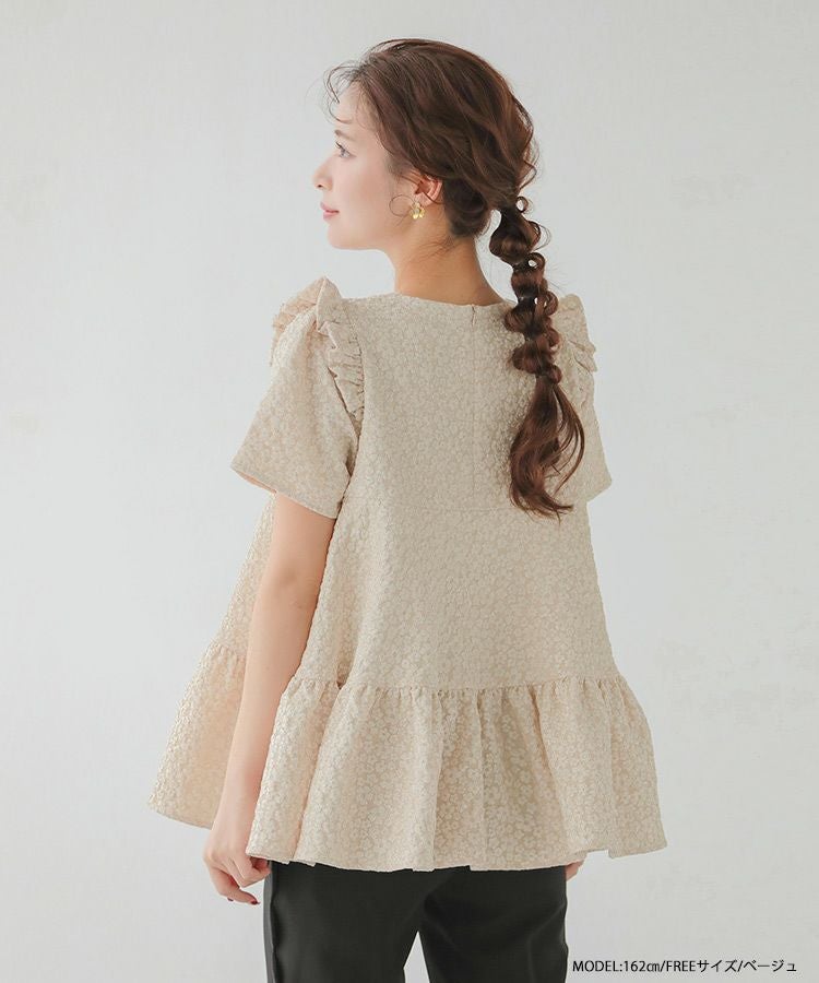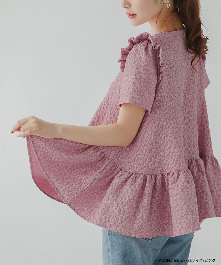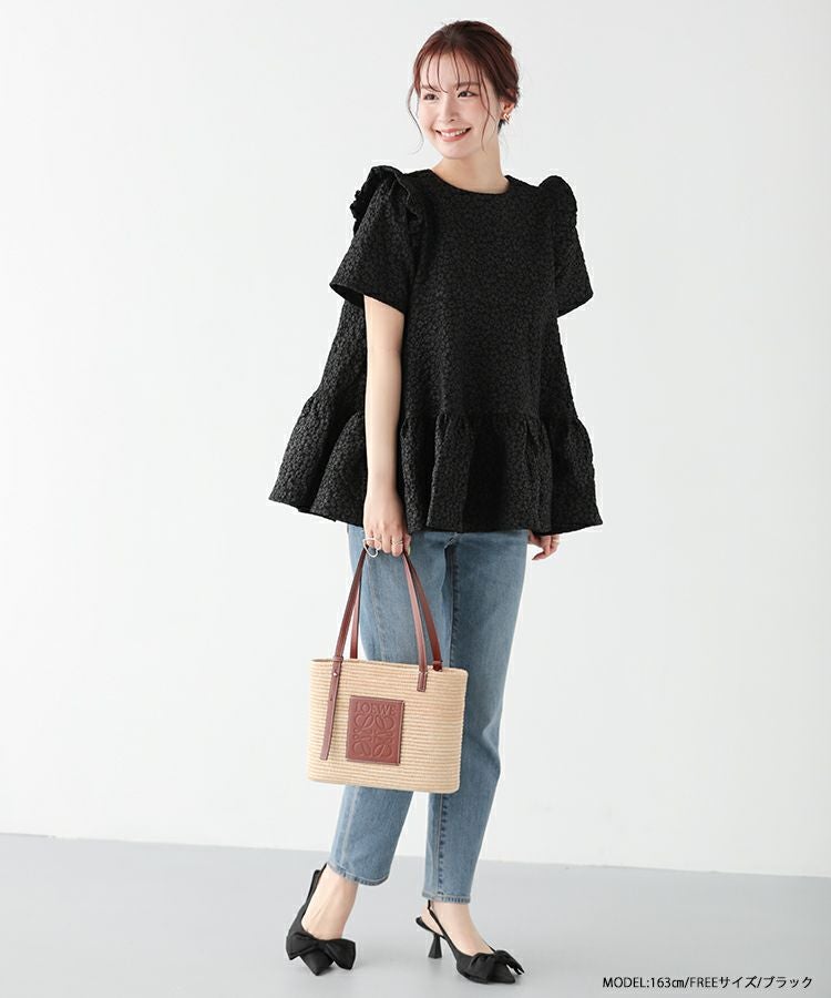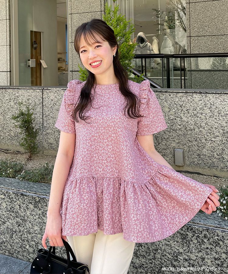 2023ss 春新作 ティアード レアトップス ジャガード 花柄 フリル 【ZOZO限定商品】フラワージャガードティアードトップス【宅配便】