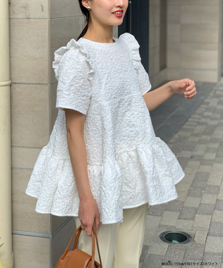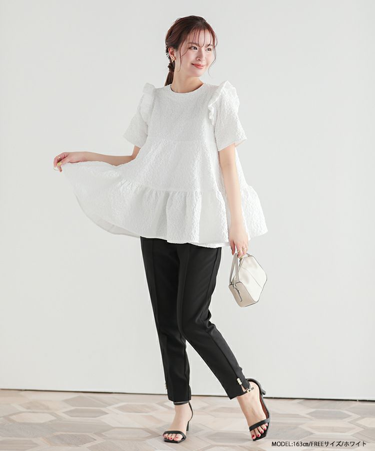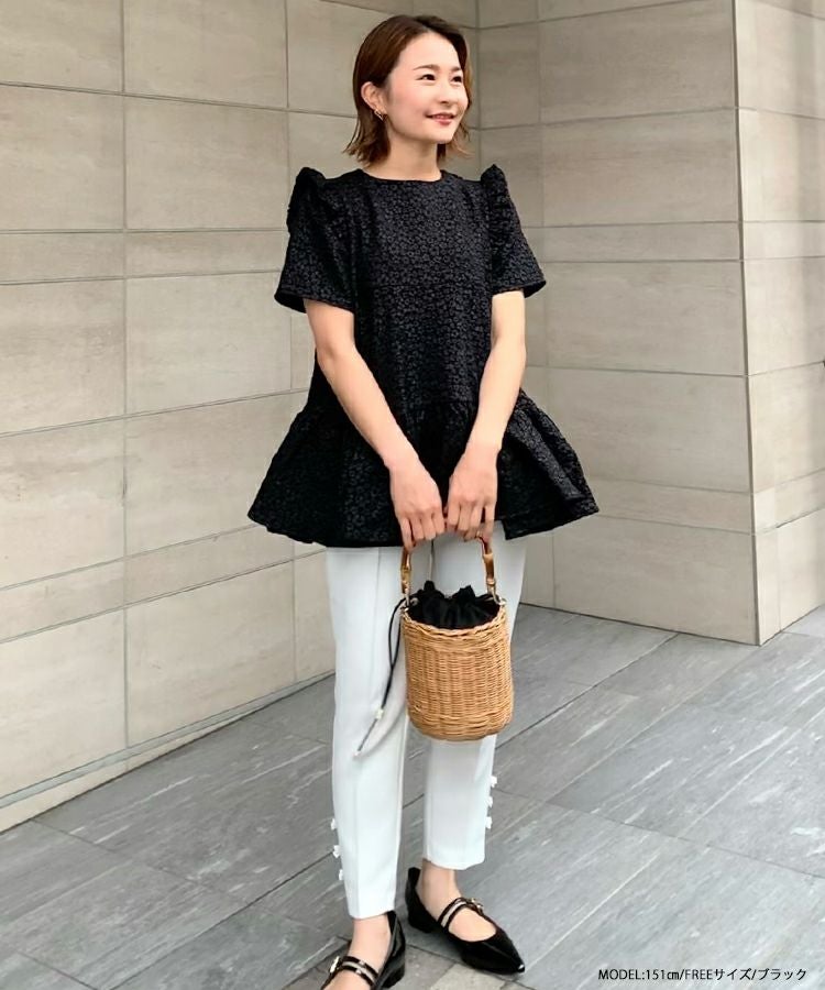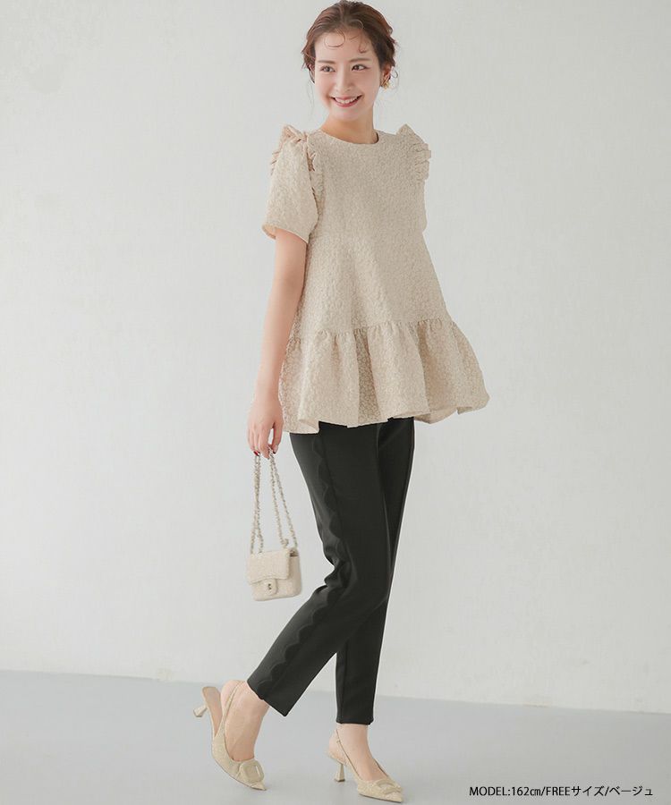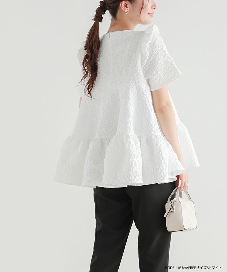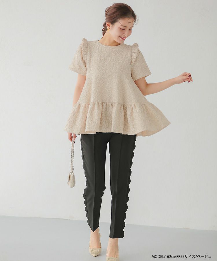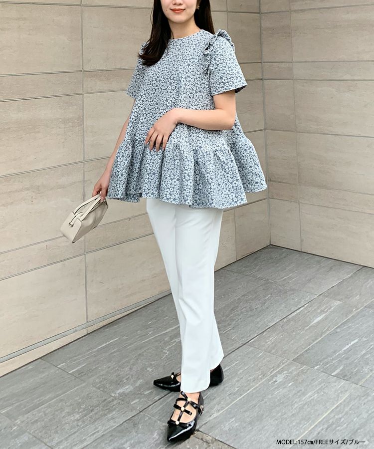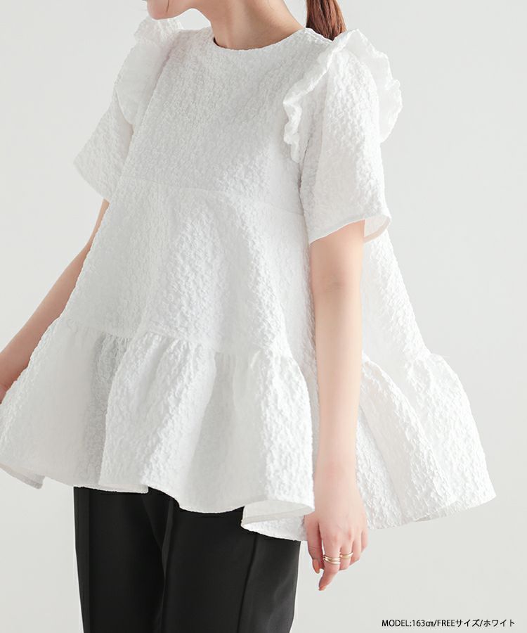 2023ss 春新作 ティアード レアトップス ジャガード 花柄 フリル 【ZOZO限定商品】フラワージャガードティアードトップス【宅配便】