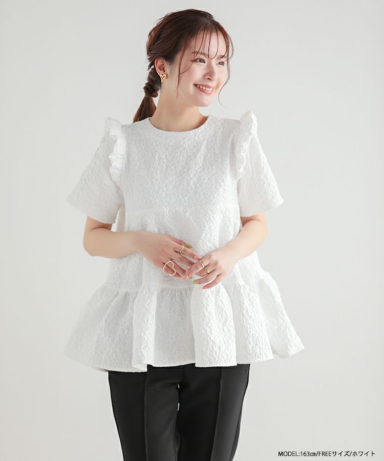 立体的なシルエットが可愛いフラワージャガードトップスが登場。