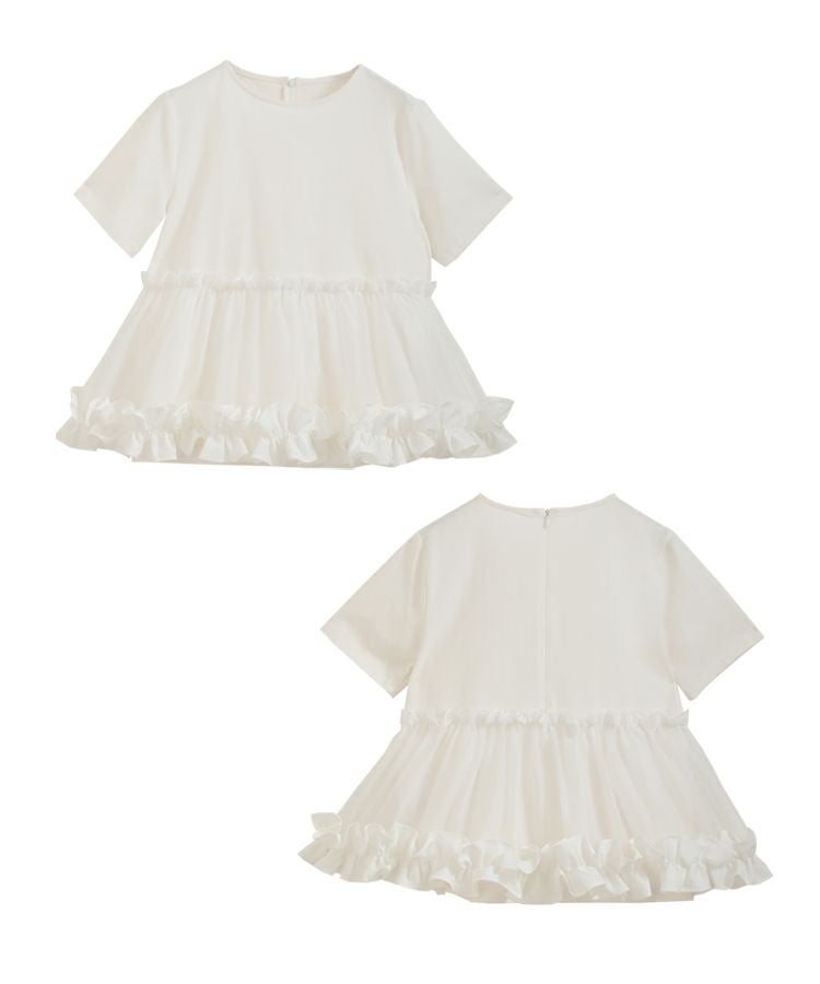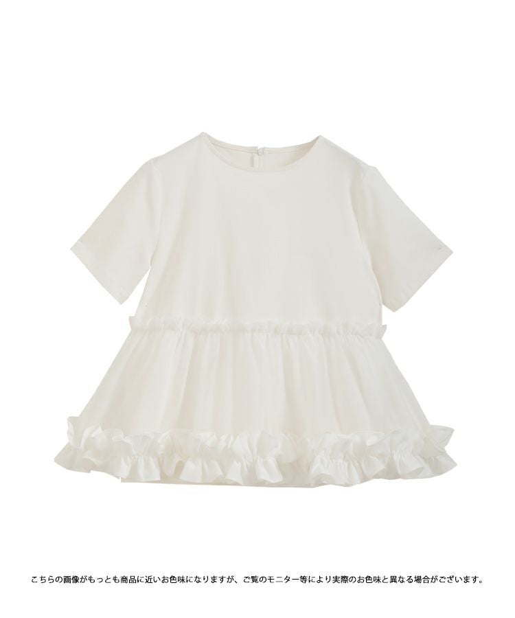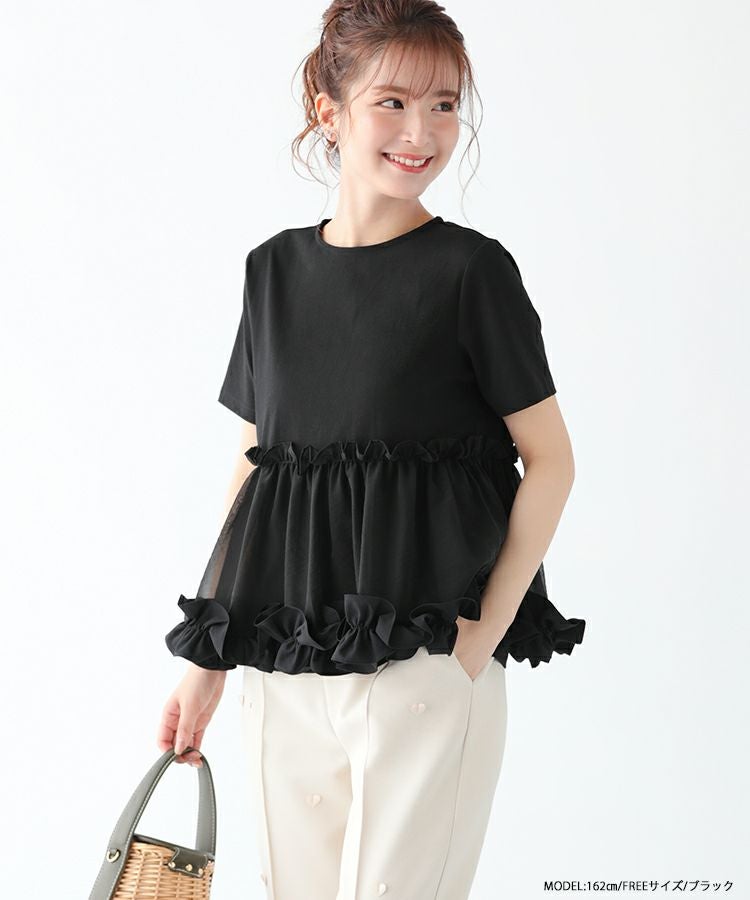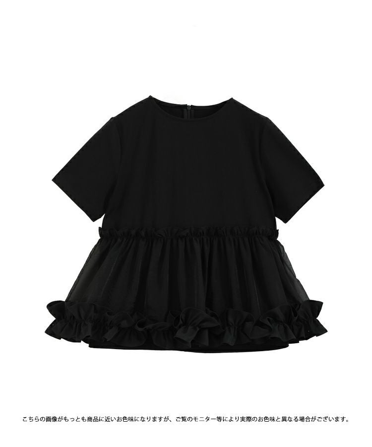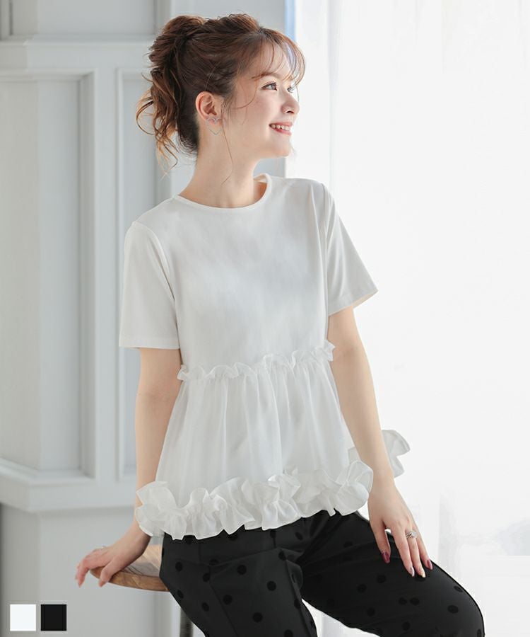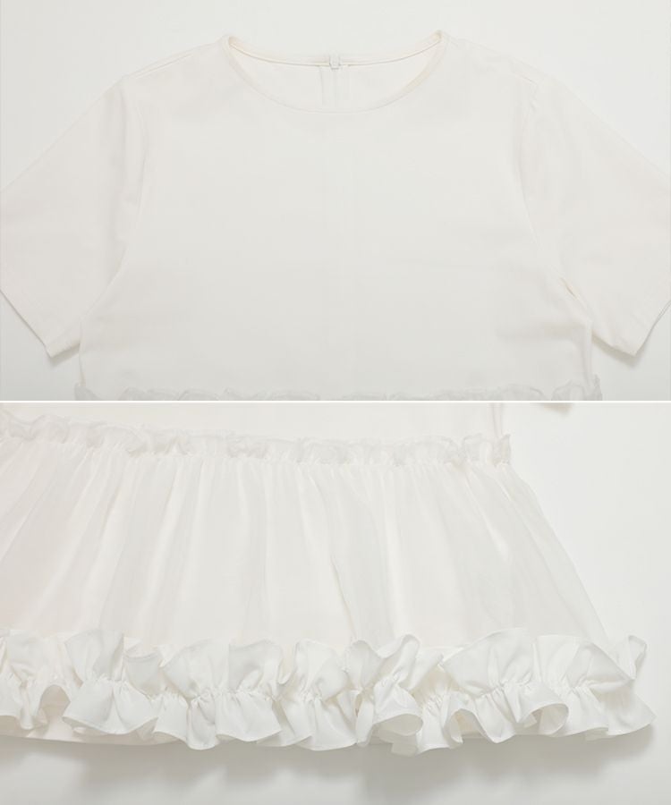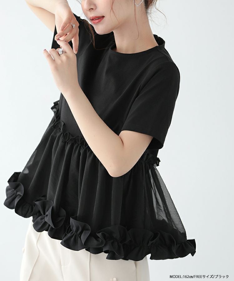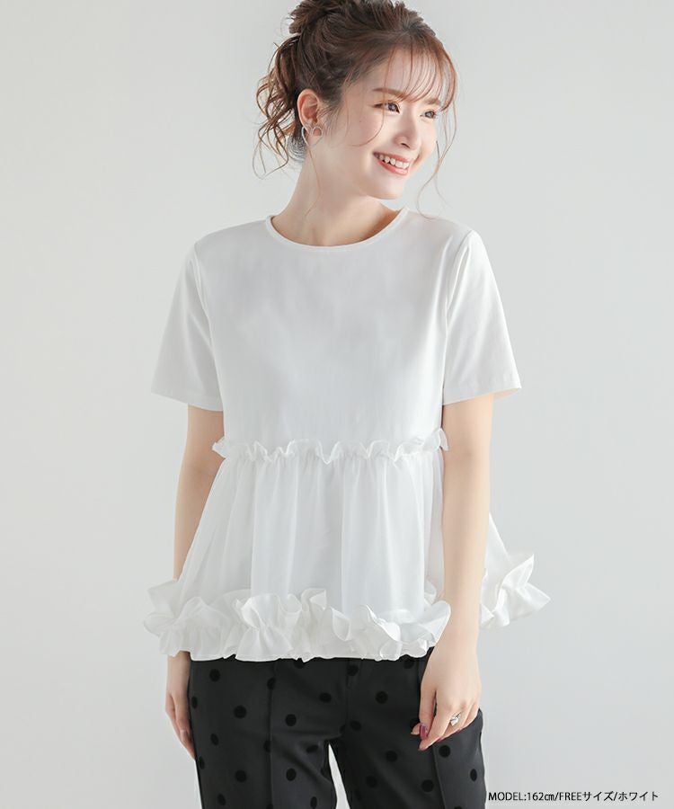 2023ss 春新作 シャツ Tシャツ オーガンジー 切り替え ペプラム 【ZOZO限定商品】裾フリルオーガンジー切り替えTシャツ