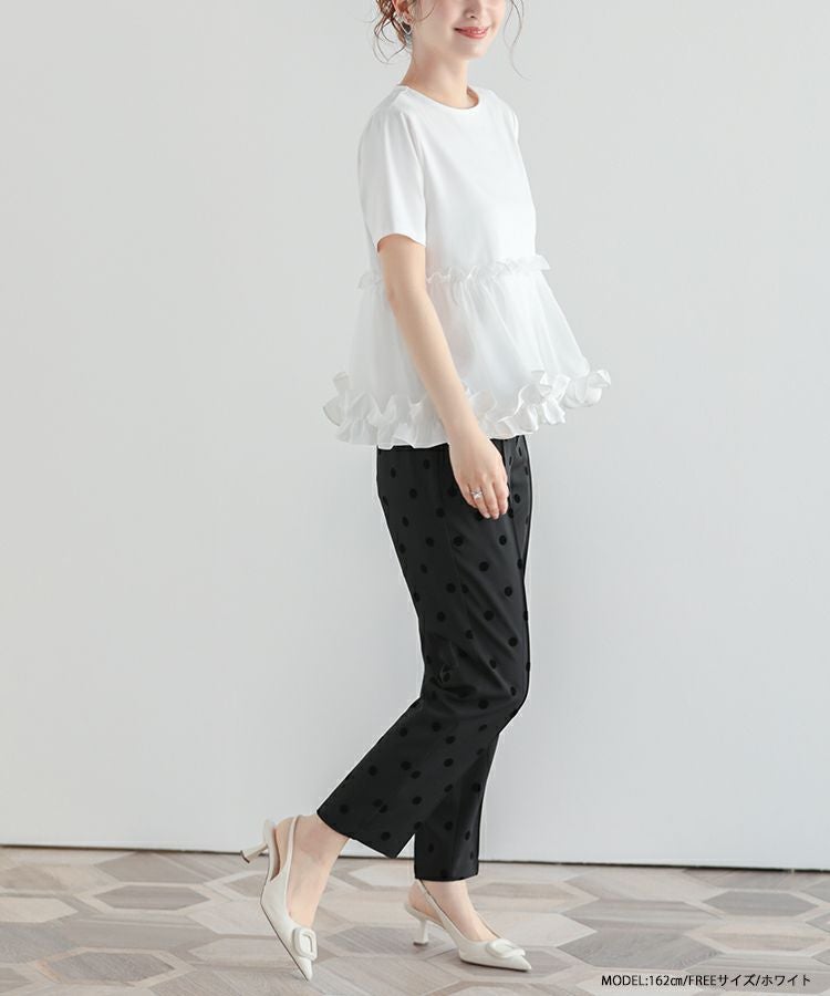 裾にあしらわれたフリルで立体感とムーブのある1枚に。
