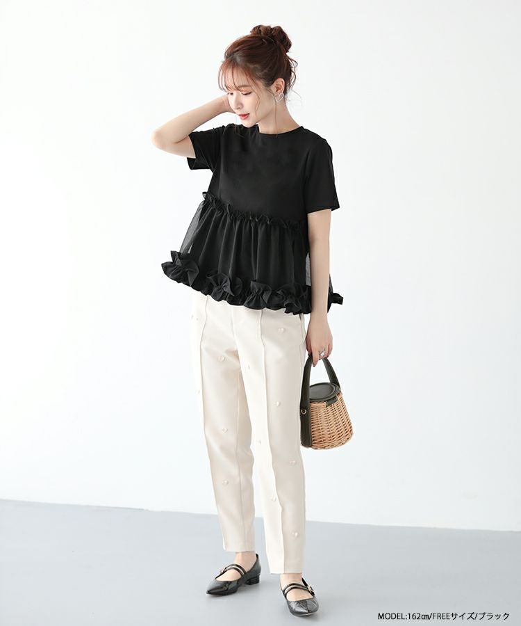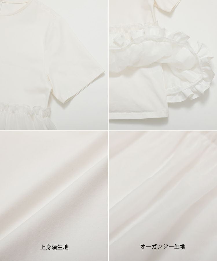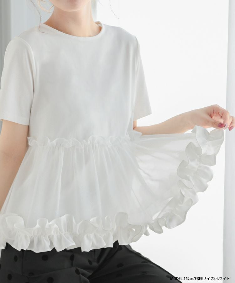 歩くたび揺れ感のあるフリル×オーガンジーが可愛いTシャツ。