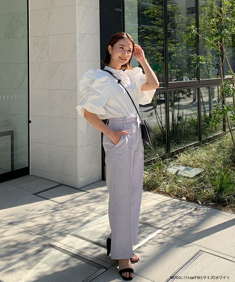存在感のあるボリュームスリーブはゴムを入れてギャザーをよせ、自立したシルエットに。
