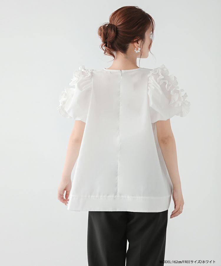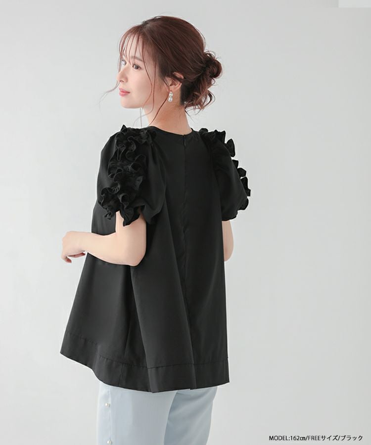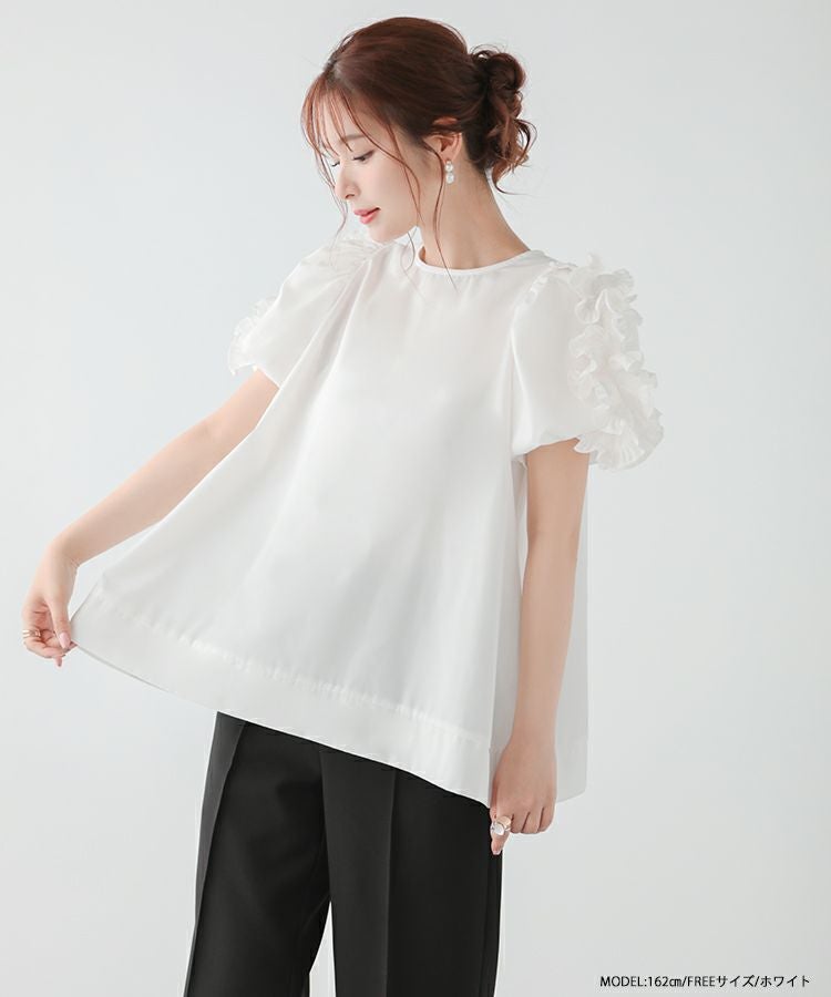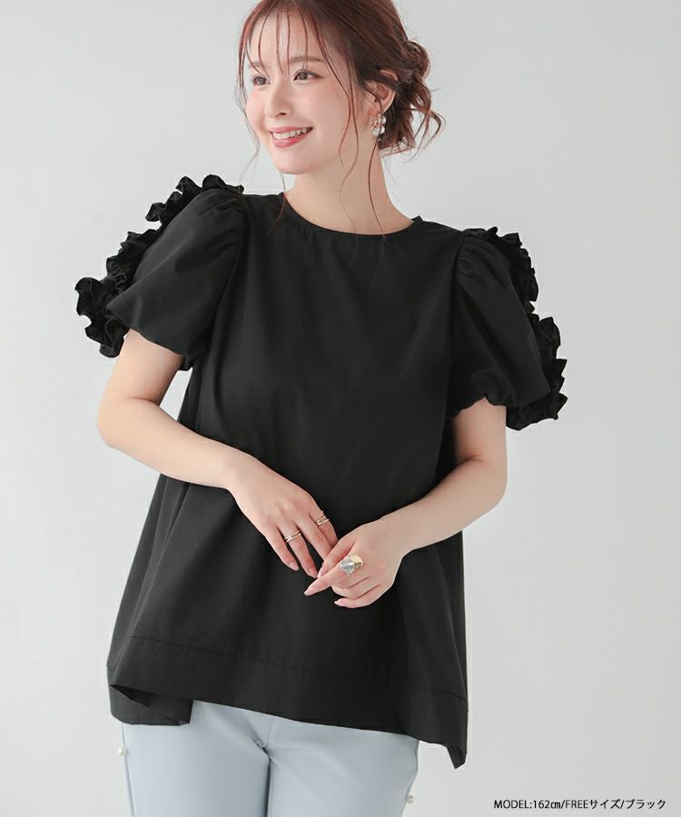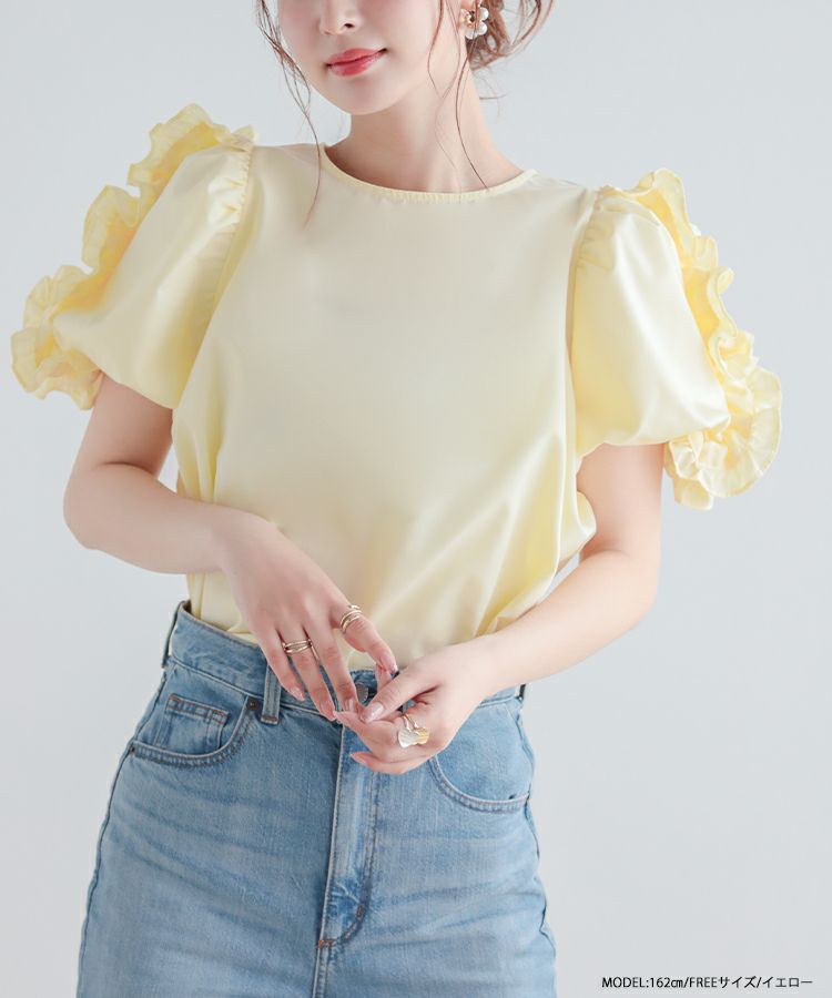 2023ss 夏新作 シャツ ブラウス バルーンスリーブ フリル ショルダーフリル フレア 【ZOZO限定商品】ショルダーフリルバルーンスリーブブラウス【メール便】