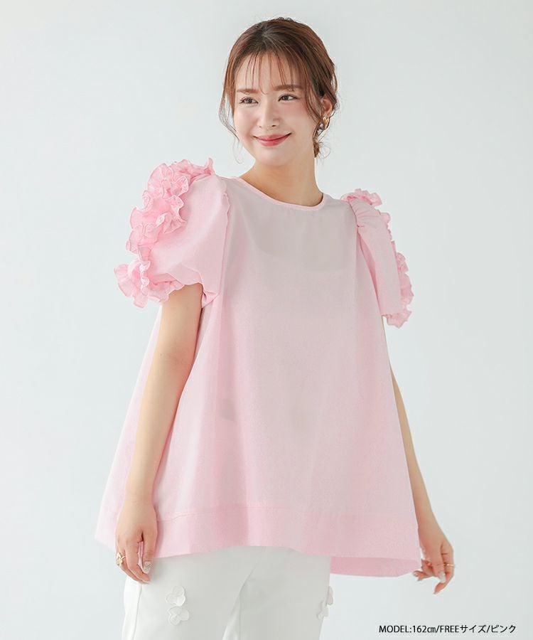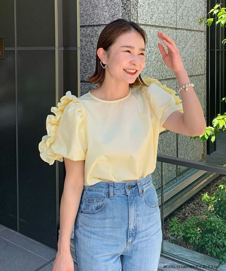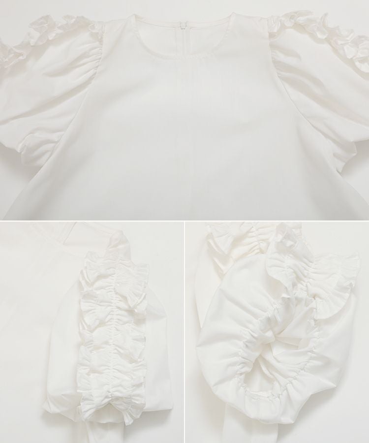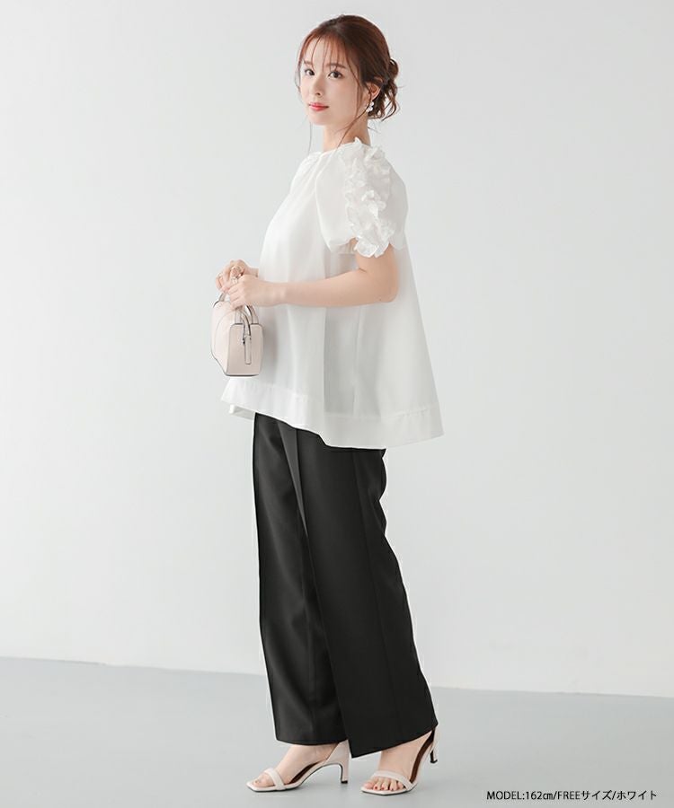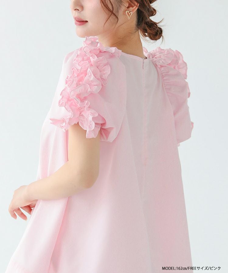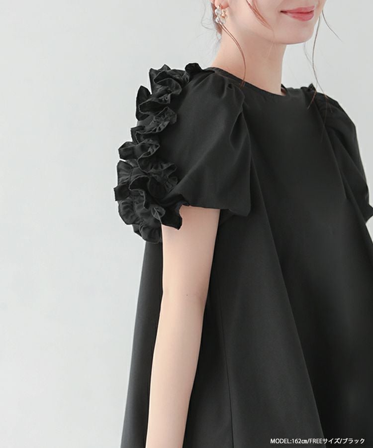 2023ss 夏新作 シャツ ブラウス バルーンスリーブ フリル ショルダーフリル フレア 【ZOZO限定商品】ショルダーフリルバルーンスリーブブラウス【メール便】