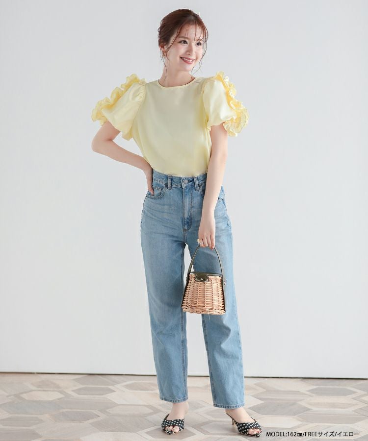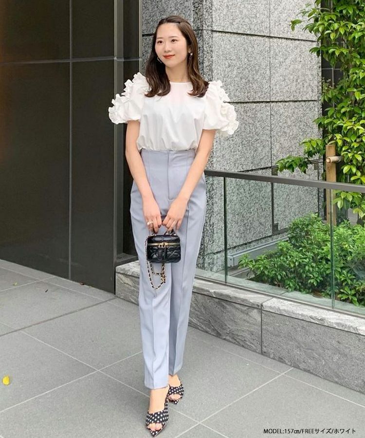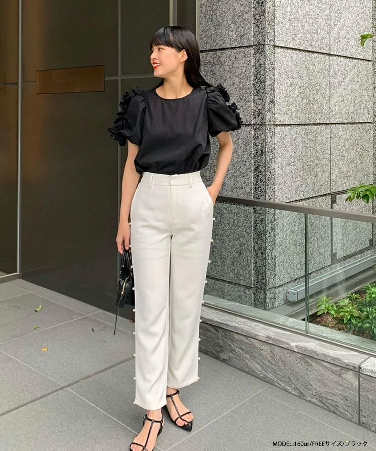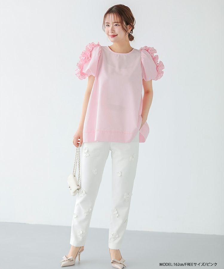 華やかなショルダーフリルが目を惹くフレアブラウスが登場。