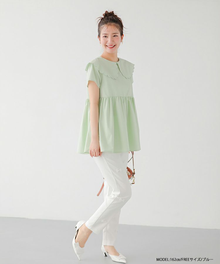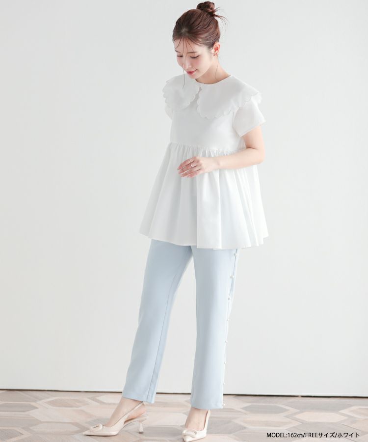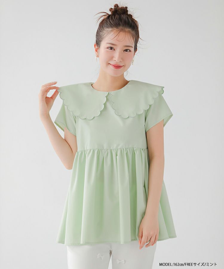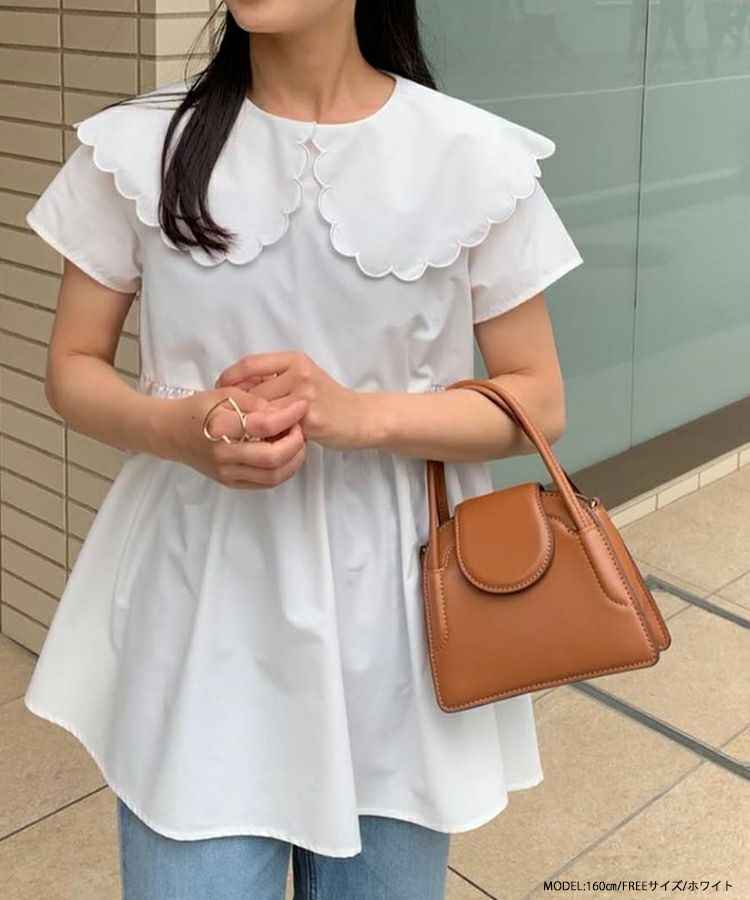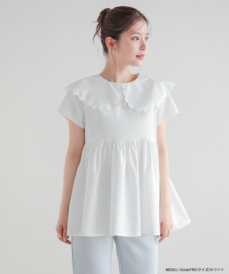 2023ss 夏新作 シャツ ブラウス スカラップカラー スカラップ フレア ペプラム 【ZOZO限定商品】スカラップカラーペプラムブラウス【メール便】