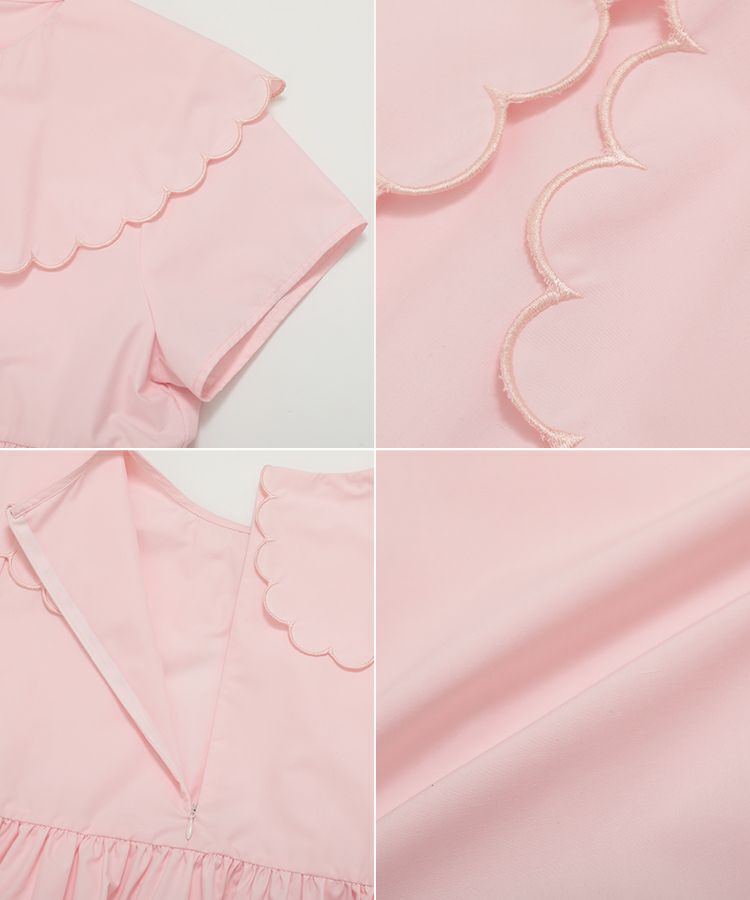 スカラップの衿には刺繡を施し、高級感のある1枚に。
