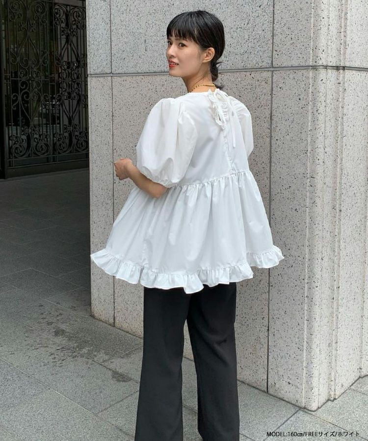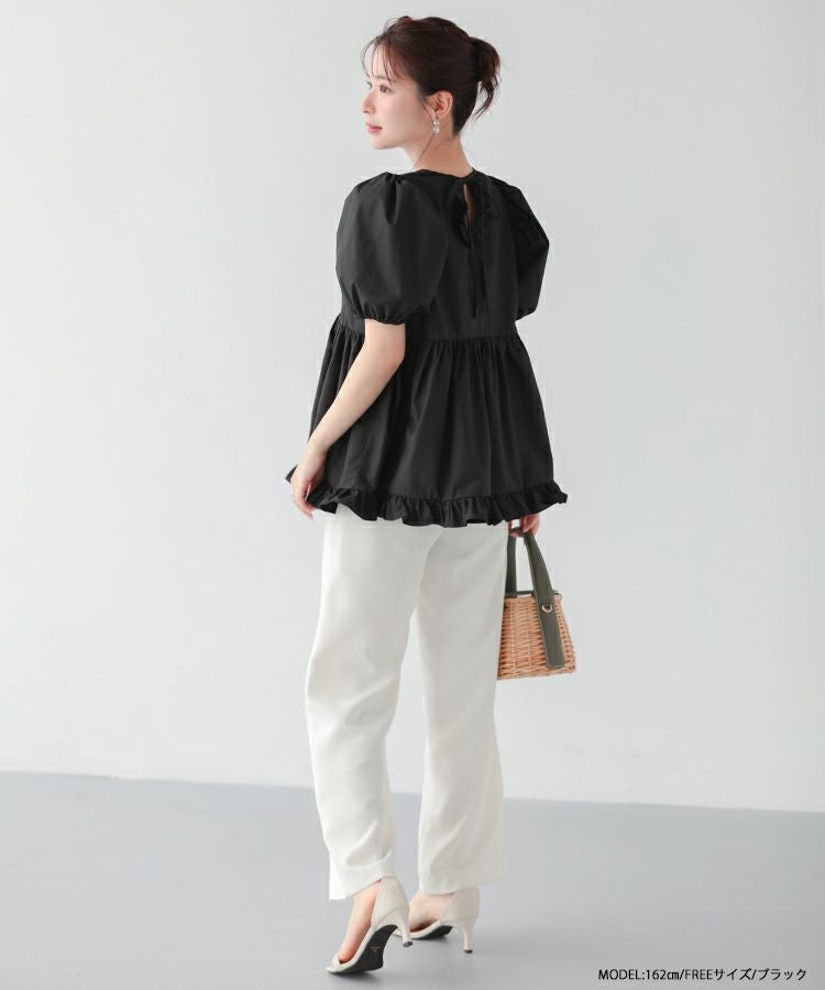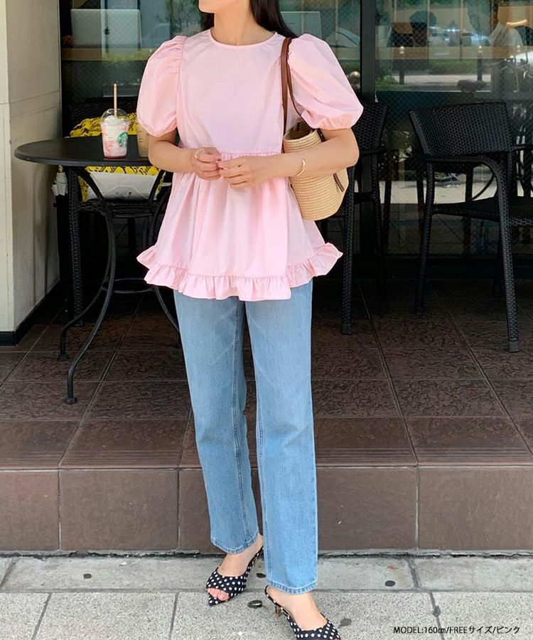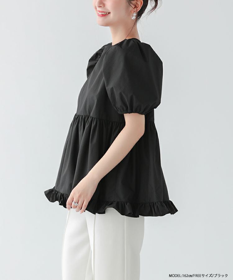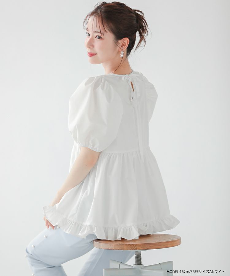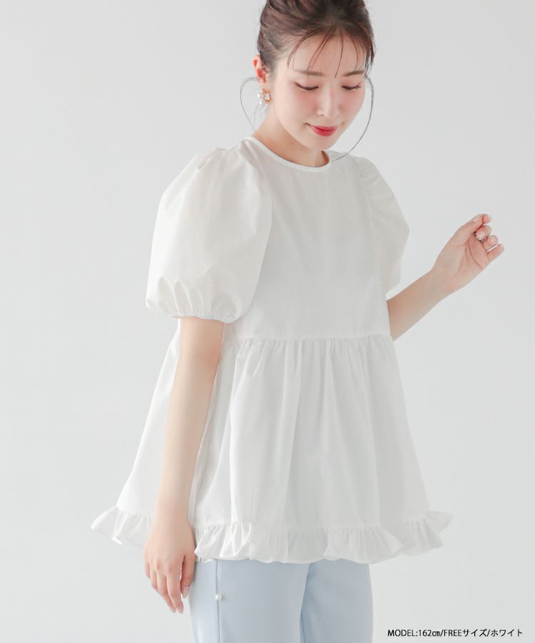 2023ss 夏新作 ブラウス ペプラム 裾フリル バックオープン バックオープン裾フリルペプラムブラウス【宅配便】