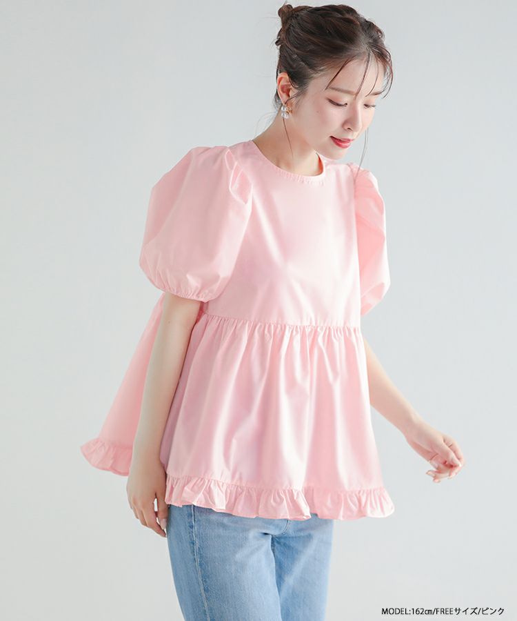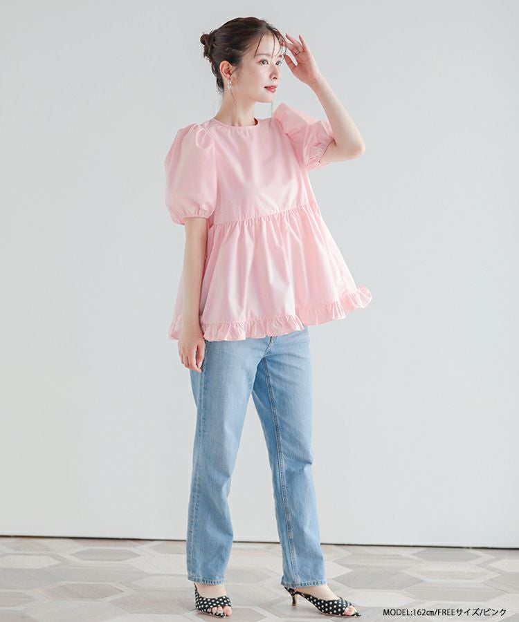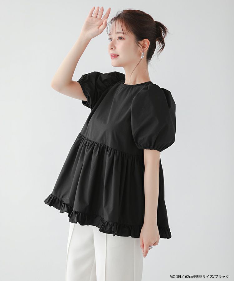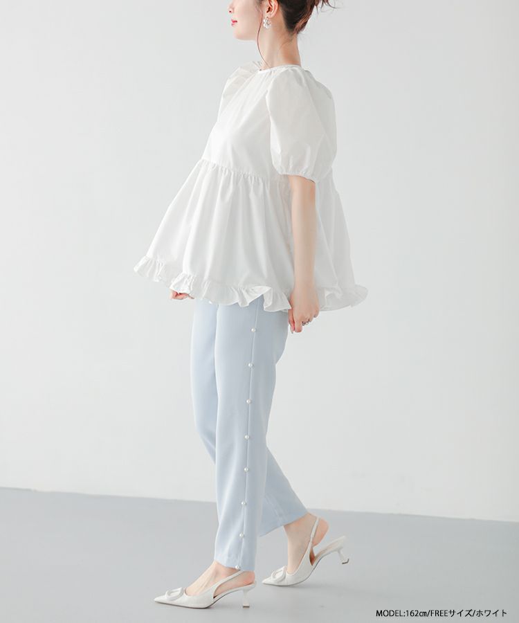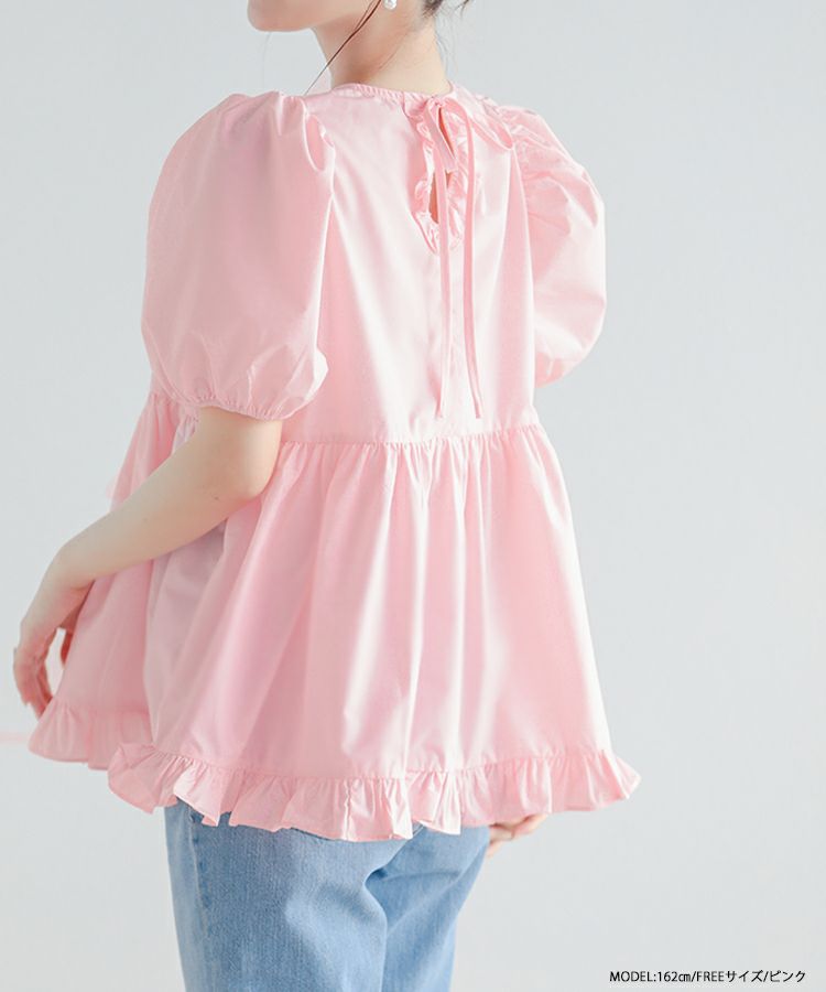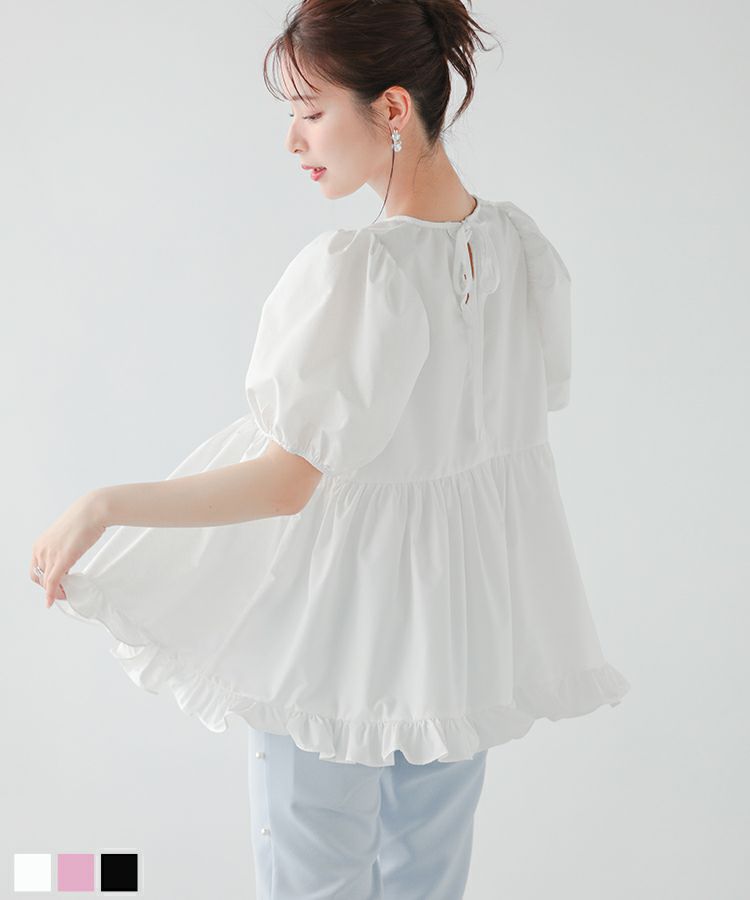 2023ss 夏新作 ブラウス ペプラム 裾フリル バックオープン バックオープン裾フリルペプラムブラウス【宅配便】