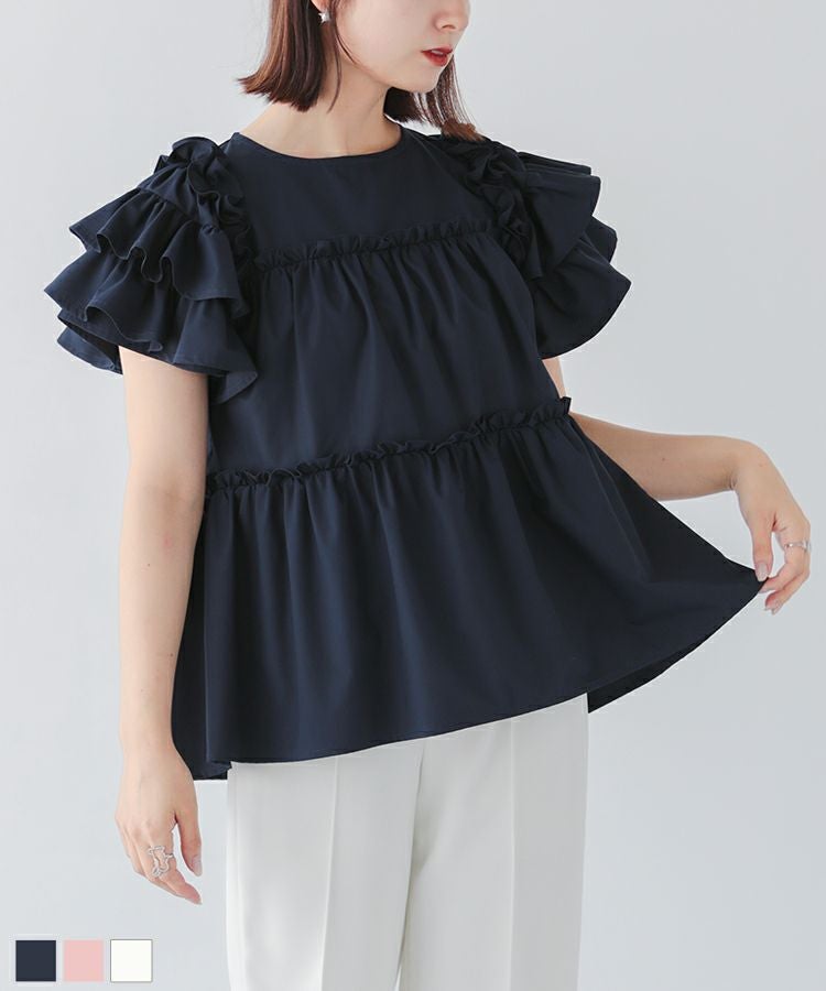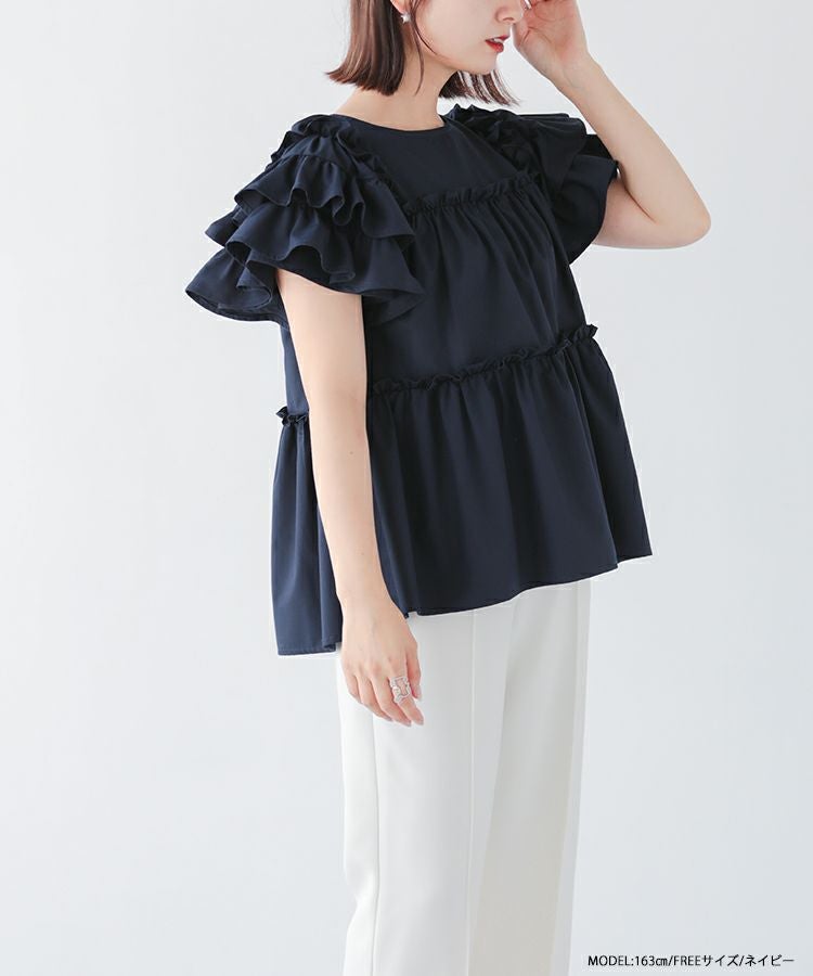 2023ss 夏新作 ブラウス ペプラム ティアード フリル ティアードフリルフレアブラウス【宅配便】