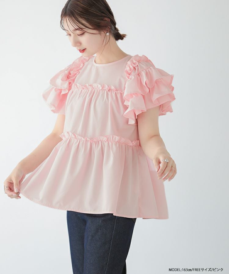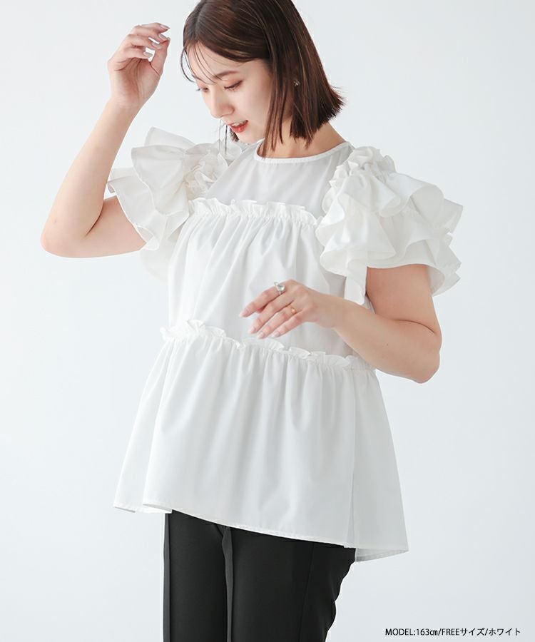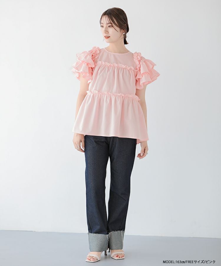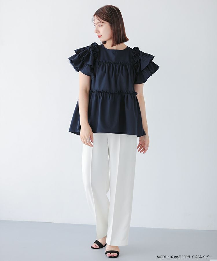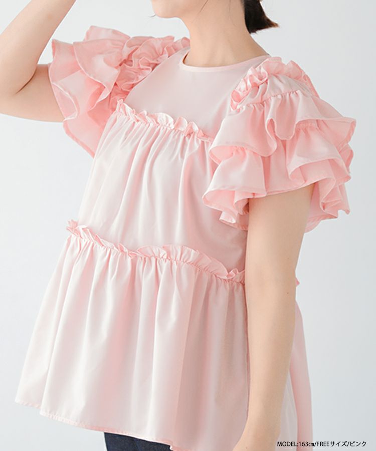 ボリューム感が可愛いティアードフリルトップス。