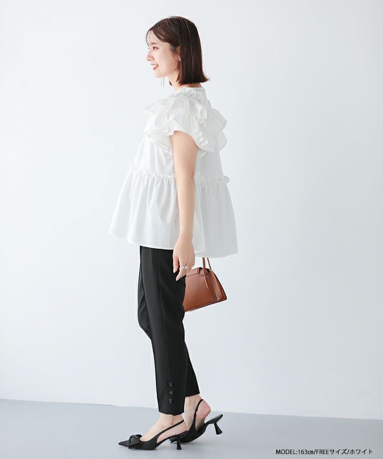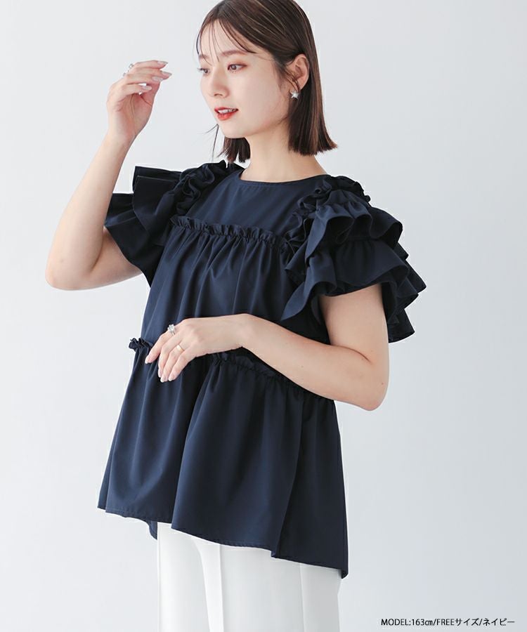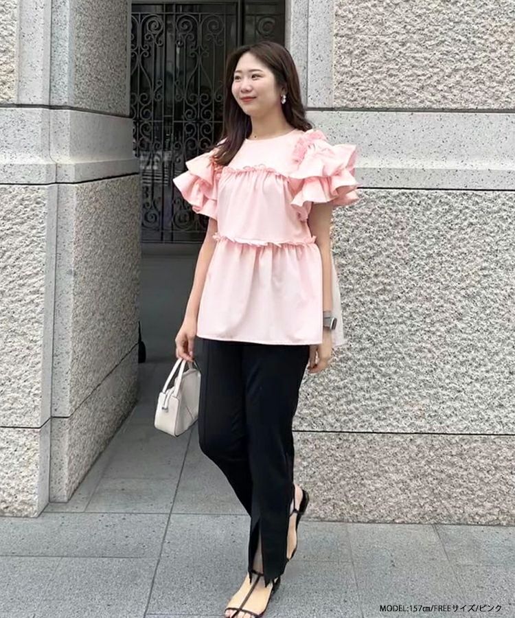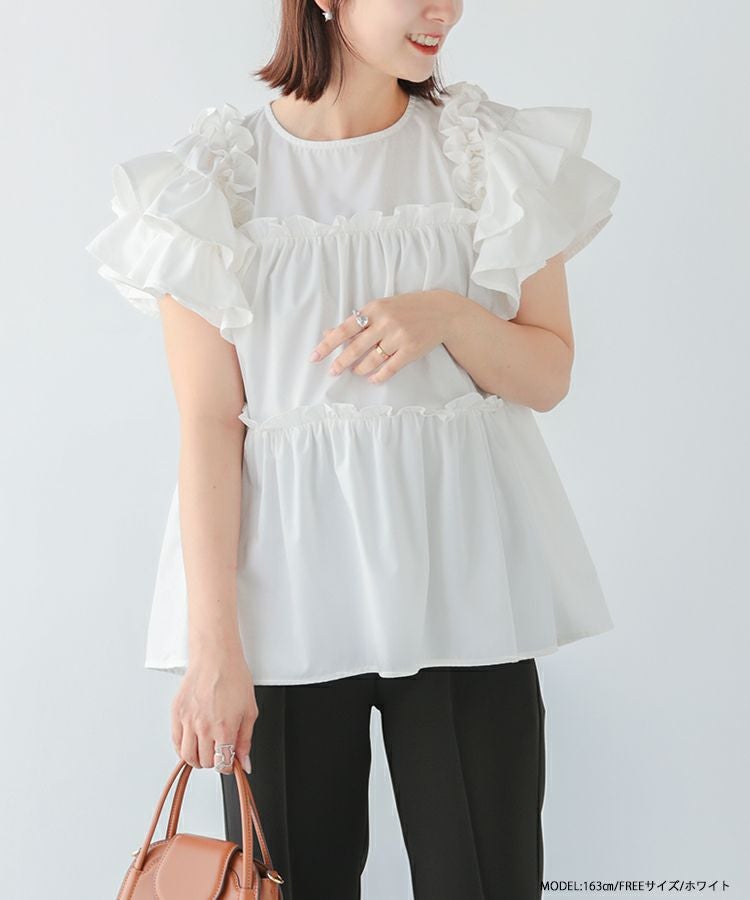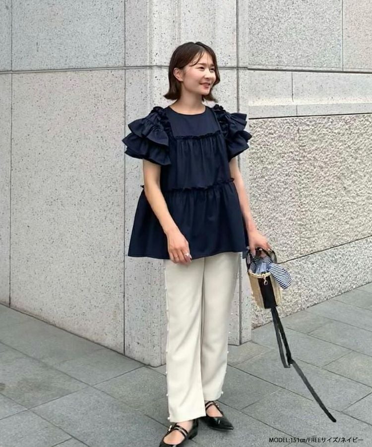 ボリューム感が可愛いティアードフリルトップス。