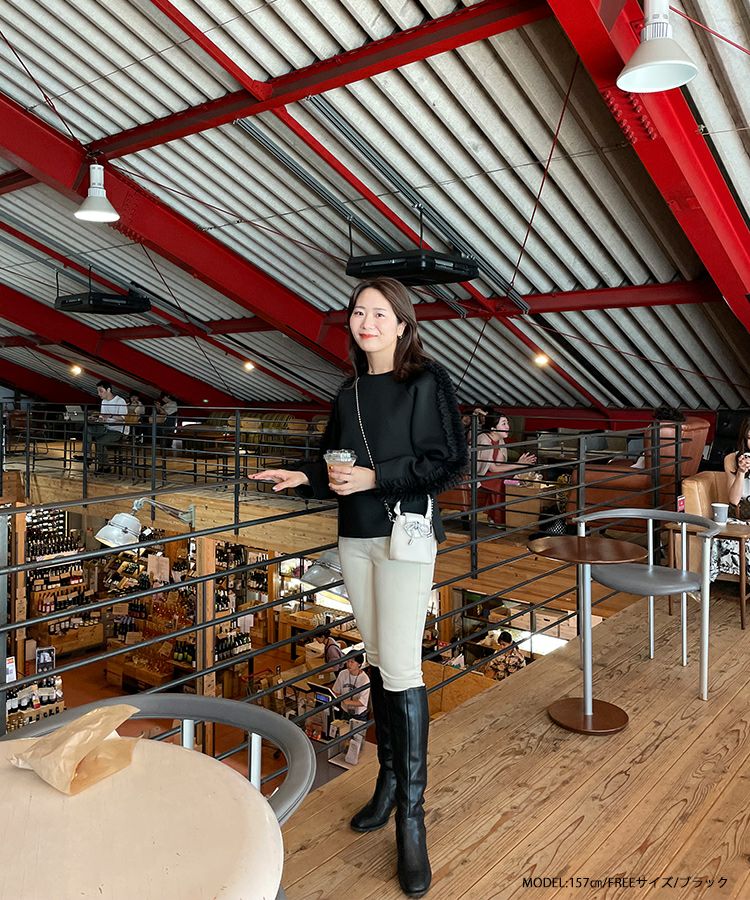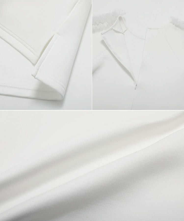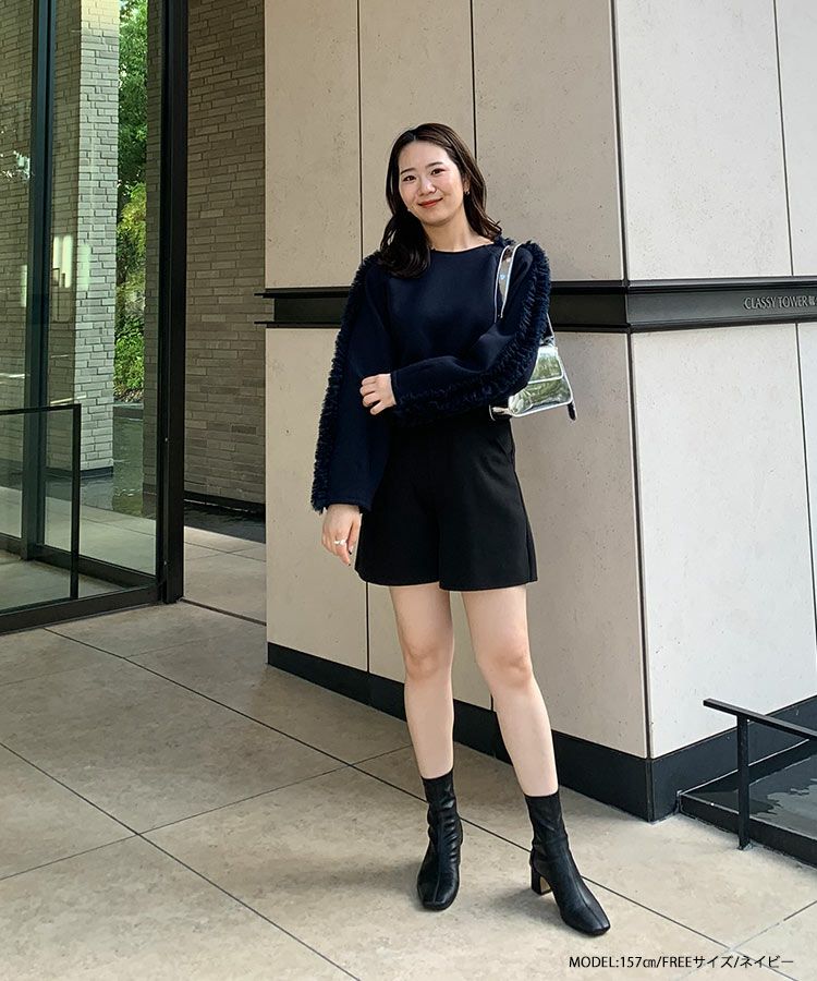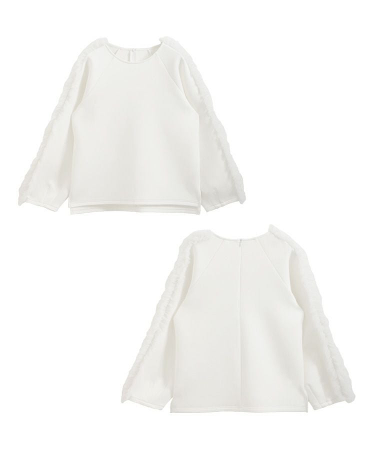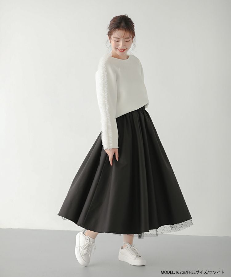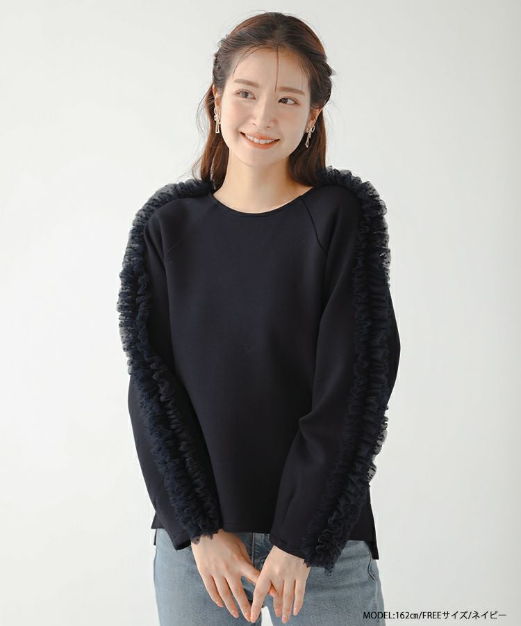 袖のドットチュールフリルが大人フェミニンなトップス。
