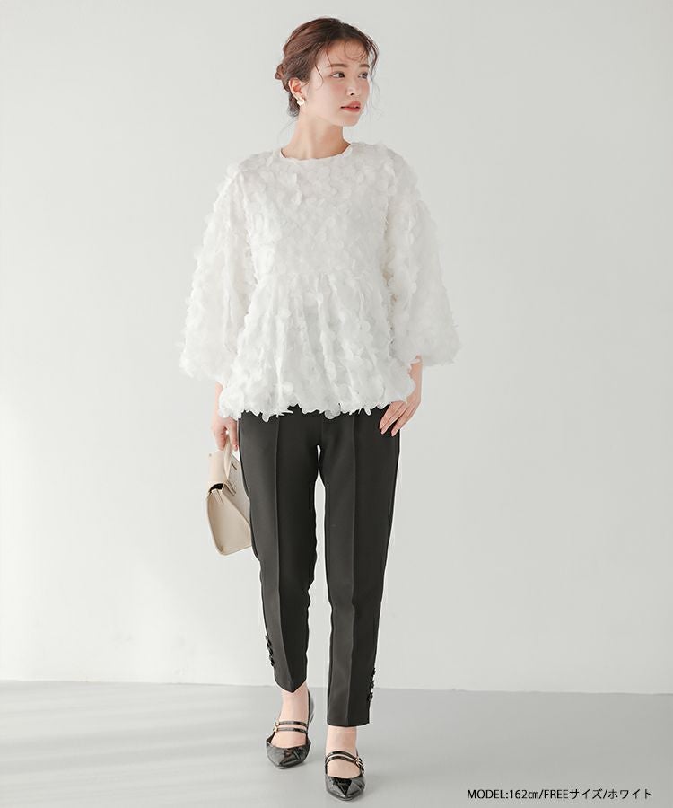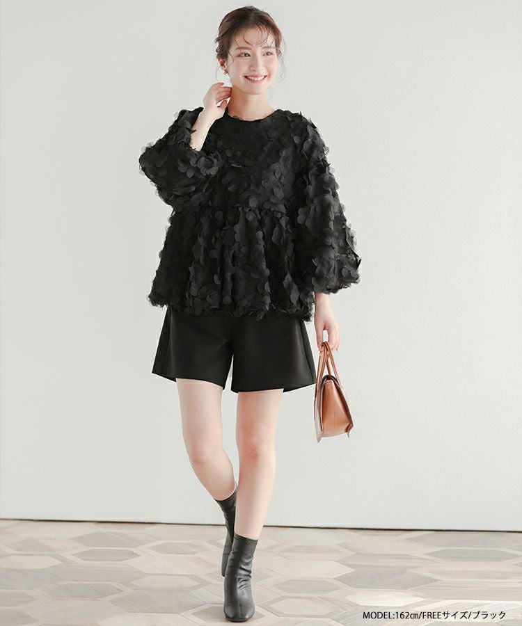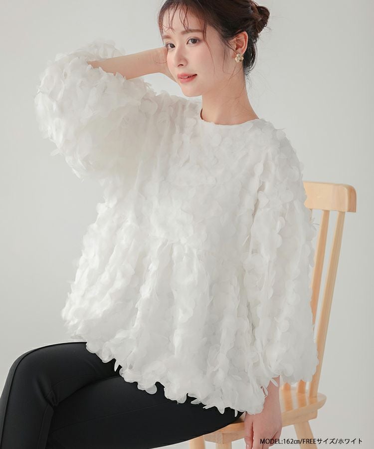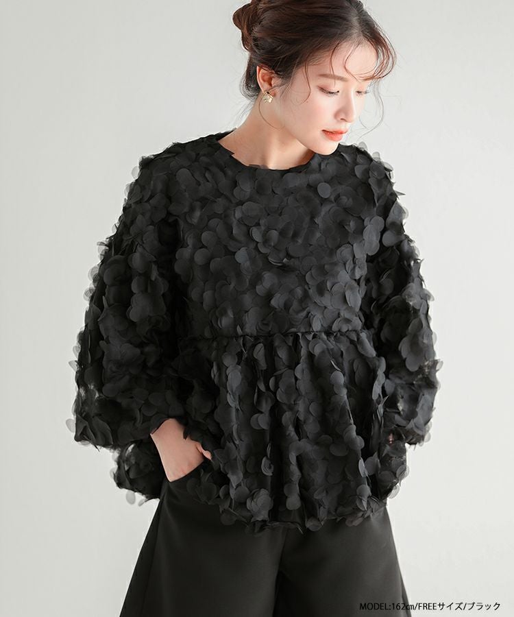 2023aw 秋新作 フラワー フラワーモチーフ バルーン フラワーモチーフロングスリーブトップス【宅配便】