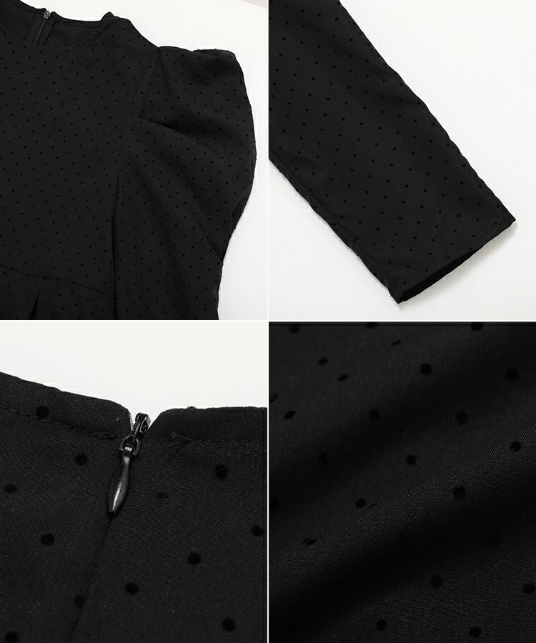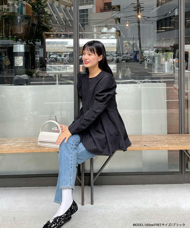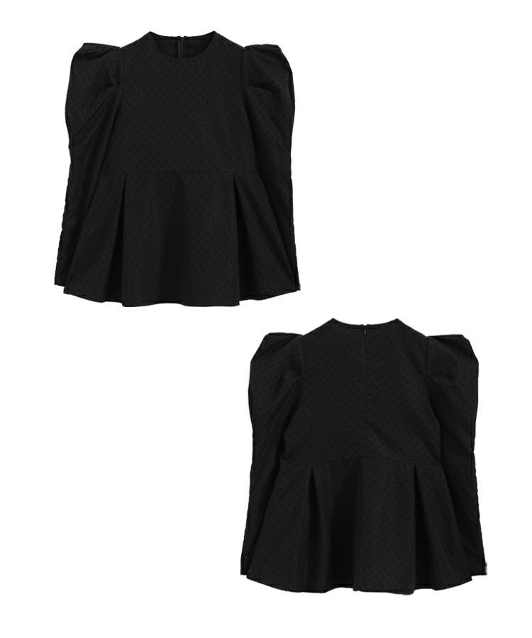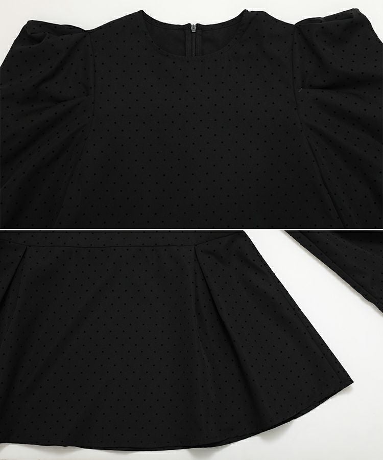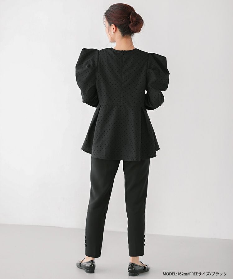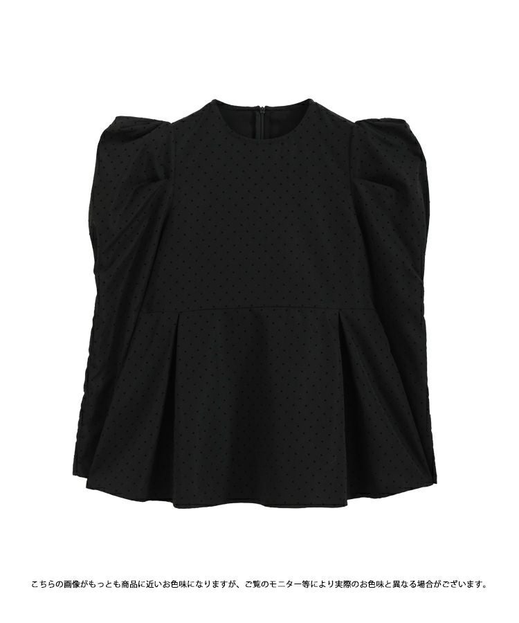 2023aw パワショル ドット フロッキードット ブラウス ペプラム バルーンスリーブ 長袖 フロッキードットパワショルブラウス【宅配便】