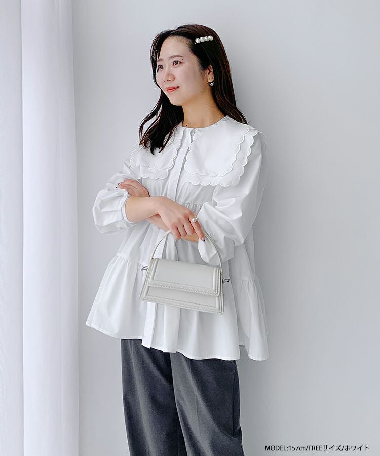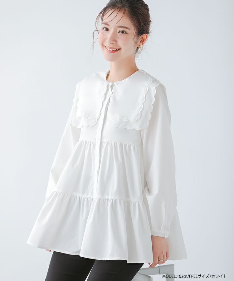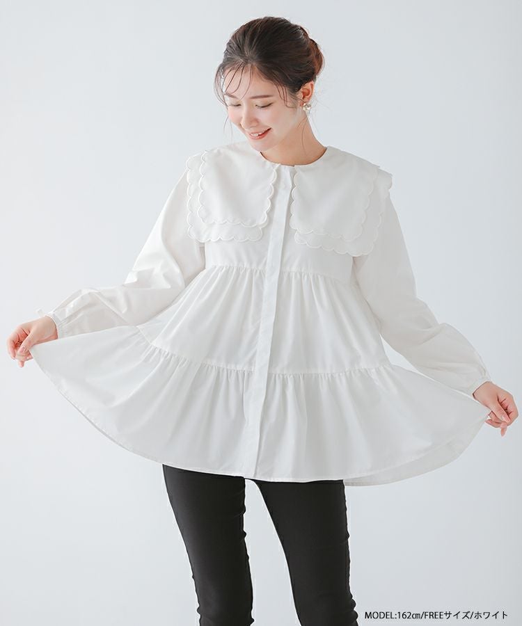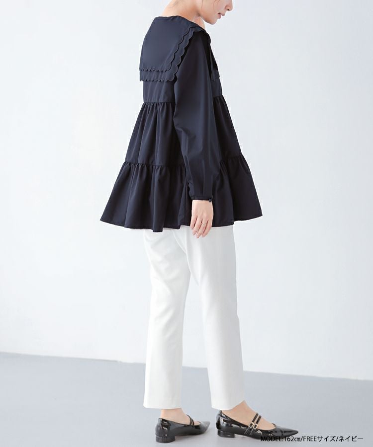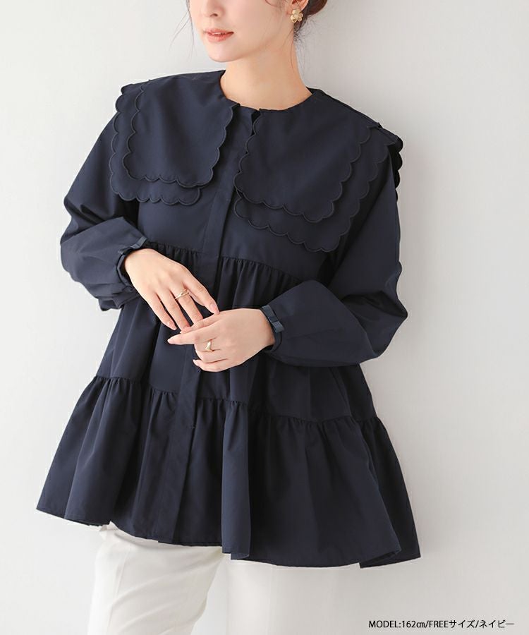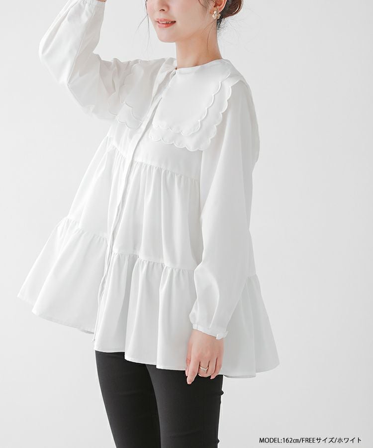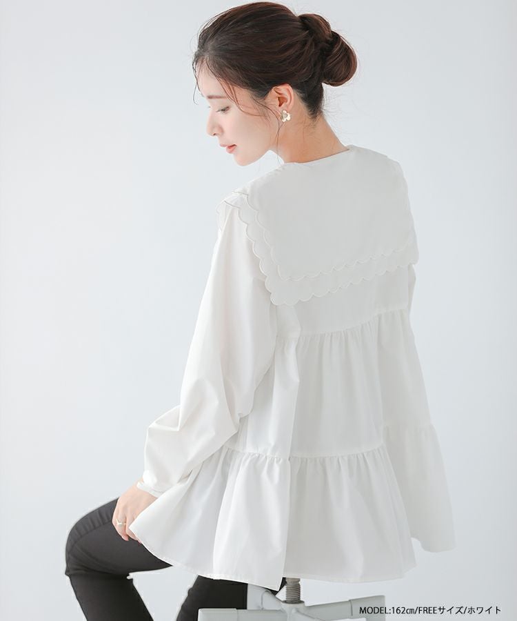 2023aw 秋新作  シャツ ブラウス スカラップカラー セーラーカラー ビッグカラー スカラップ フレア ティアード ダブルスカラップカラーティアードブラウス【宅配便】