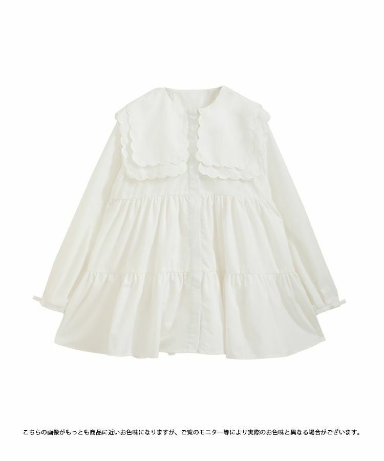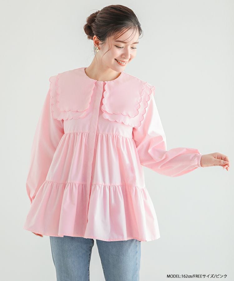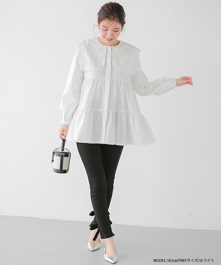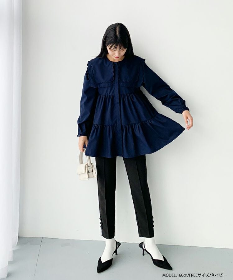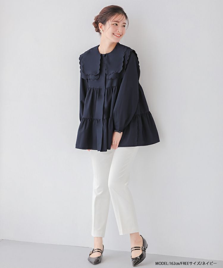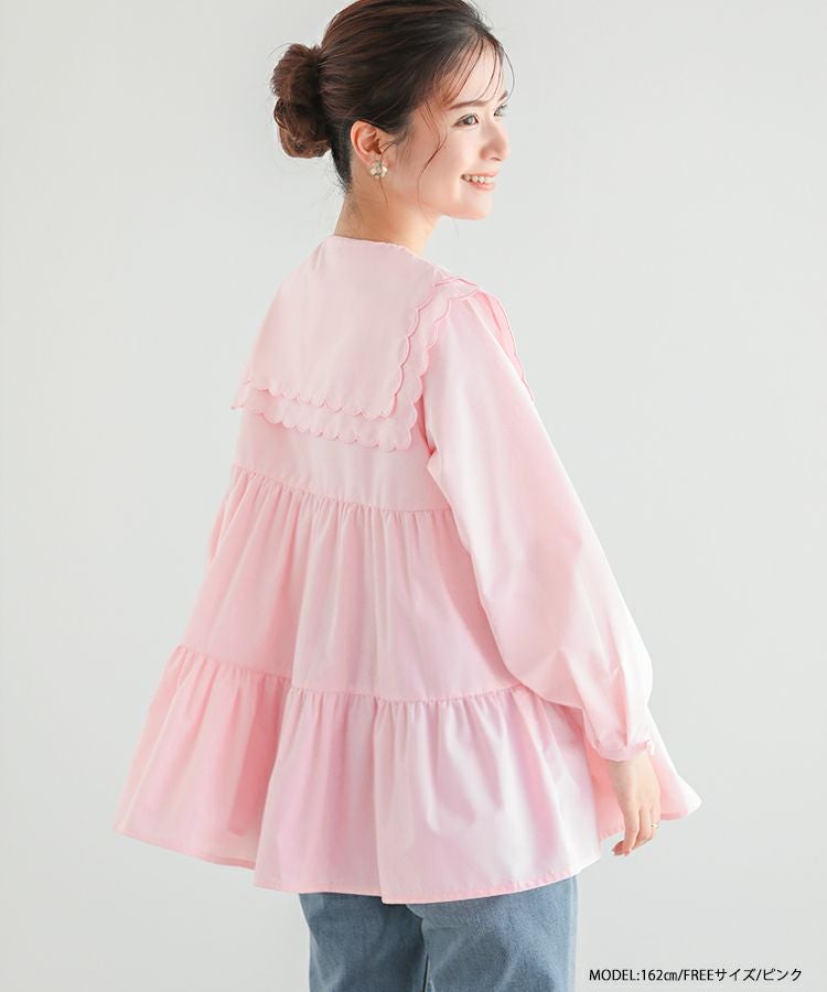 2023aw 秋新作  シャツ ブラウス スカラップカラー セーラーカラー ビッグカラー スカラップ フレア ティアード ダブルスカラップカラーティアードブラウス【宅配便】
