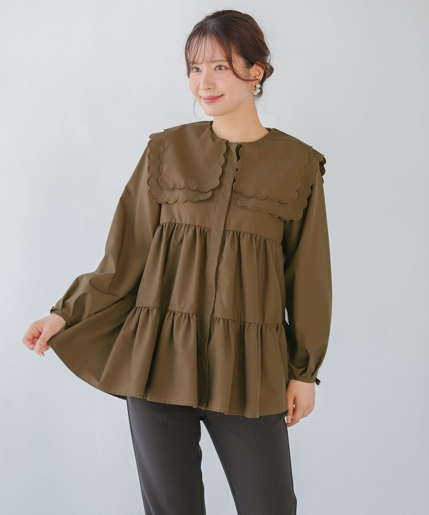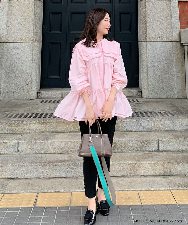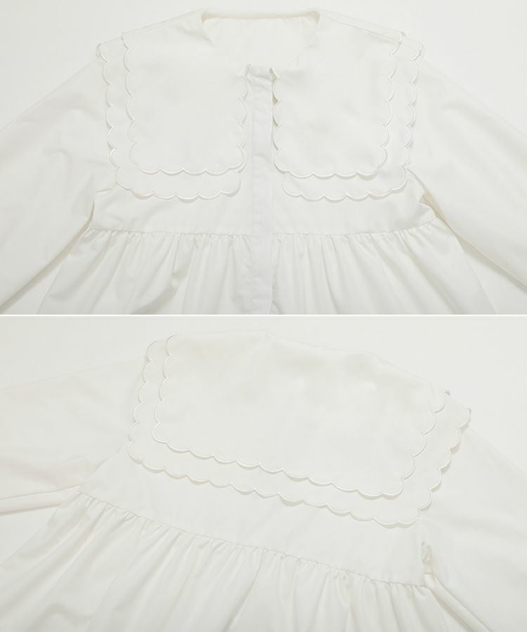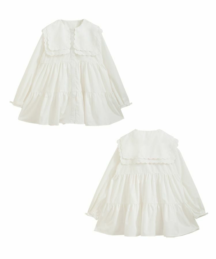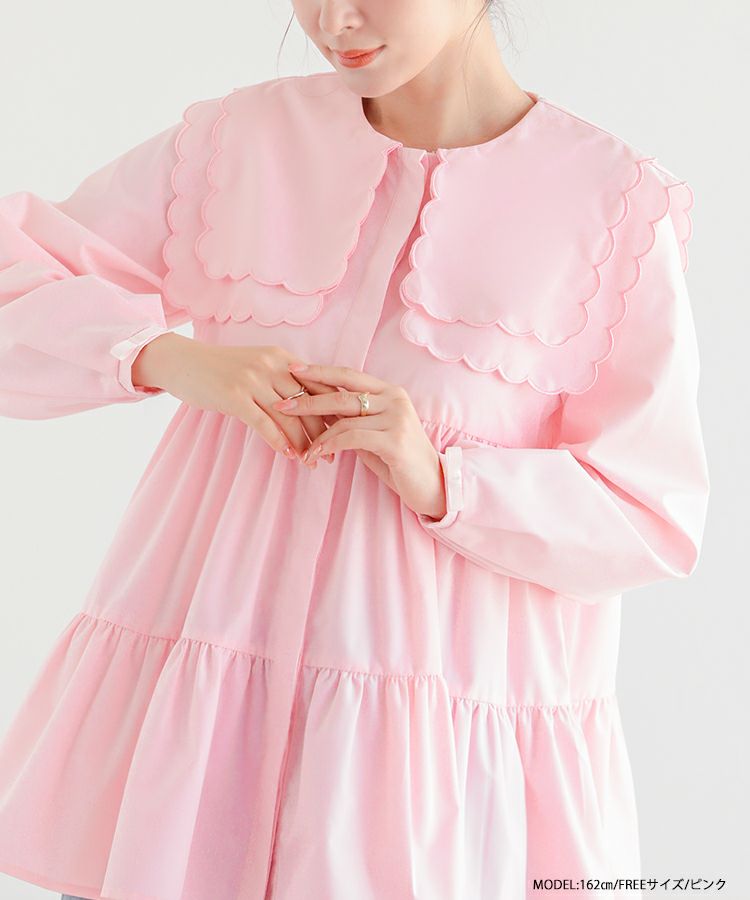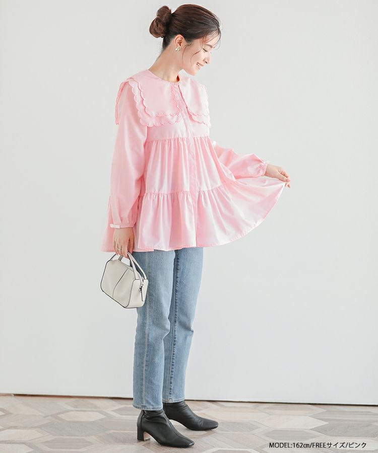 2023aw 秋新作  シャツ ブラウス スカラップカラー セーラーカラー ビッグカラー スカラップ フレア ティアード ダブルスカラップカラーティアードブラウス【宅配便】