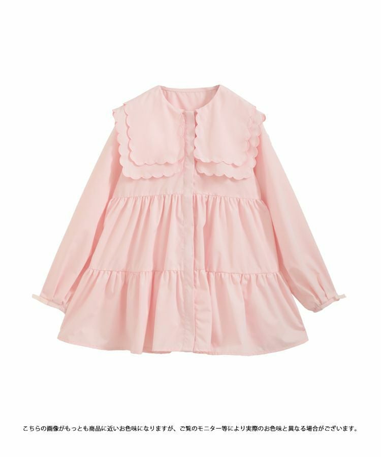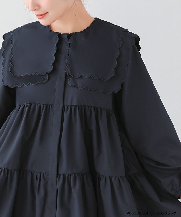 丸みのあるスカラップカラーを2枚重ねて存在感のある襟に。