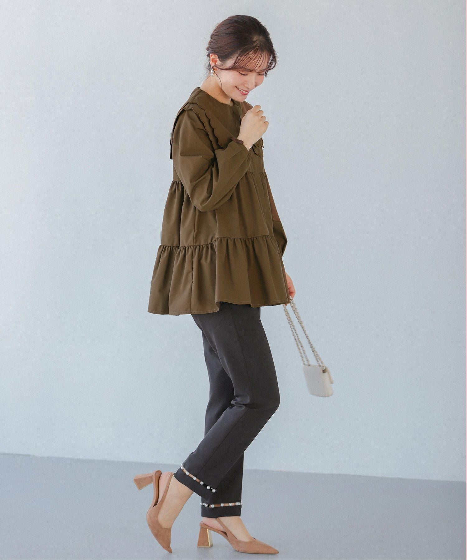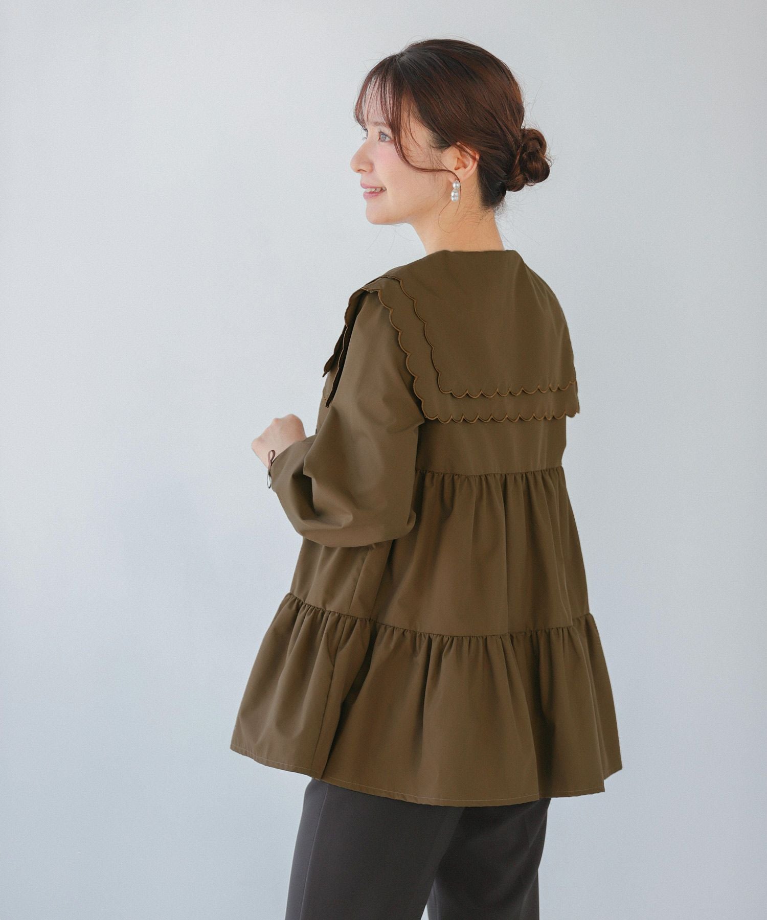 大きめのスカラップカラーがお顔を小顔に見せてくれます。