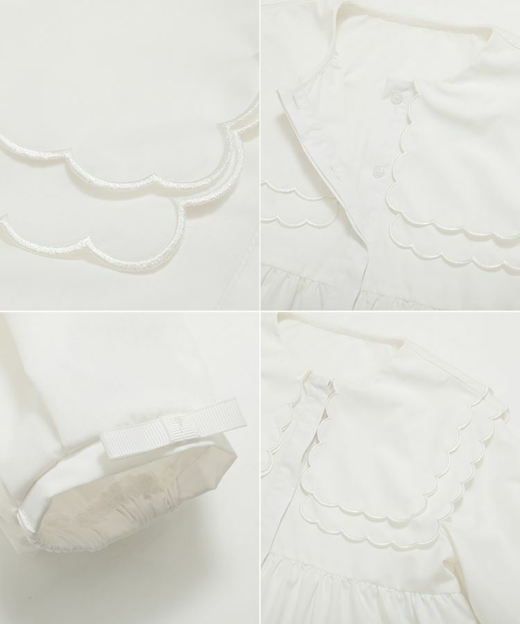 スカラップの衿には刺繡を施し、高級感のある1枚に。