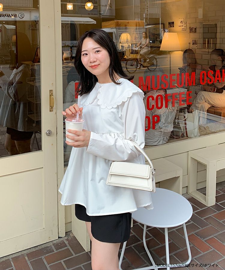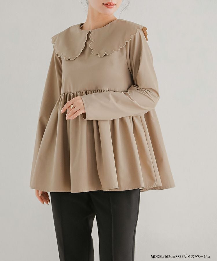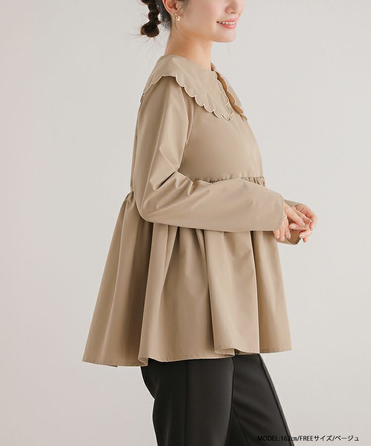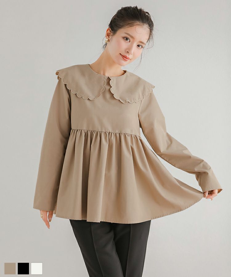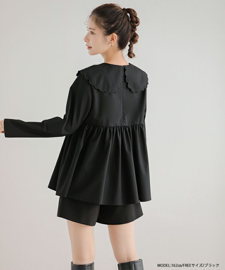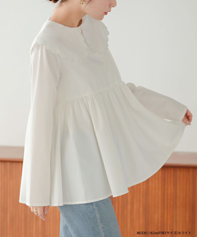 2023aw 秋新作  シャツ ブラウス スカラップカラー ペプラム 【ZOZO限定商品】スカラップカラーペプラムロングスリーブブラウス【宅配便】