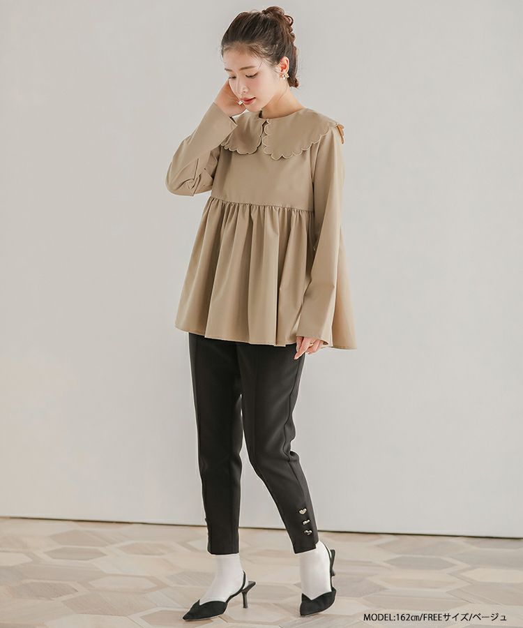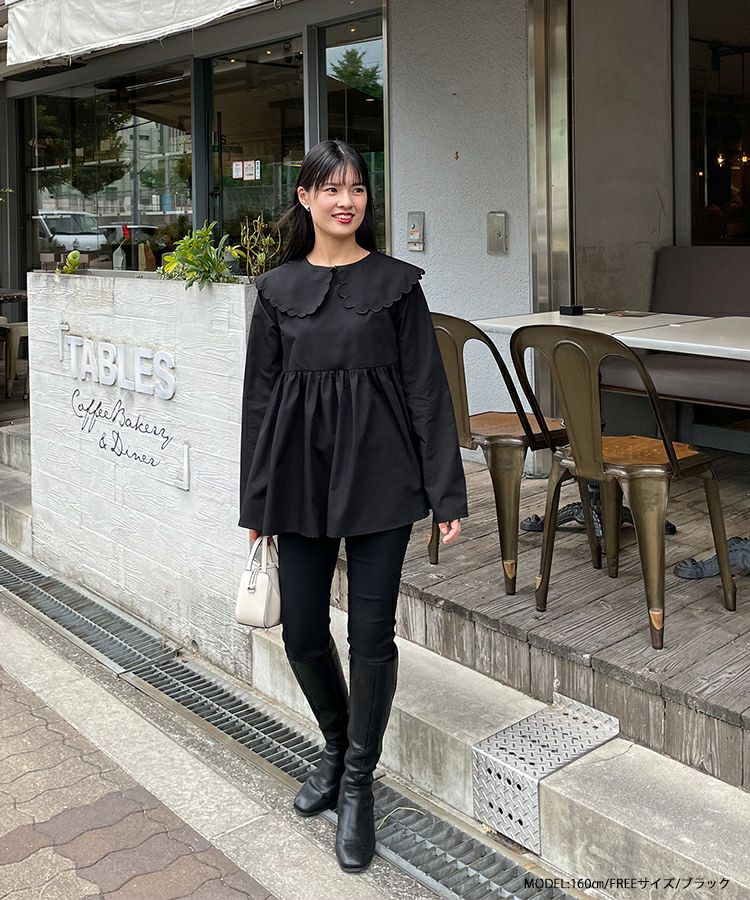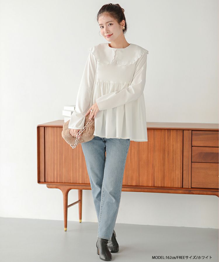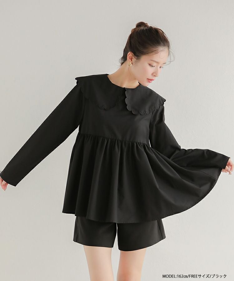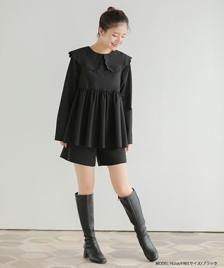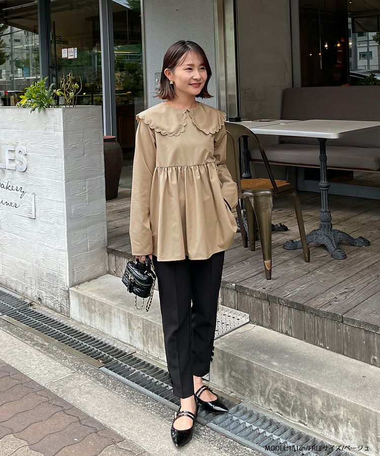 2023aw 秋新作  シャツ ブラウス スカラップカラー ペプラム 【ZOZO限定商品】スカラップカラーペプラムロングスリーブブラウス【宅配便】