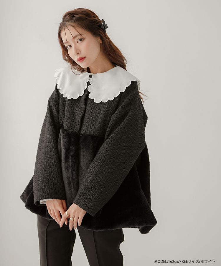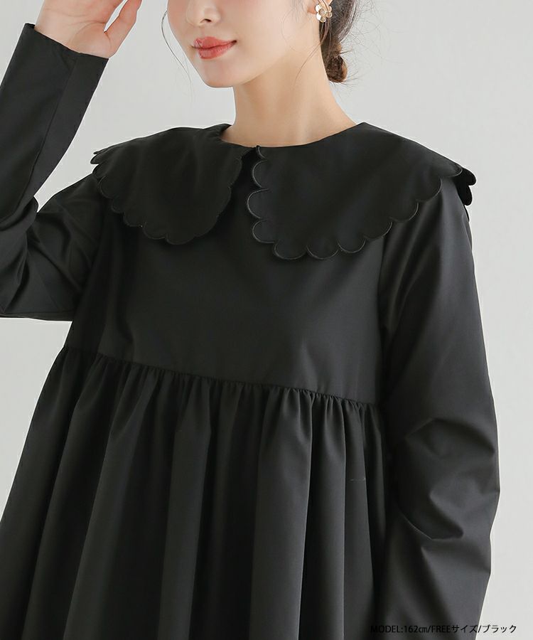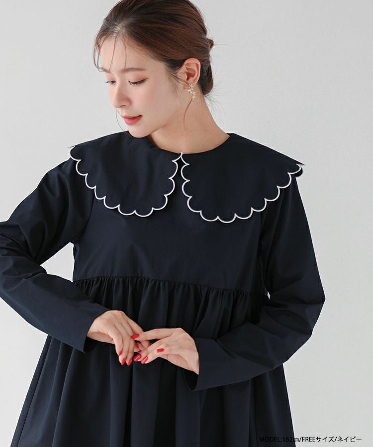 大きめのスカラップカラーがお顔を小顔に見せてくれます。