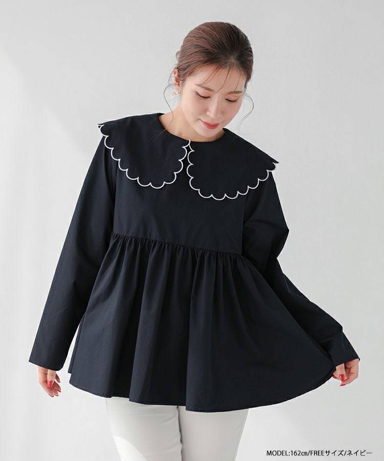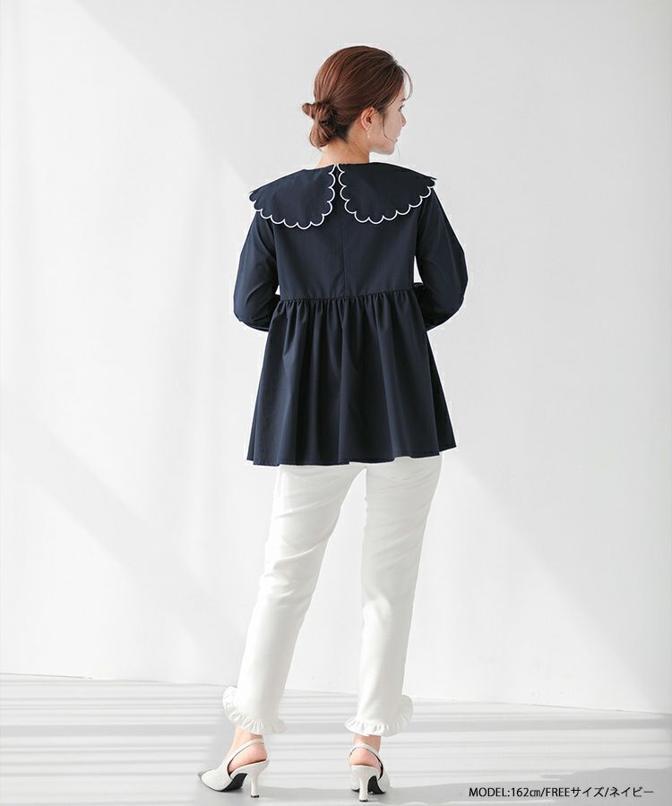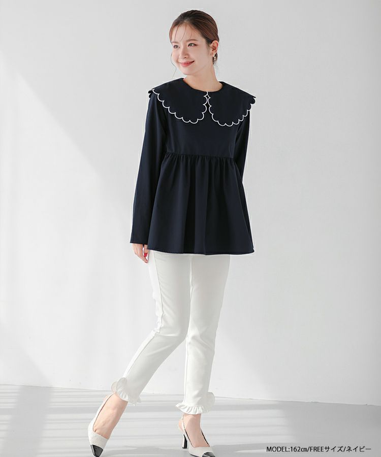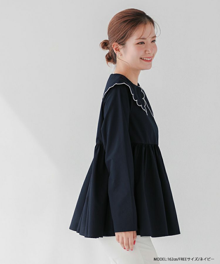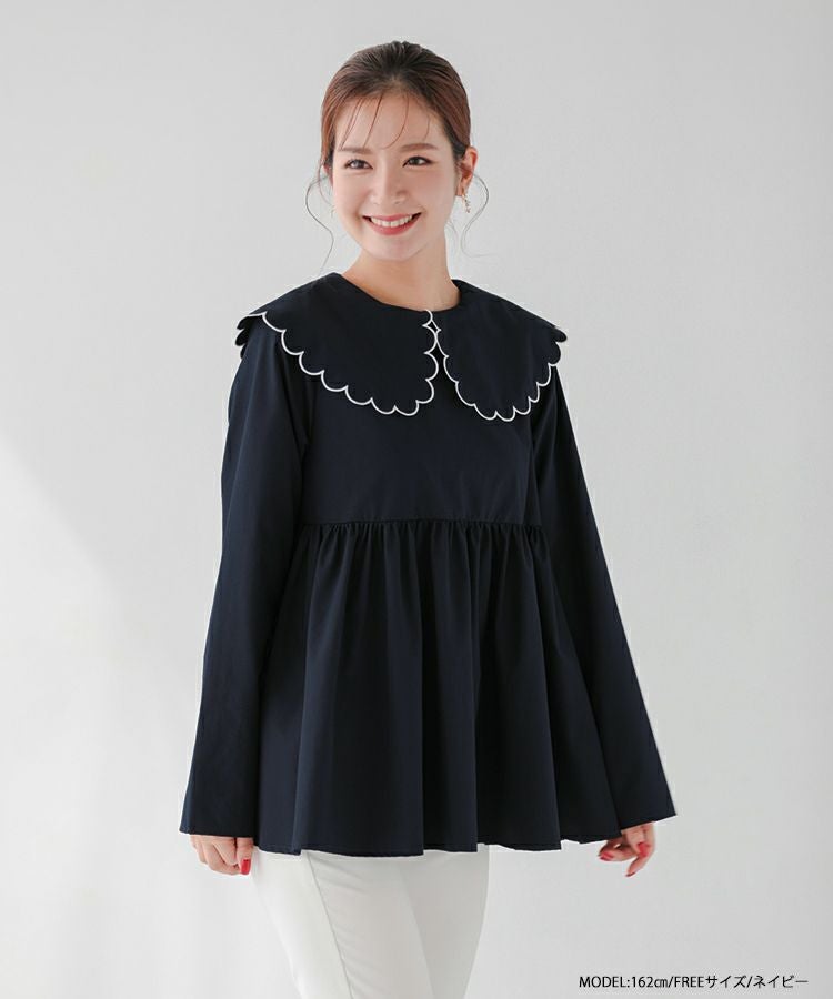 丸みのあるスカラップカラーが可愛いブラウス。